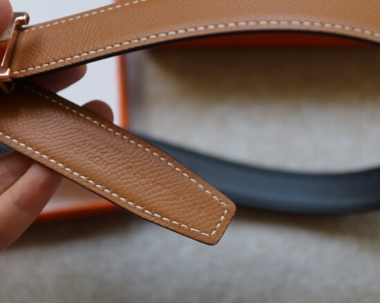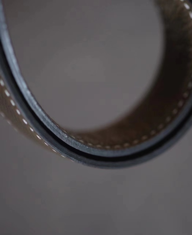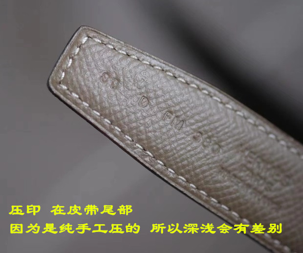 然后 这种双面款的压印 在皮带尾部 因为是纯手工压的 所以深浅会有差别