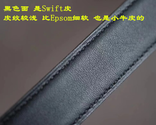 再来说皮 扣头可拆 双面用 灰色是Epsom皮 黑色是Swift皮