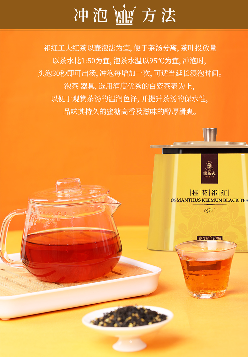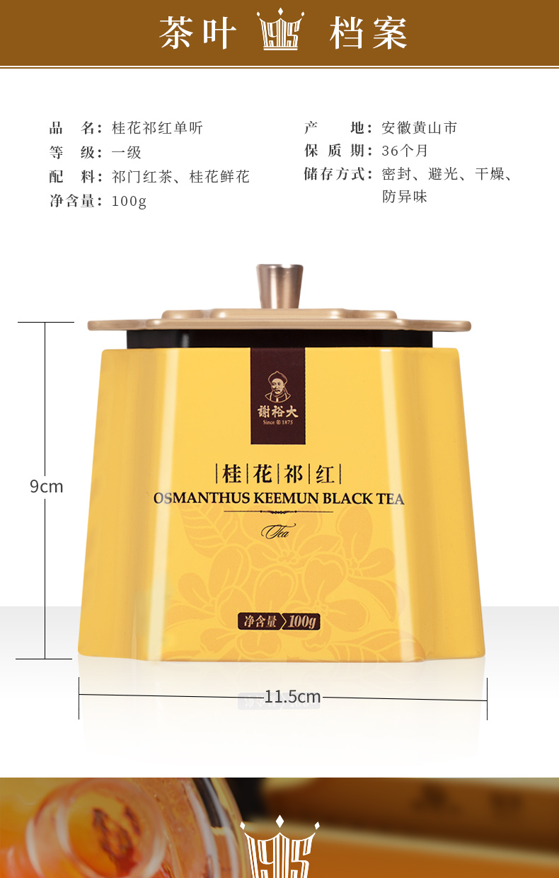 谢裕大 祁门红茶 桂花祁红 单听100g 自饮推荐