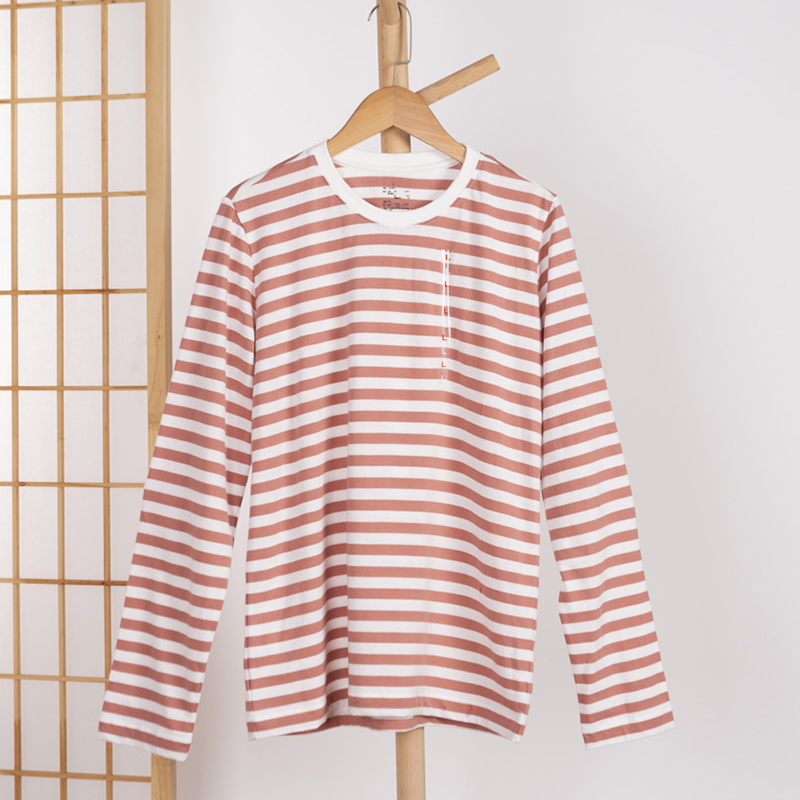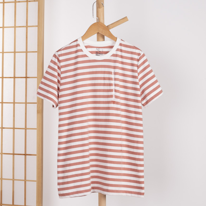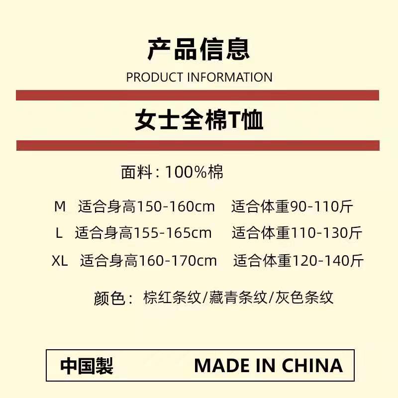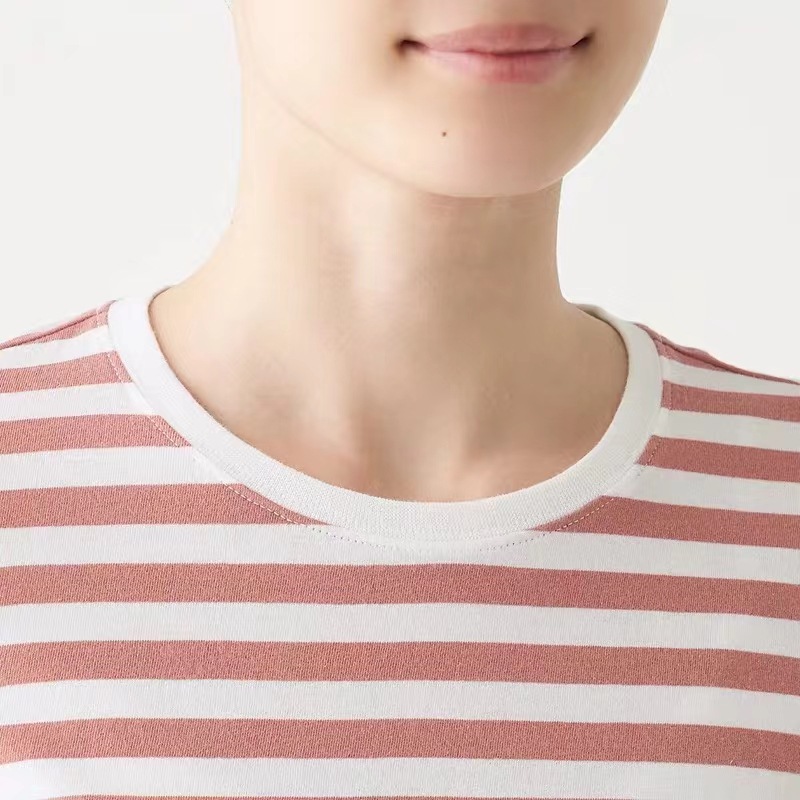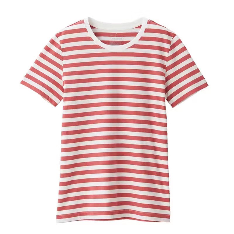 日式无印T恤衫良品全棉条纹T恤女款 A-4581