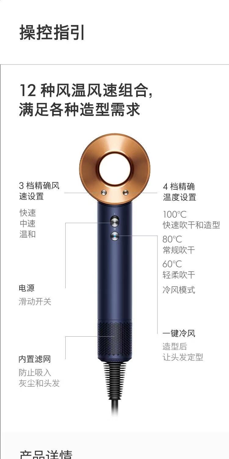 Dyson戴森HD08藏青铜色吹风机家用负离子速干护发电吹风