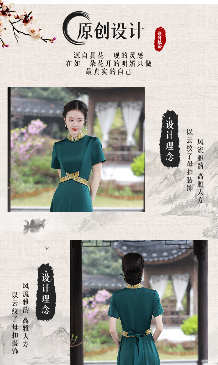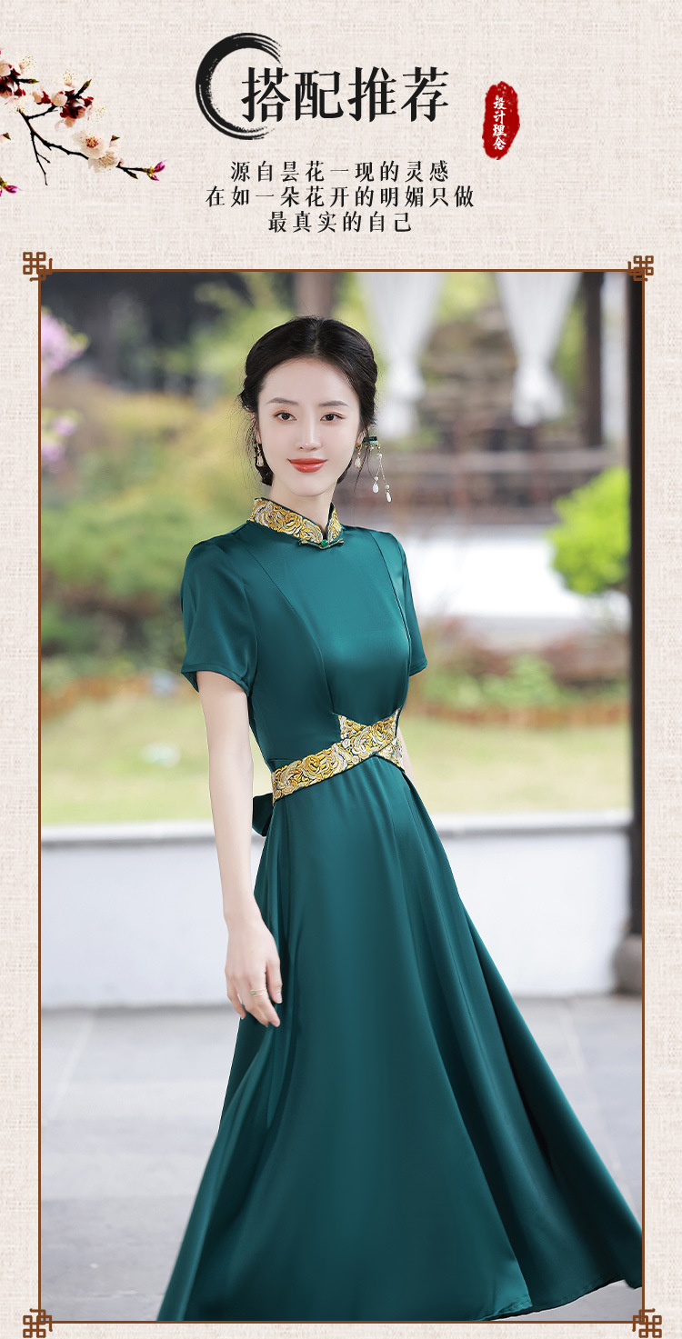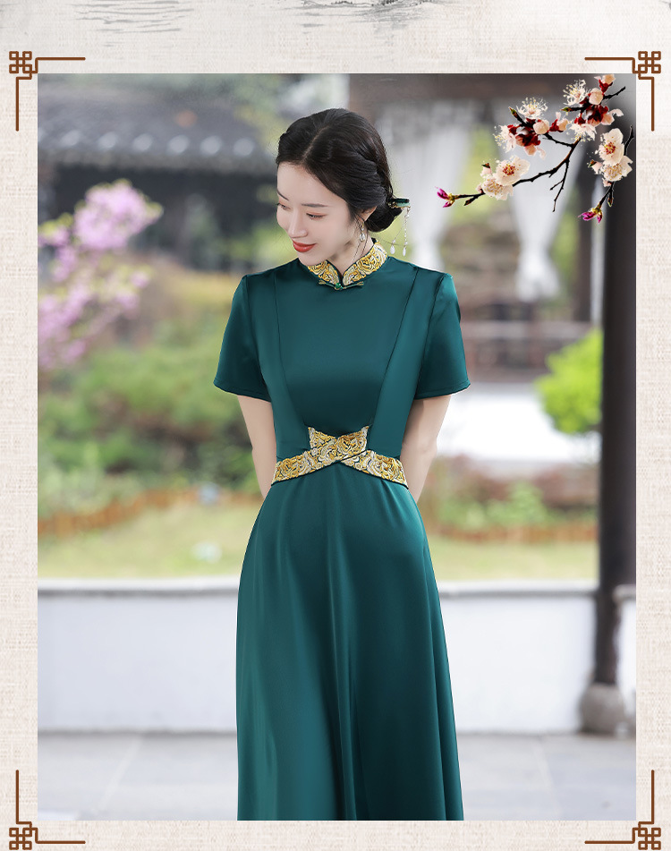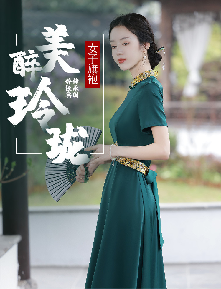 优雅端庄,国潮绿色长裙修身显瘦旗袍JLM-2232