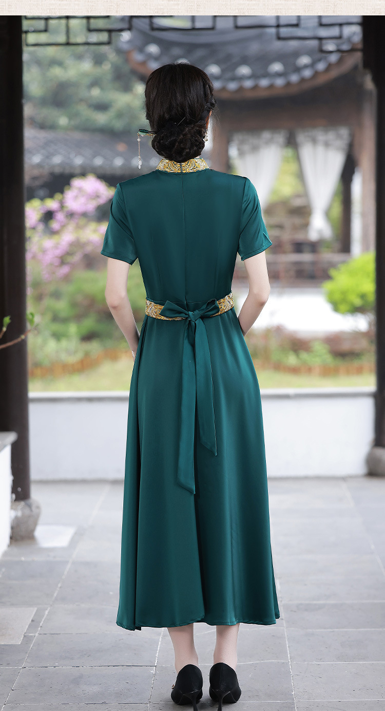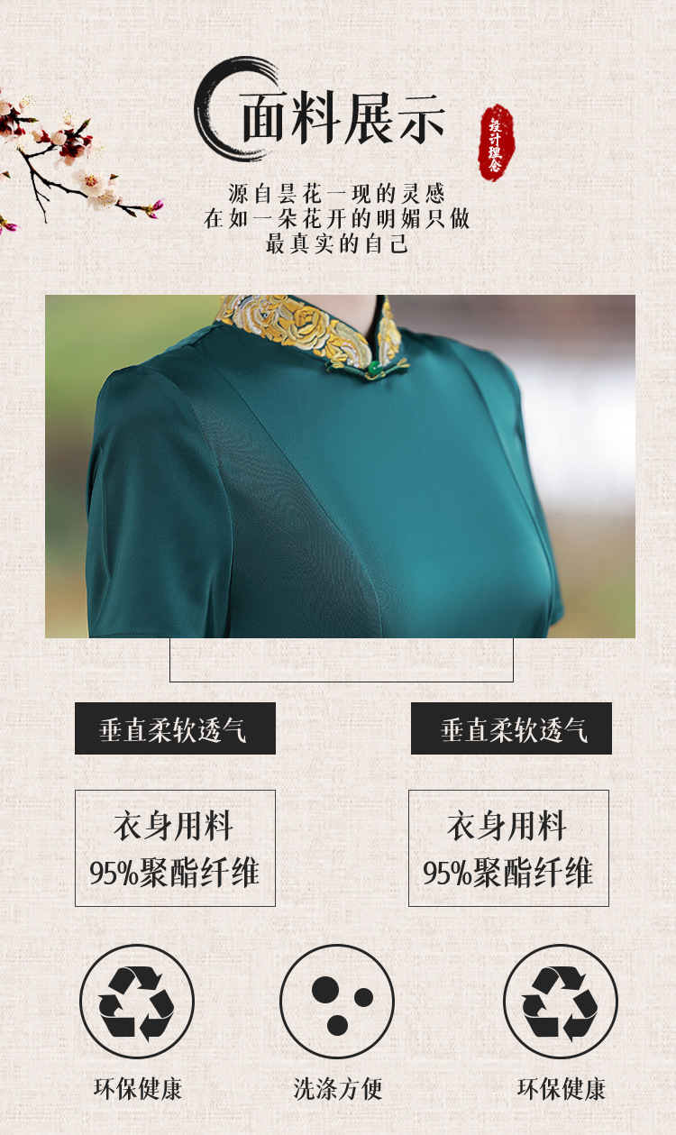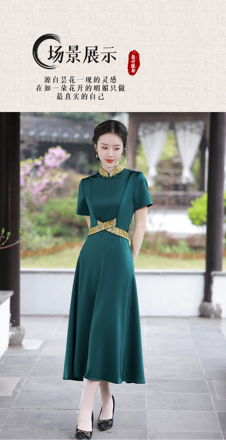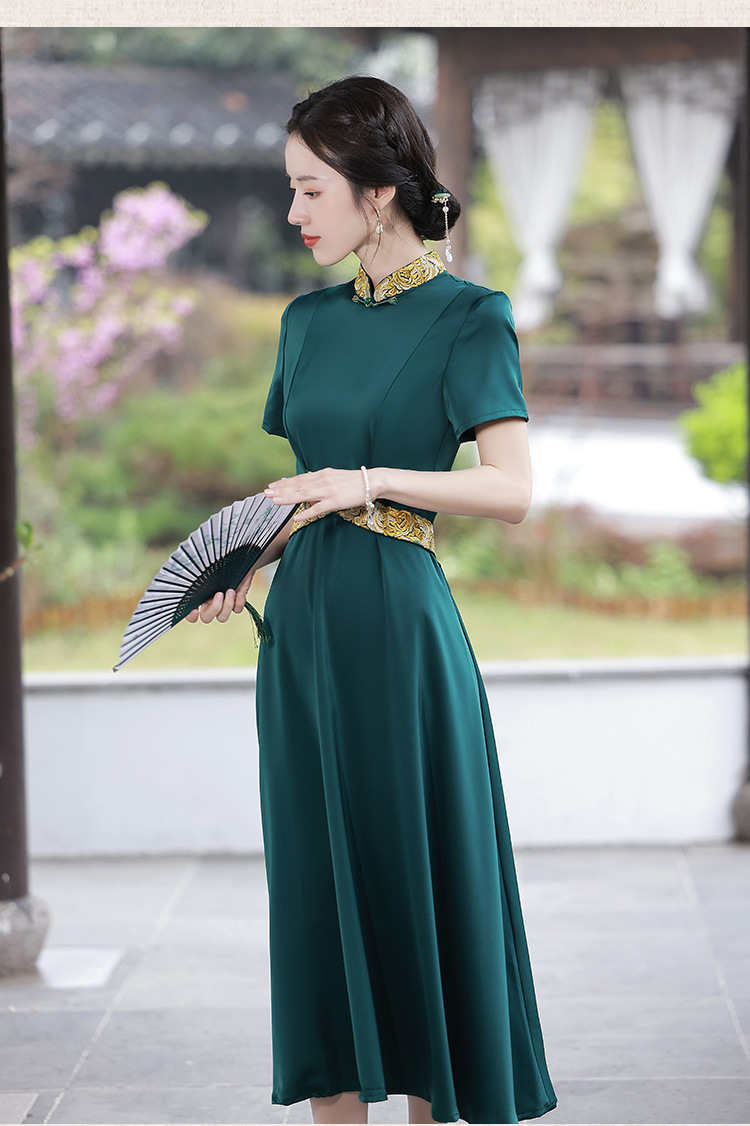 优雅端庄,国潮绿色长裙修身显瘦旗袍JLM-2232