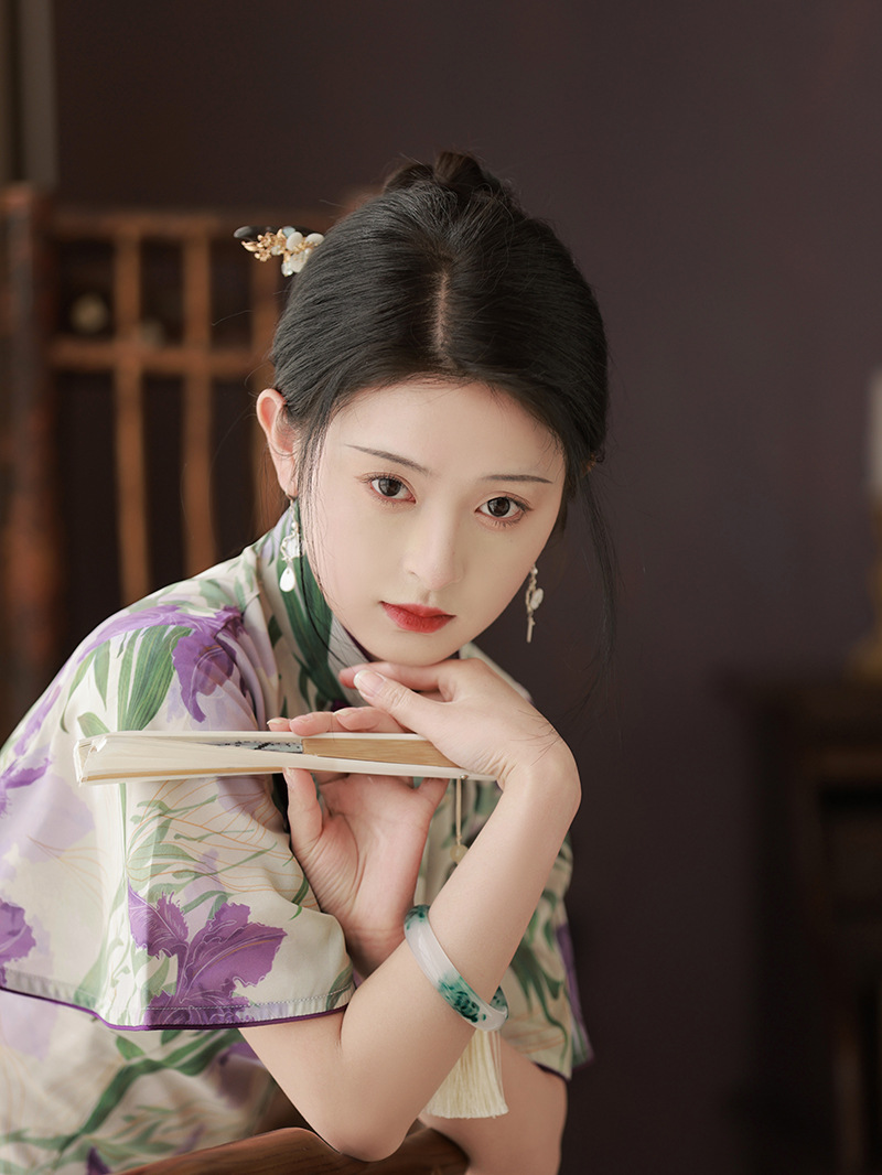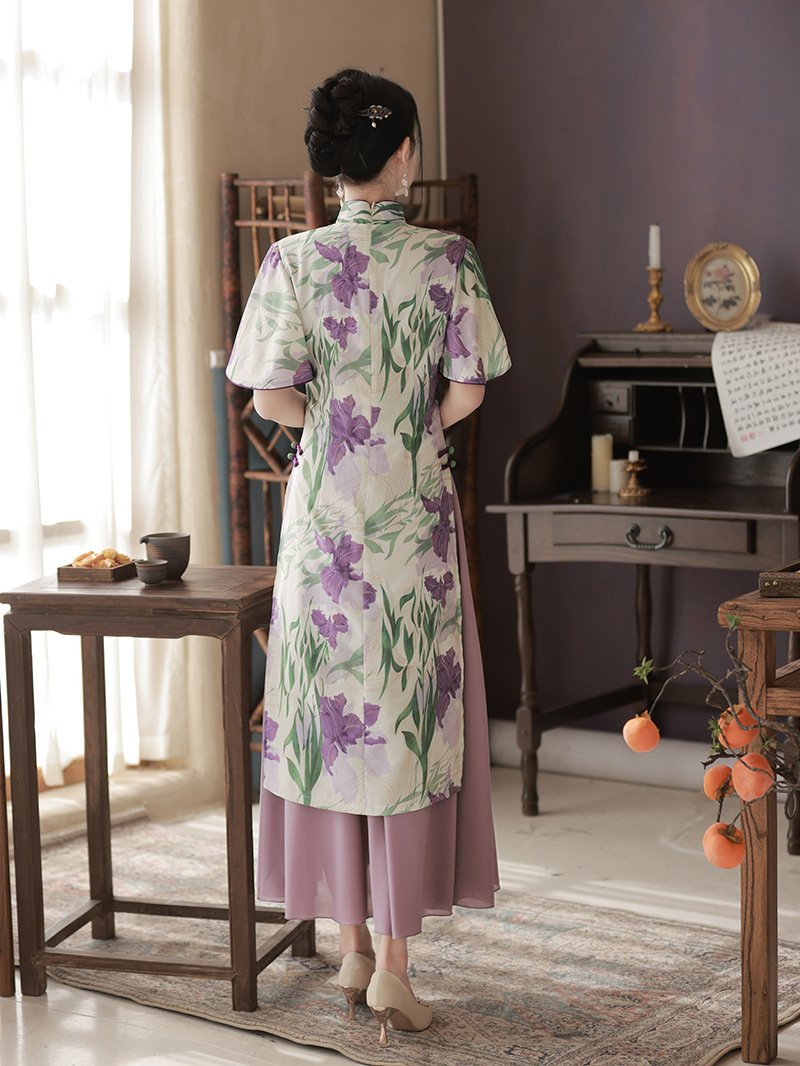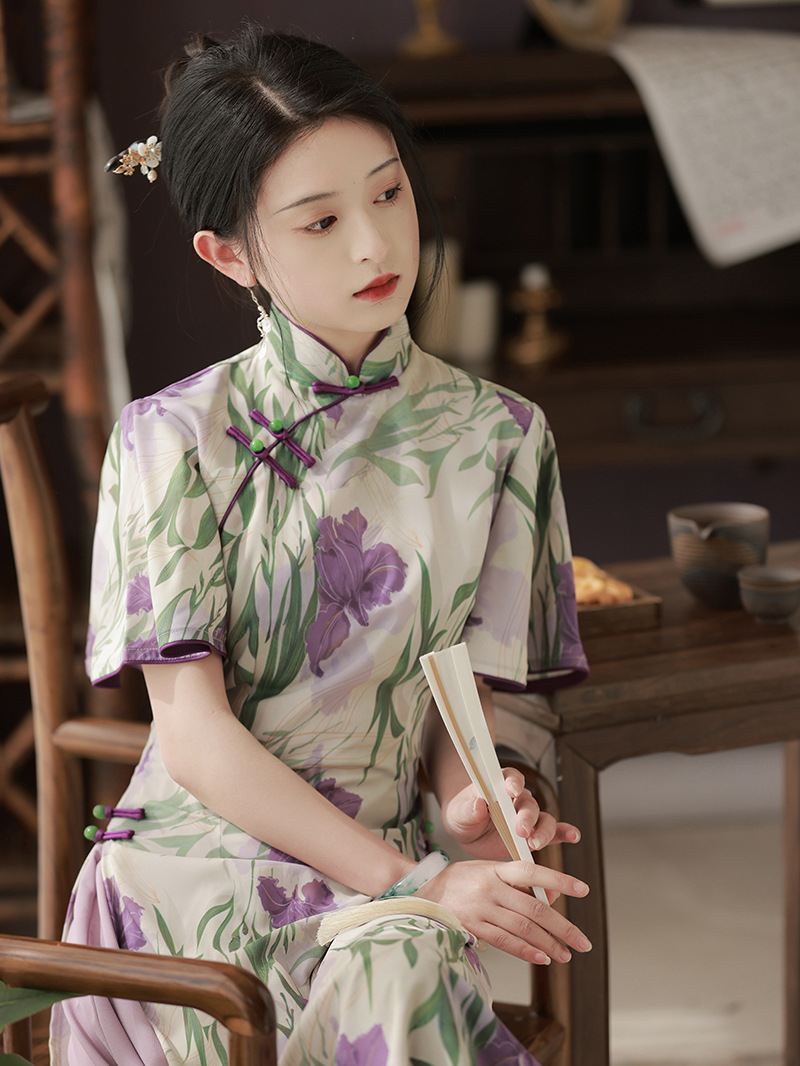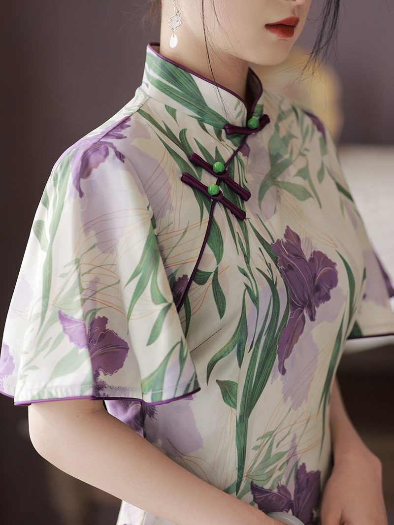 改良奥戴复古国风气质修身中紫色旗袍XL-23067