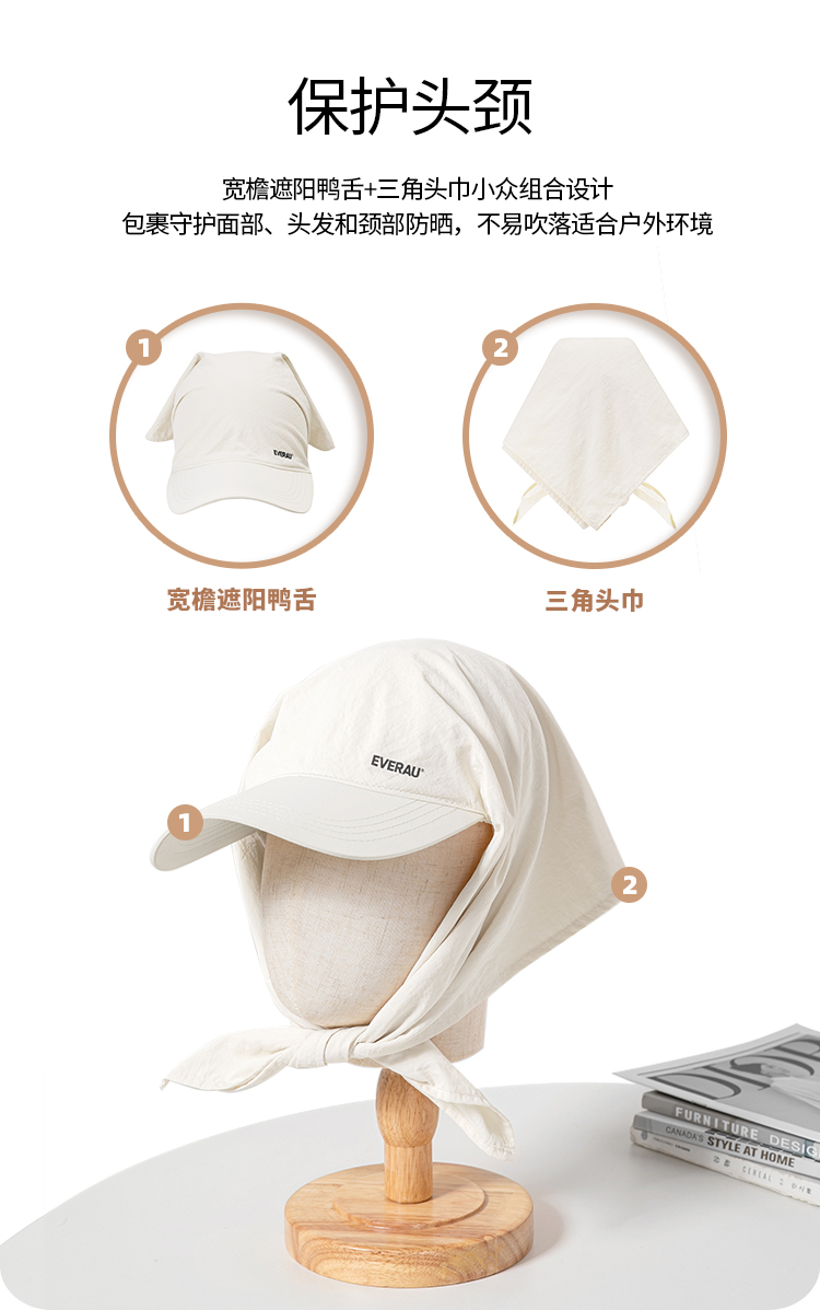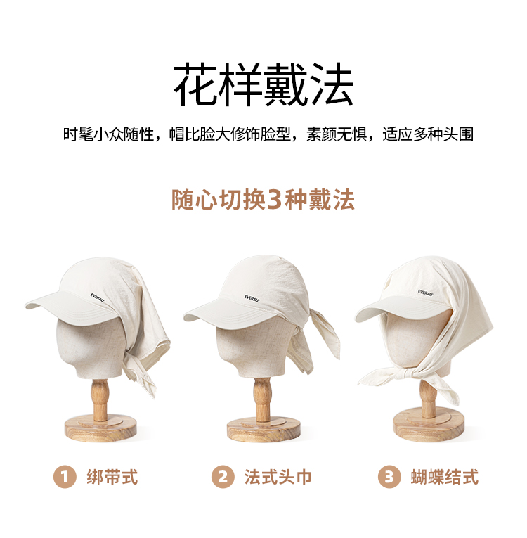 EVERAU轻薄透气Jennie同款吸汗速干花样戴法时髦百变流行防晒头巾防晒帽EAZ015