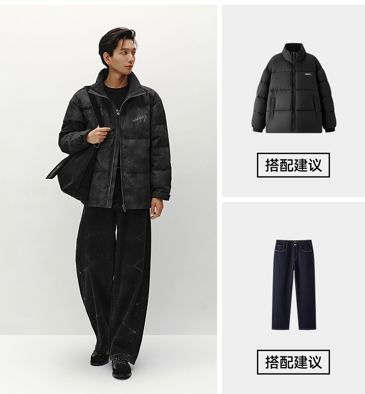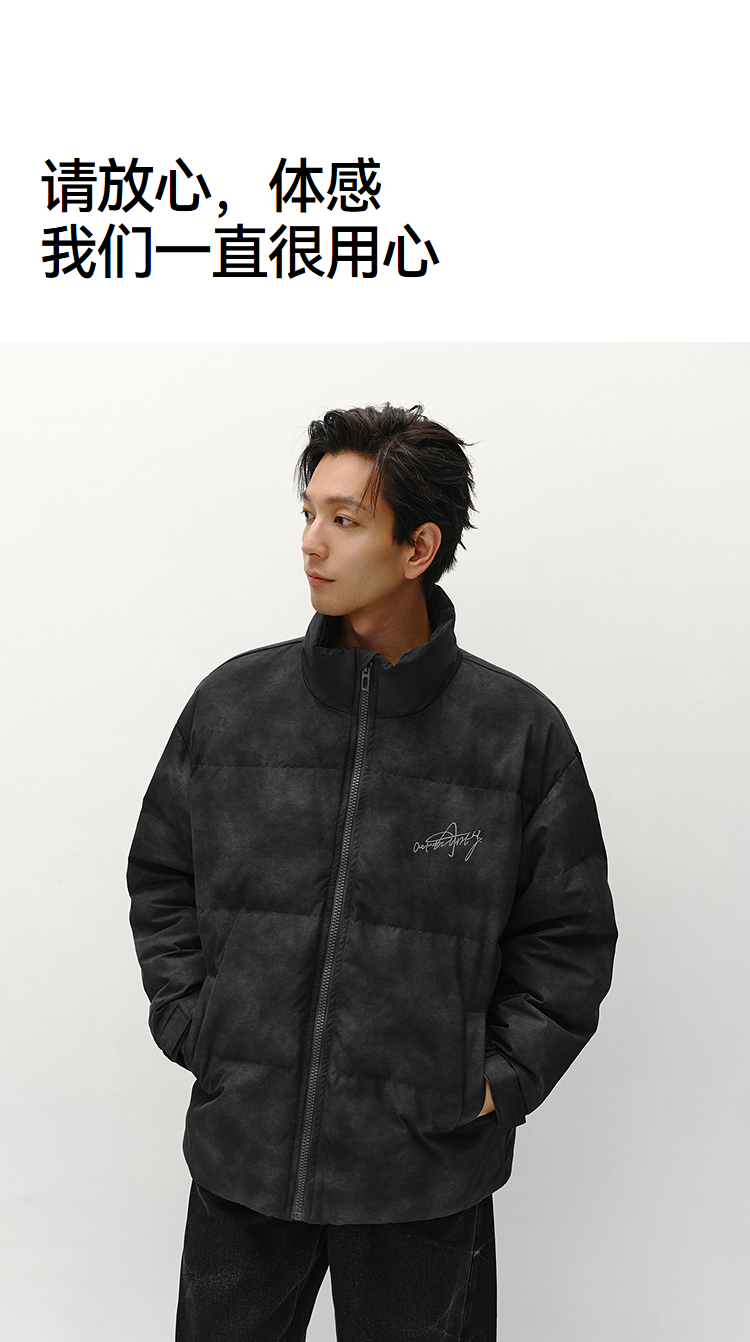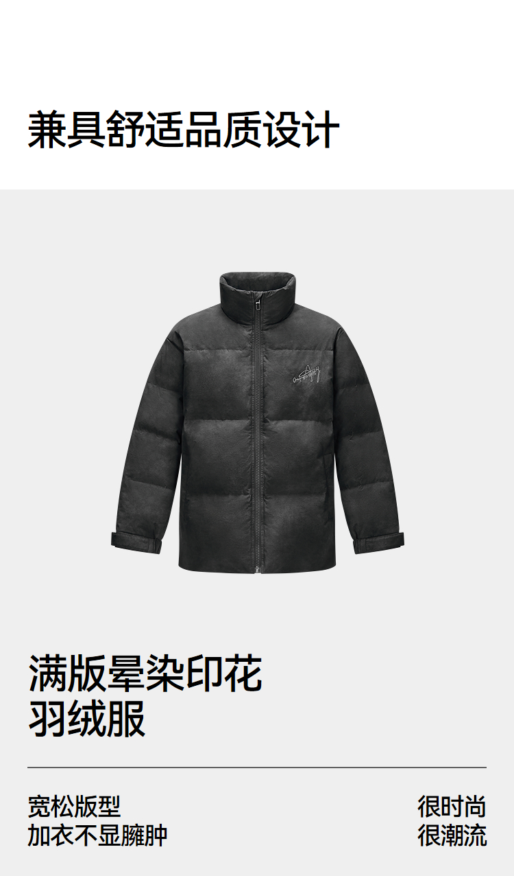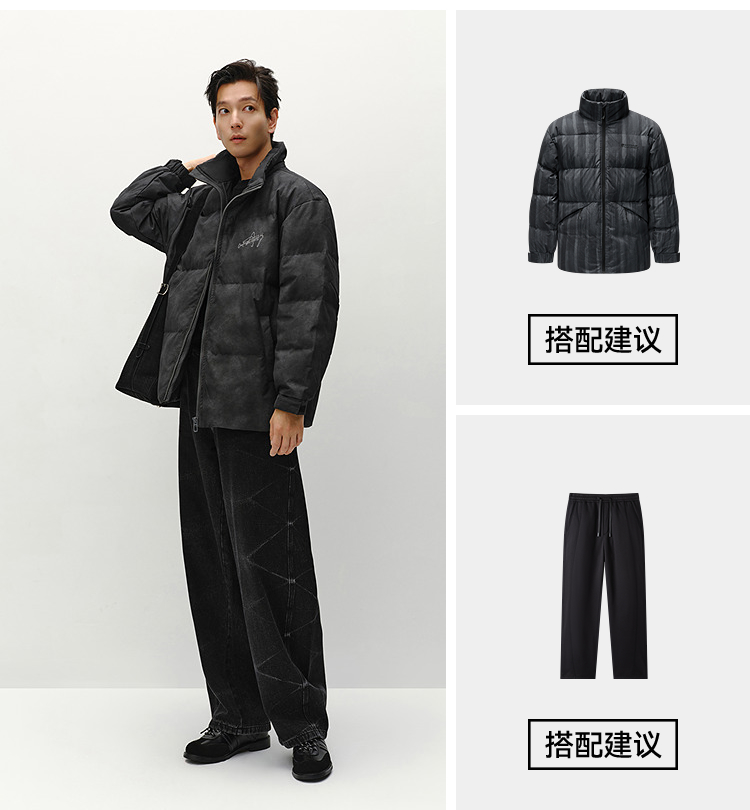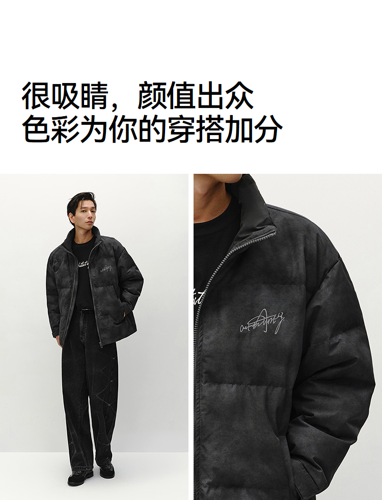 森马羽绒服男冬装80绒子宽松立领外套时尚绣花晕染满版印花上衣潮