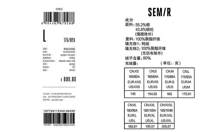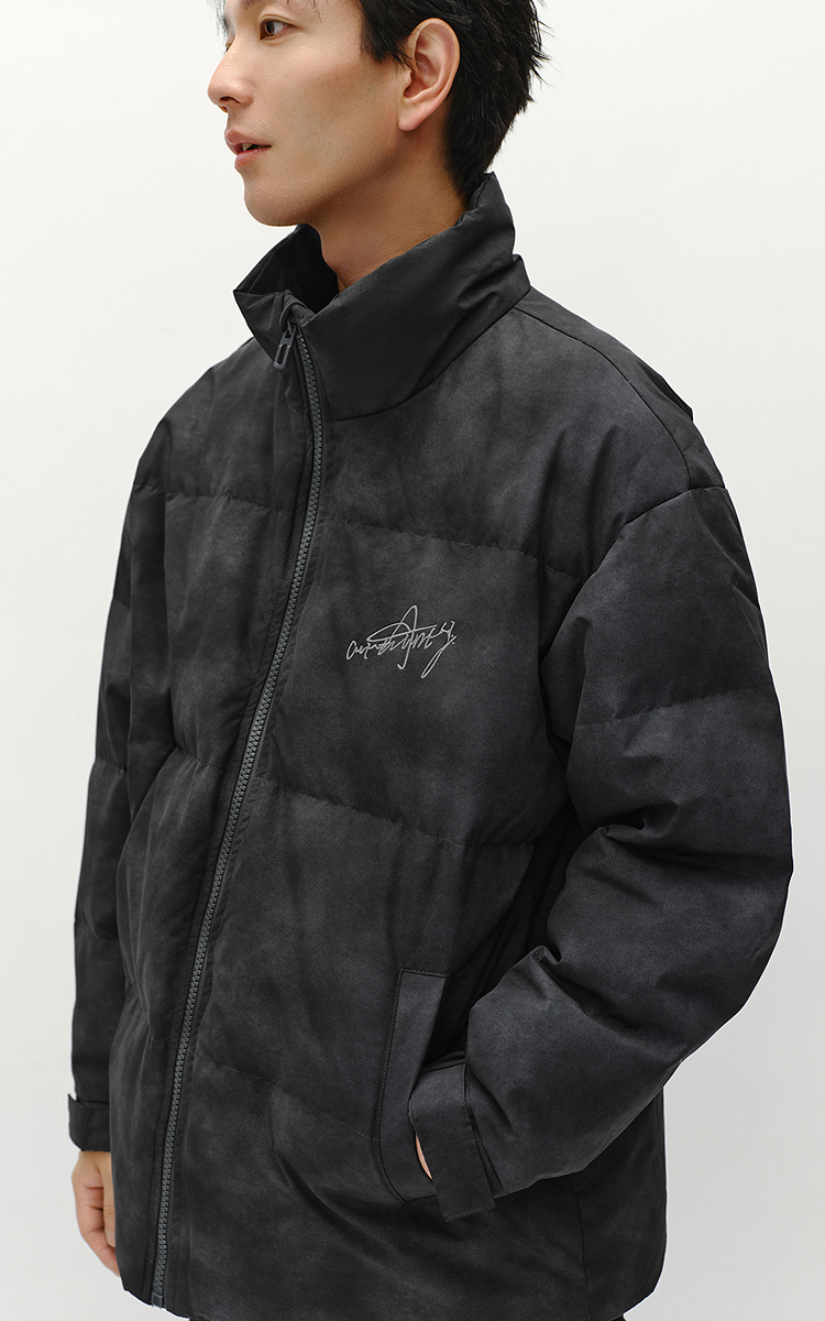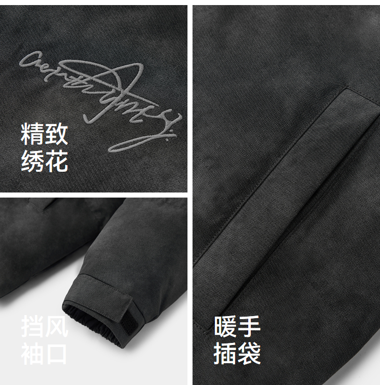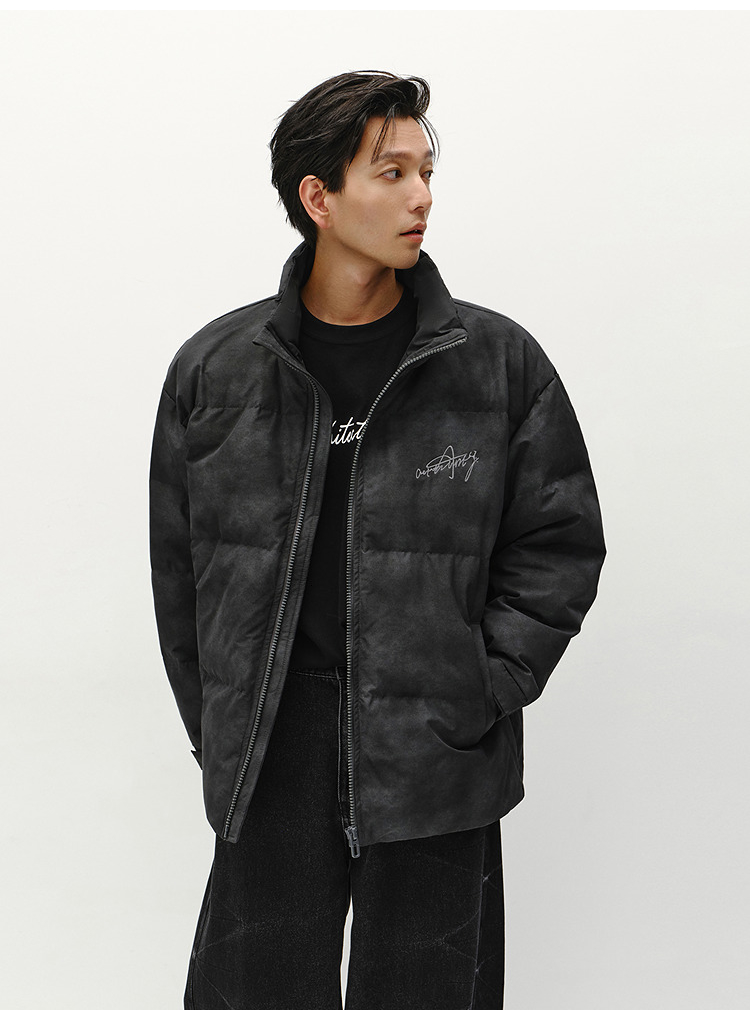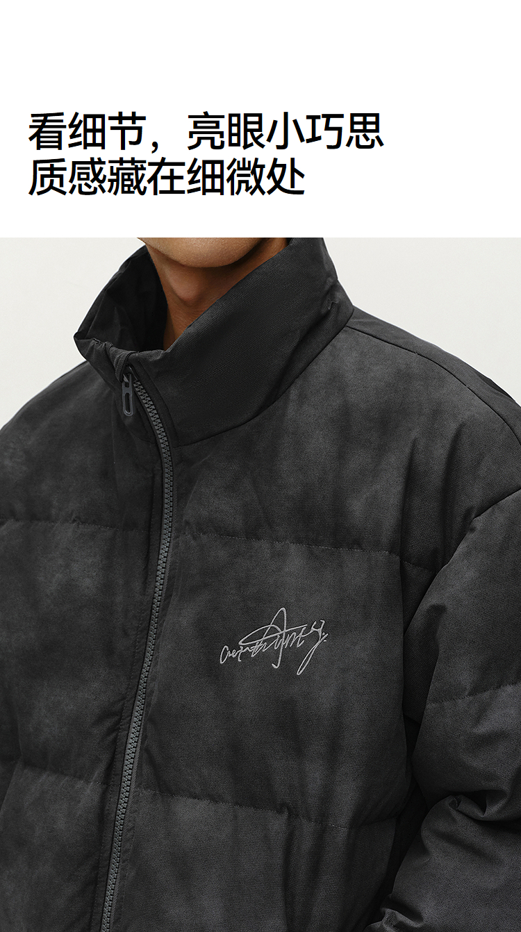 森马羽绒服男冬装80绒子宽松立领外套时尚绣花晕染满版印花上衣潮