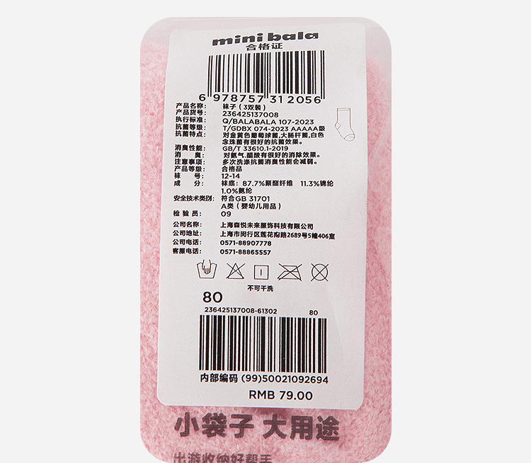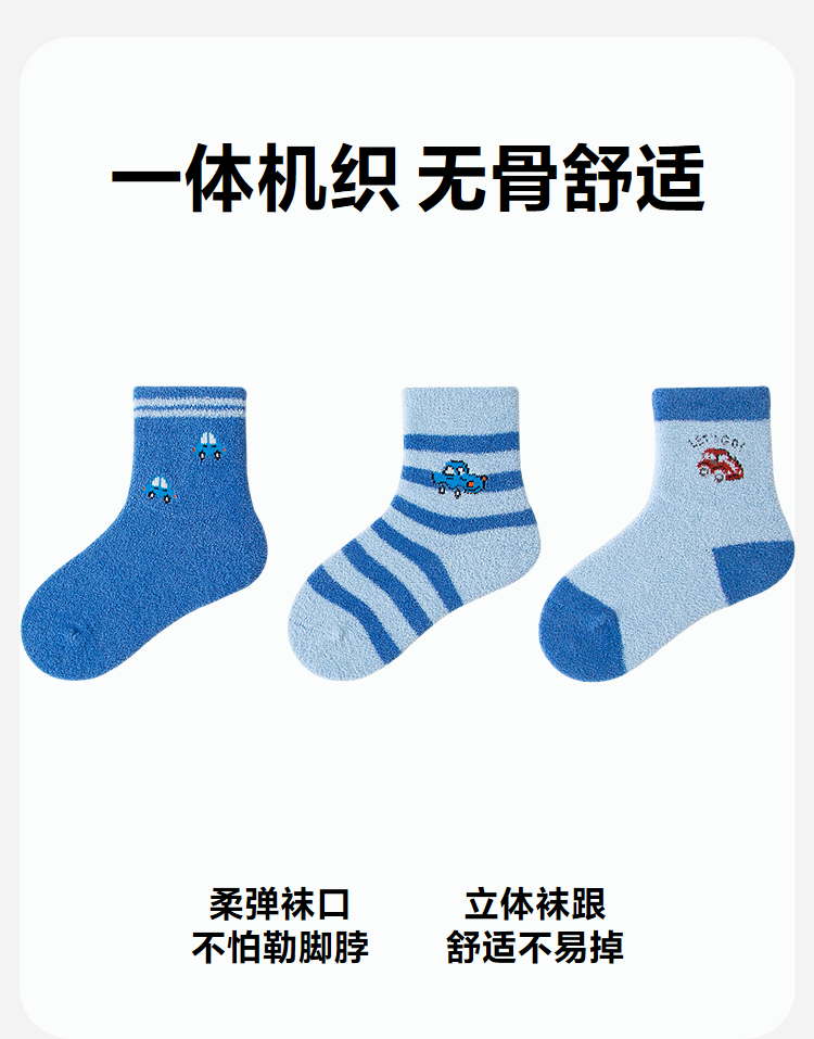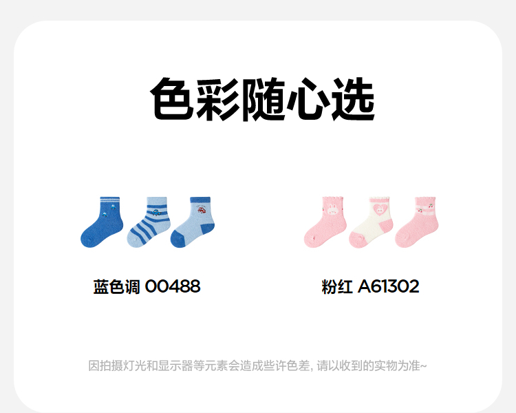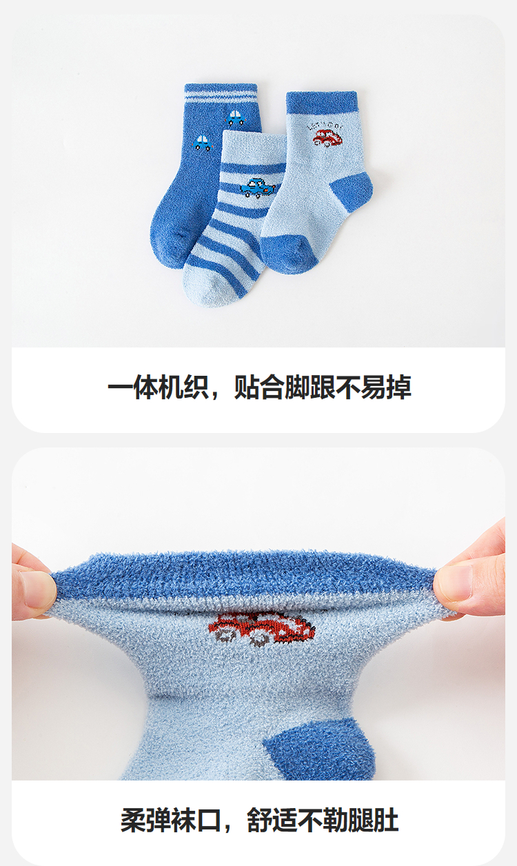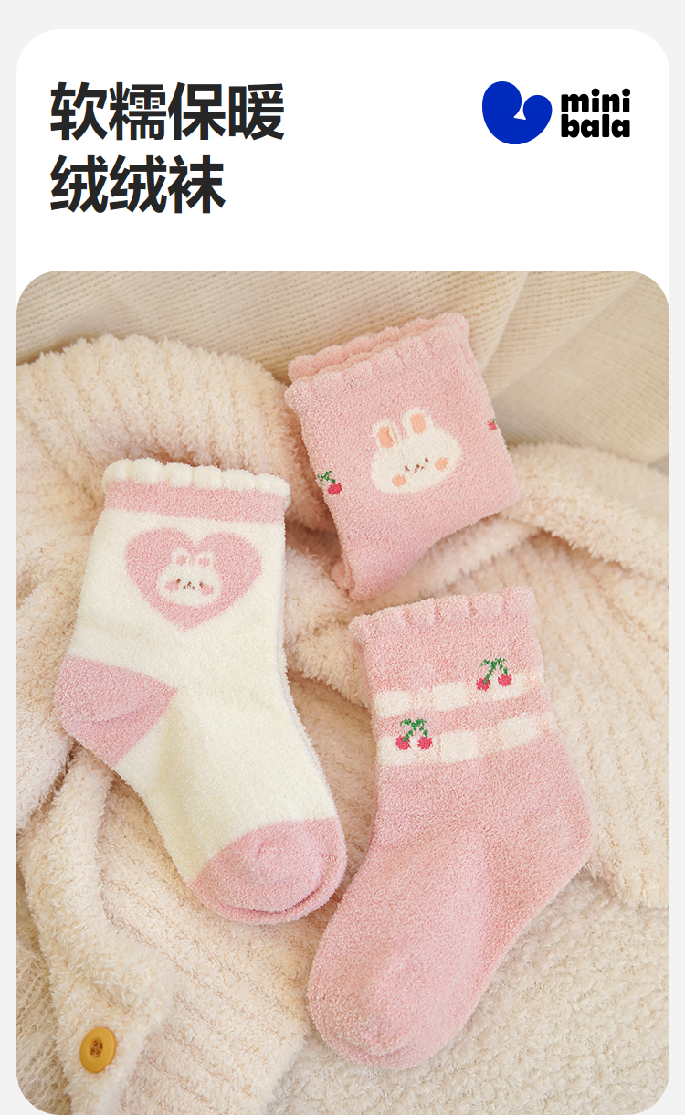 【3双装】迷你巴拉婴儿袜子男女宝宝棉弹透气绒绒保暖中筒袜子秋