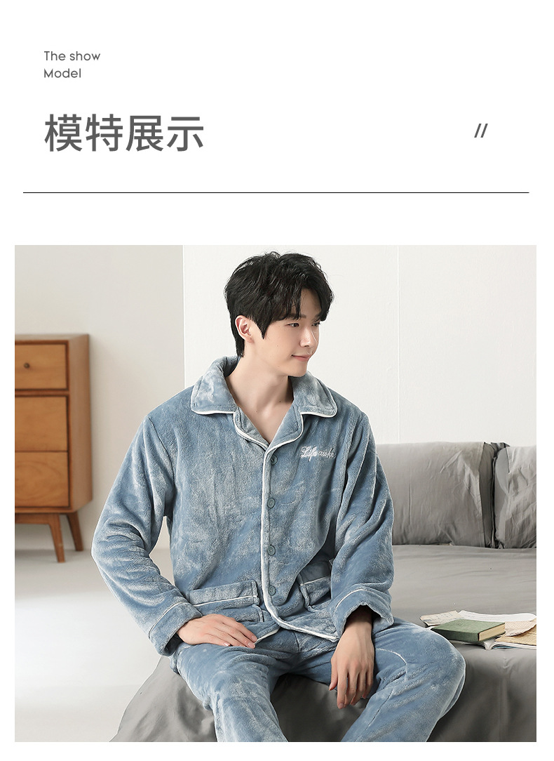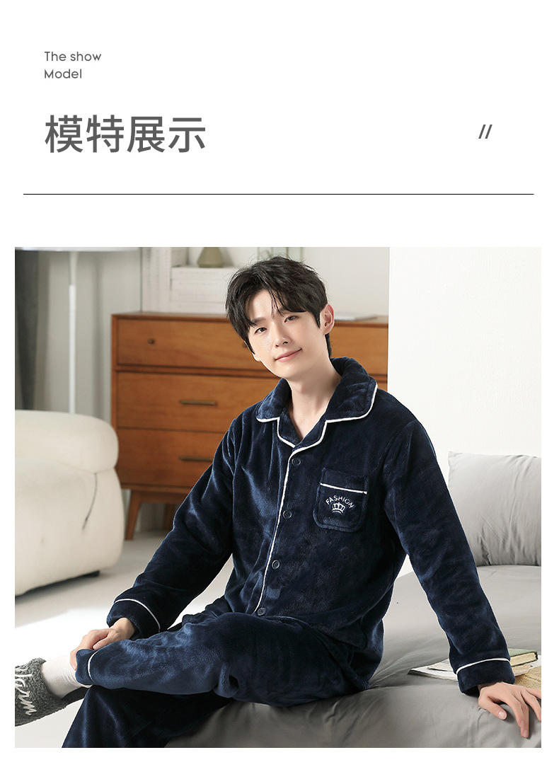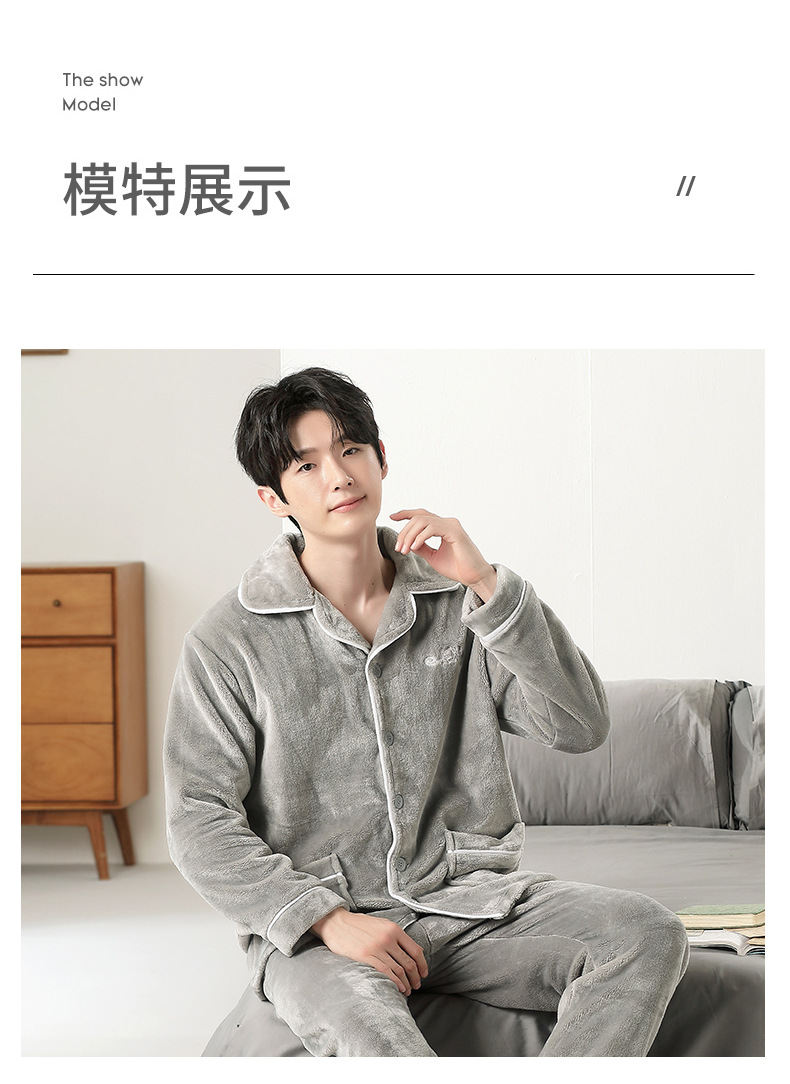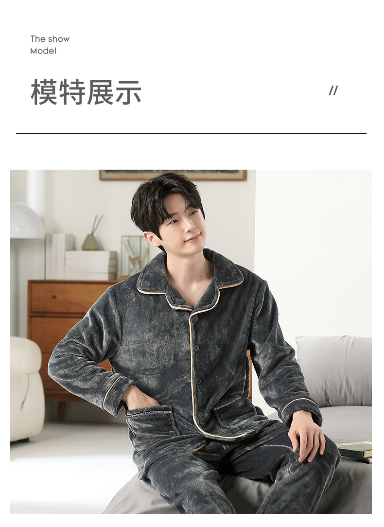 【暖绒绒】280g加厚男士秋冬立领珊瑚绒家居服