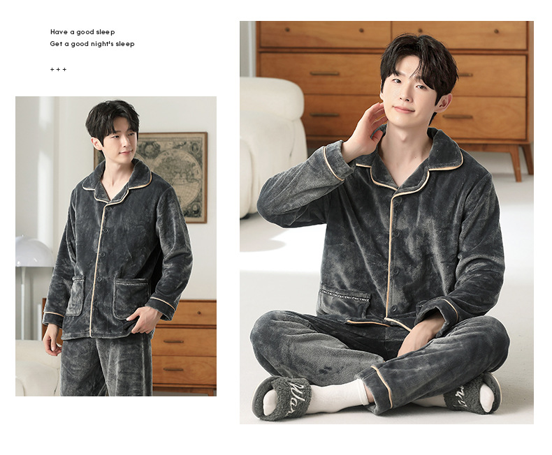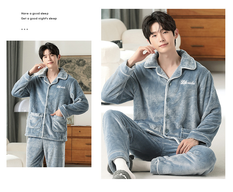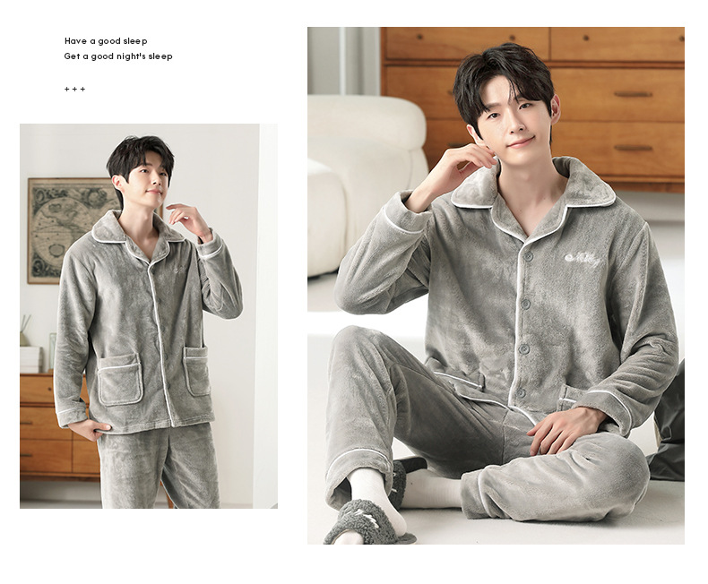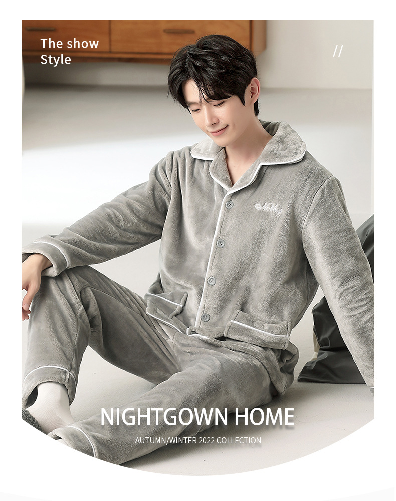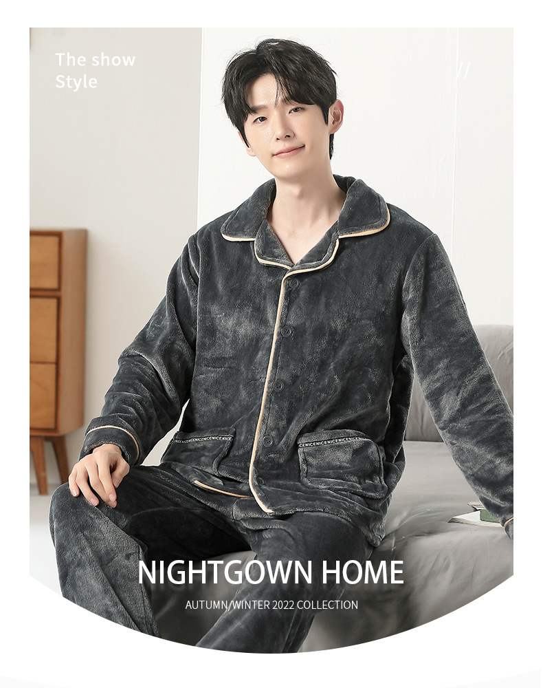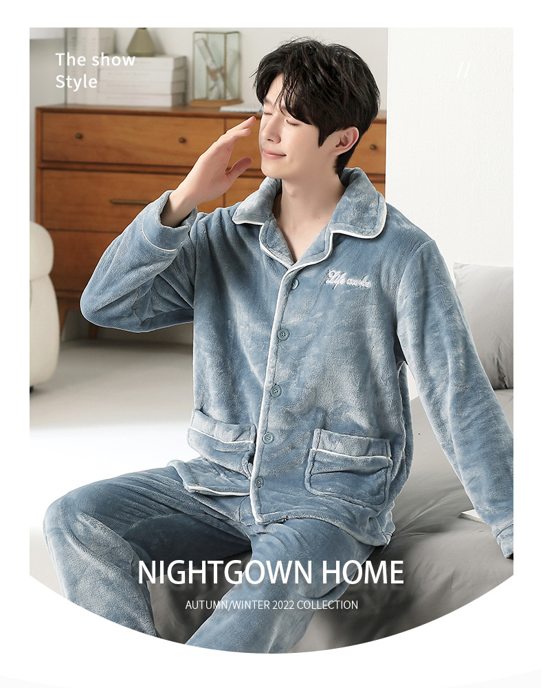 【暖绒绒】280g加厚男士秋冬立领珊瑚绒家居服