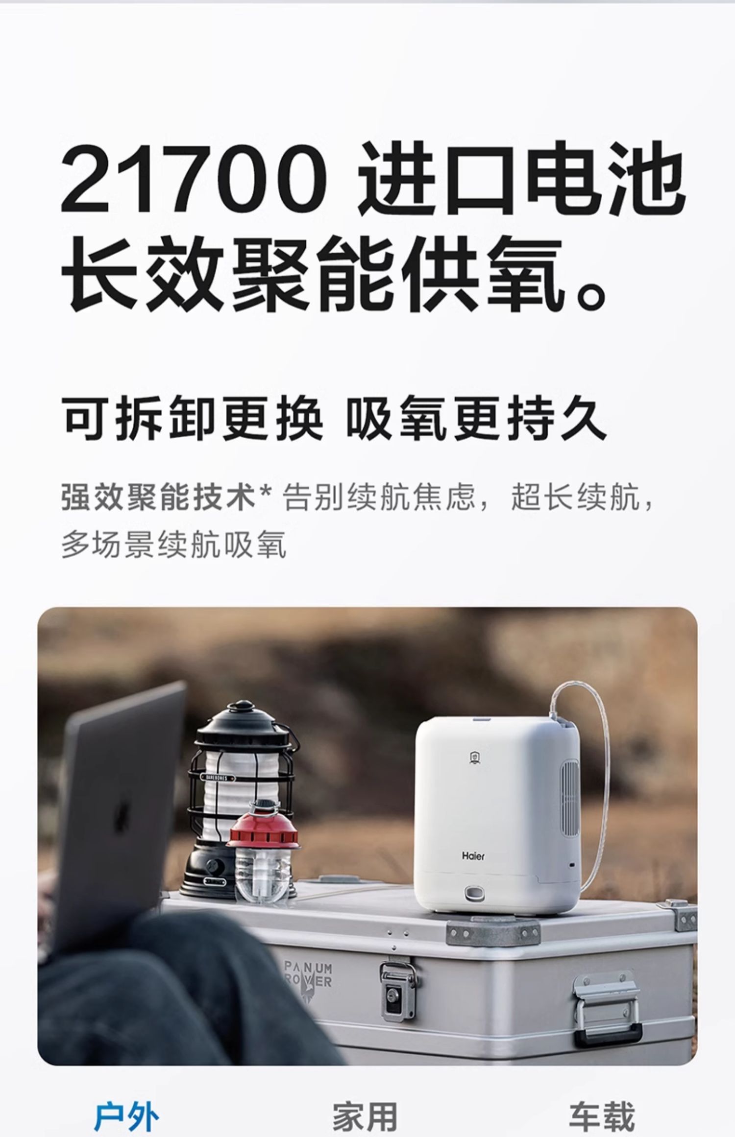 海尔5L便携式制氧机小型家用老人孕妇吸氧机户外随身高原车载氧气机