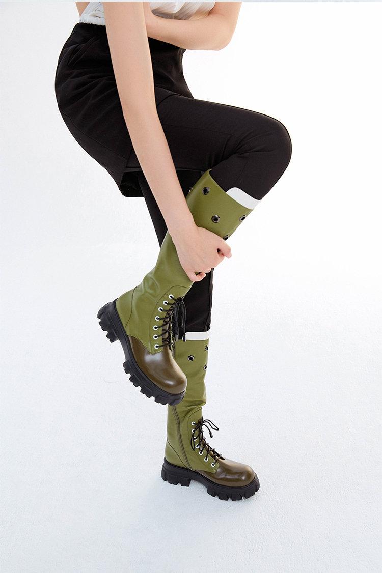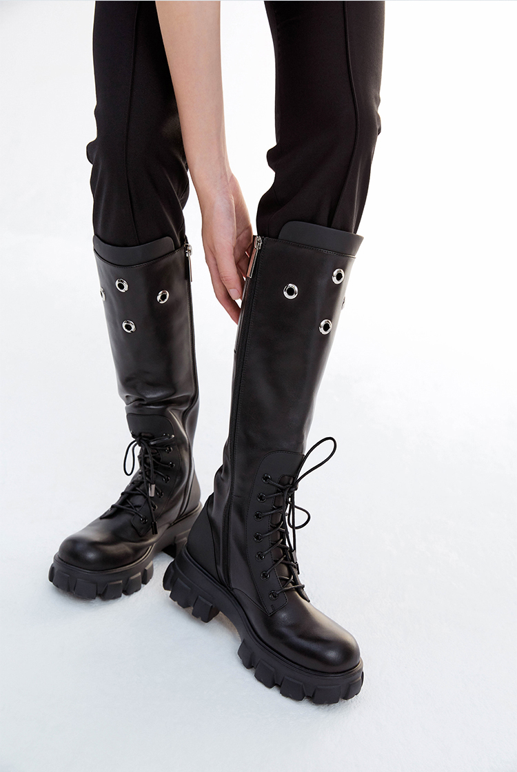 【下架】lost in echo圆提手气眼膝下厚底超轻马丁靴长靴