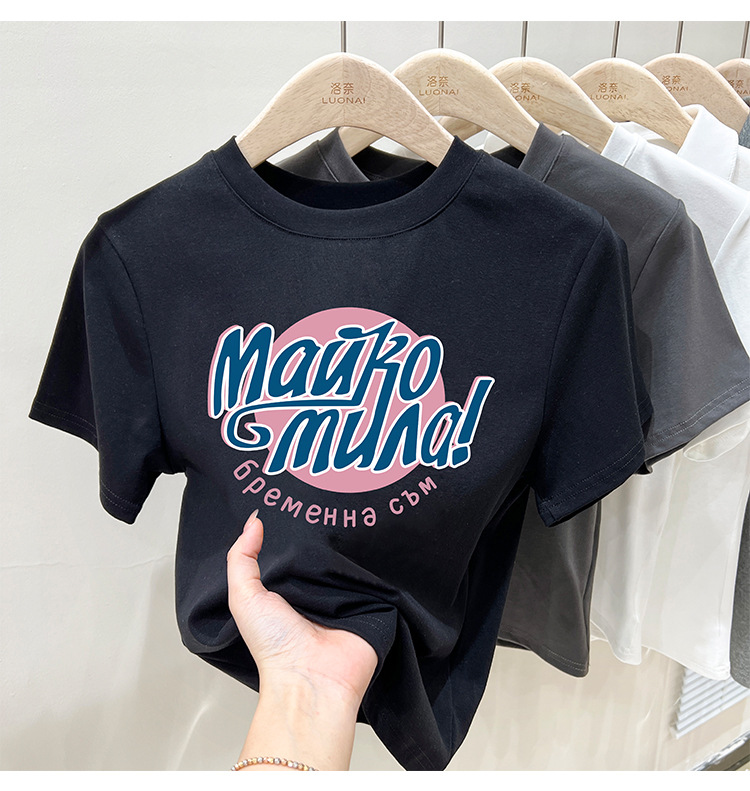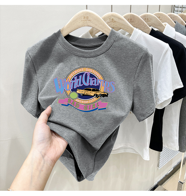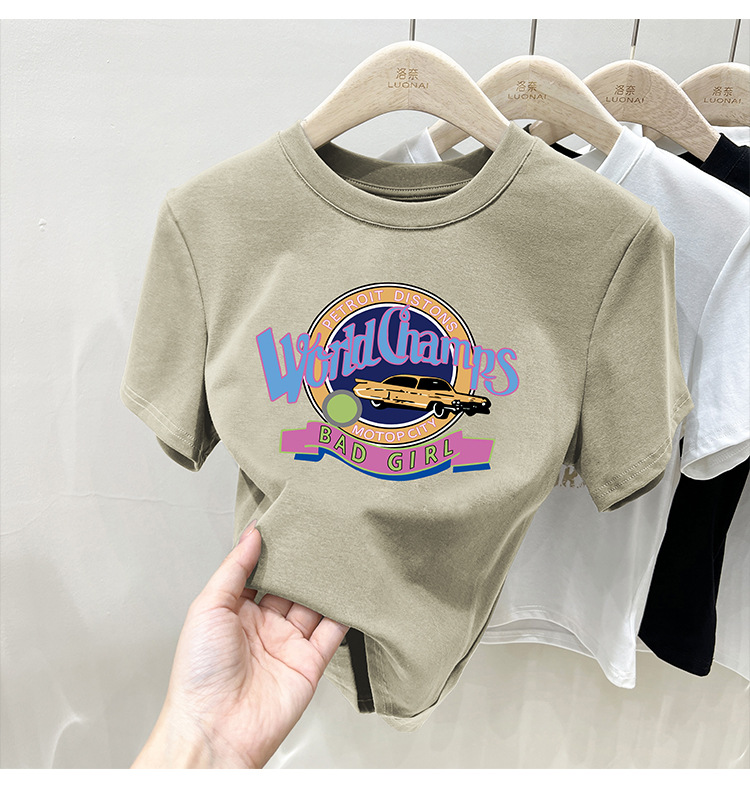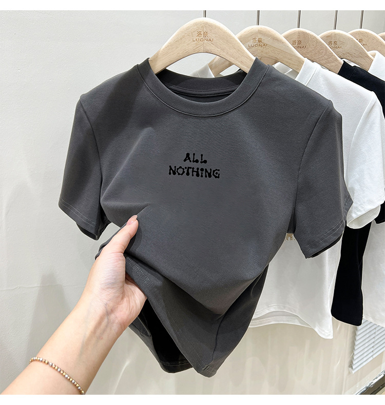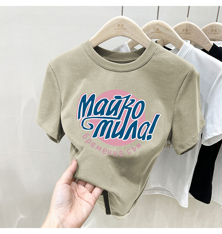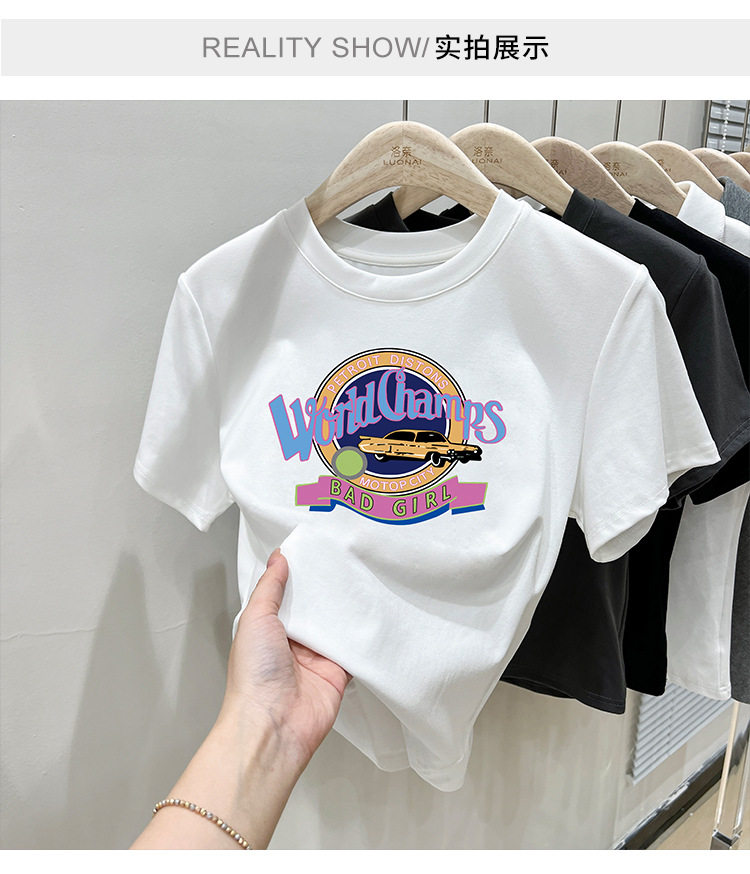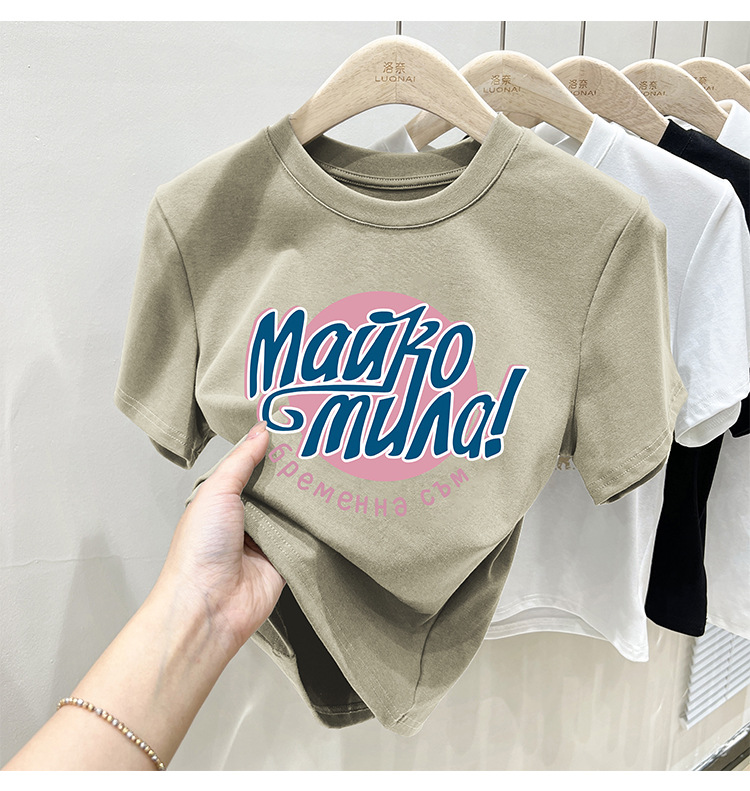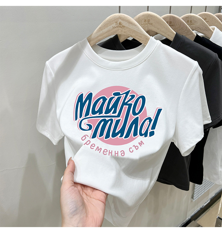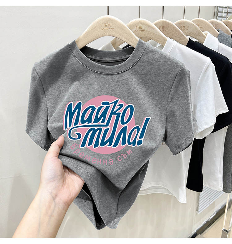 【79元2件】夏季修身圆领棉质T恤短袖 短款印花设计感短袖上衣