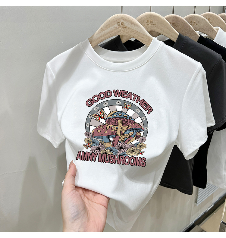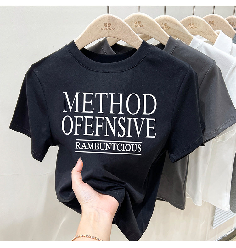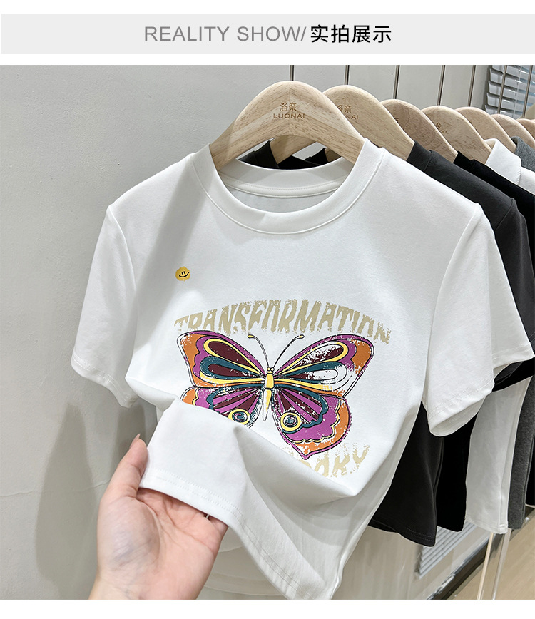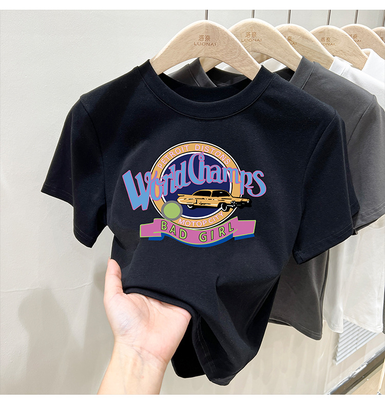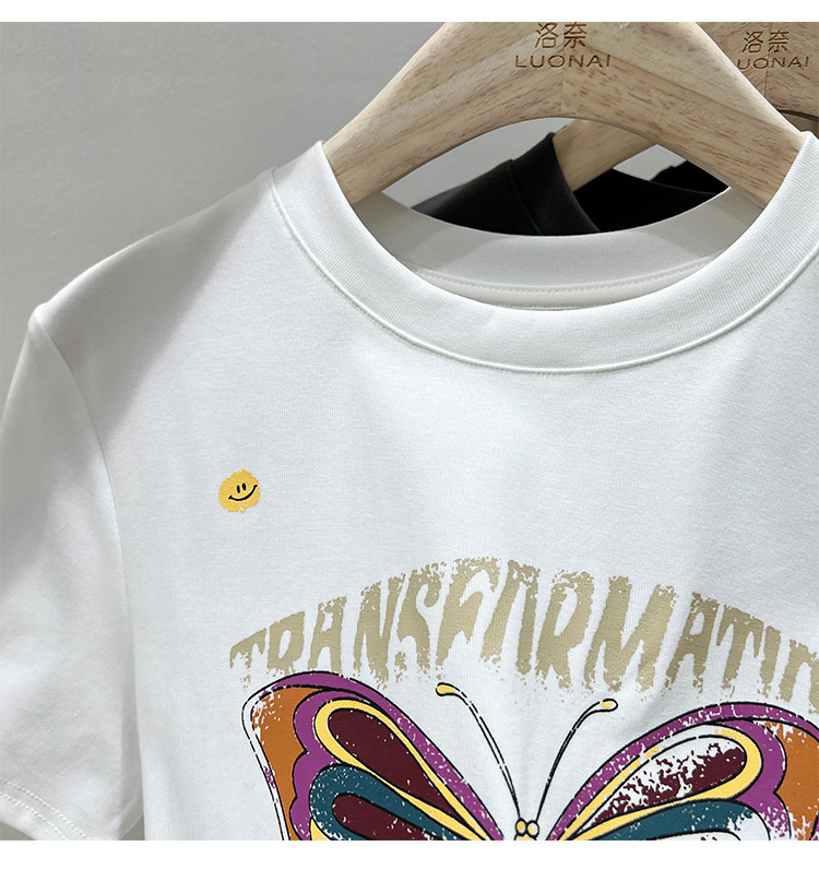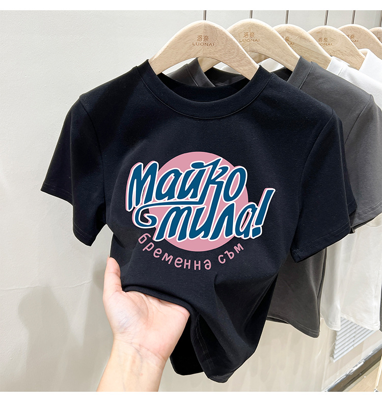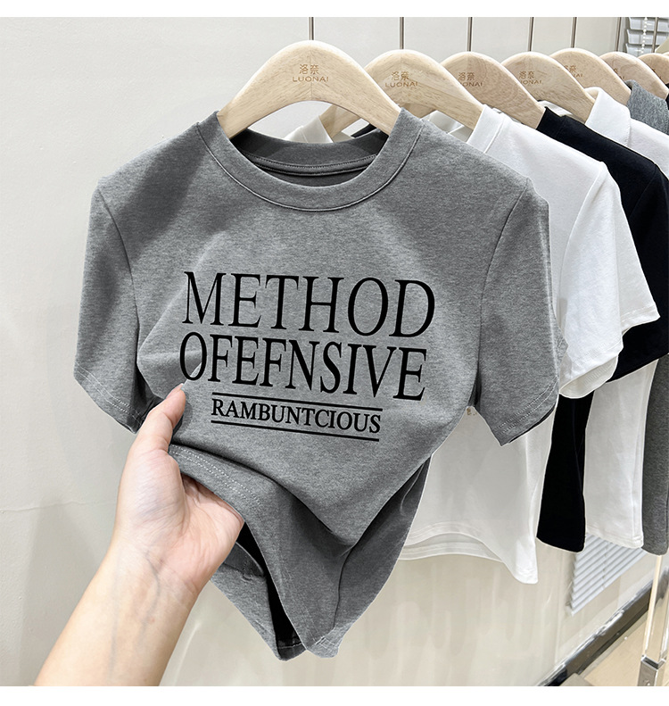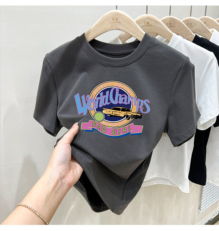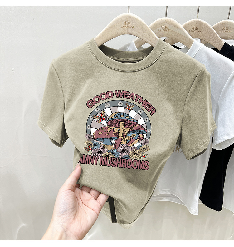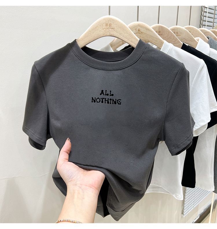 【79元2件】夏季修身圆领棉质T恤短袖 短款印花设计感短袖上衣
