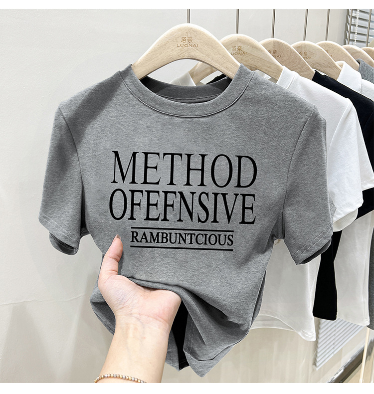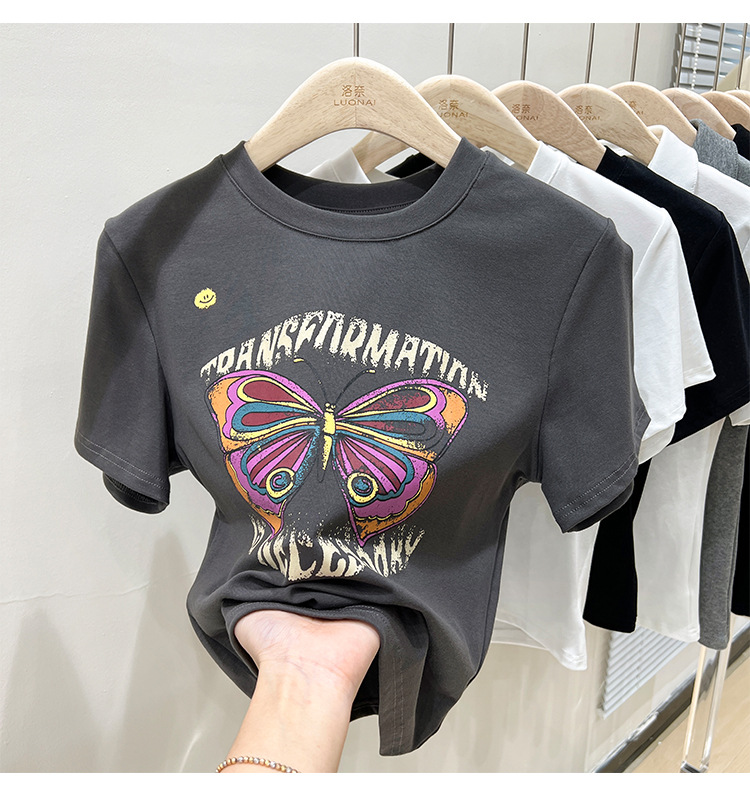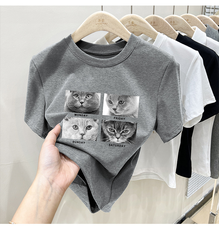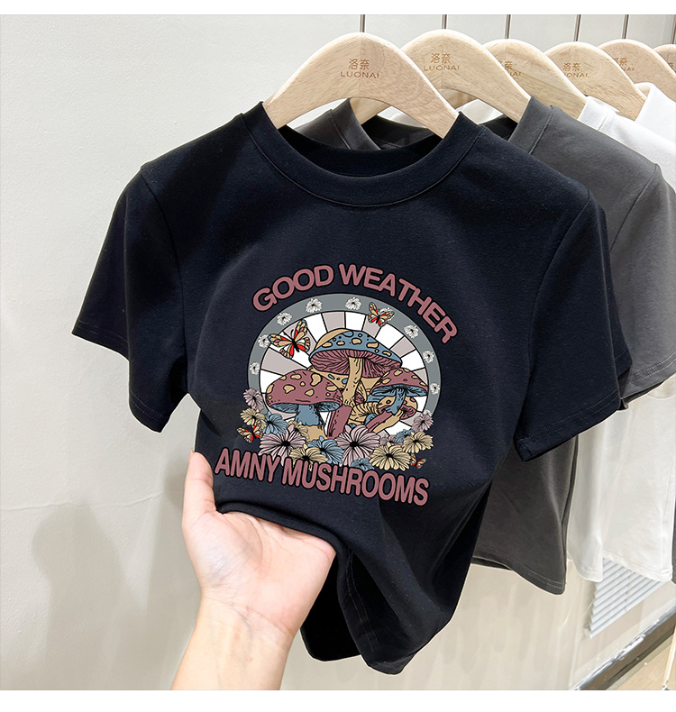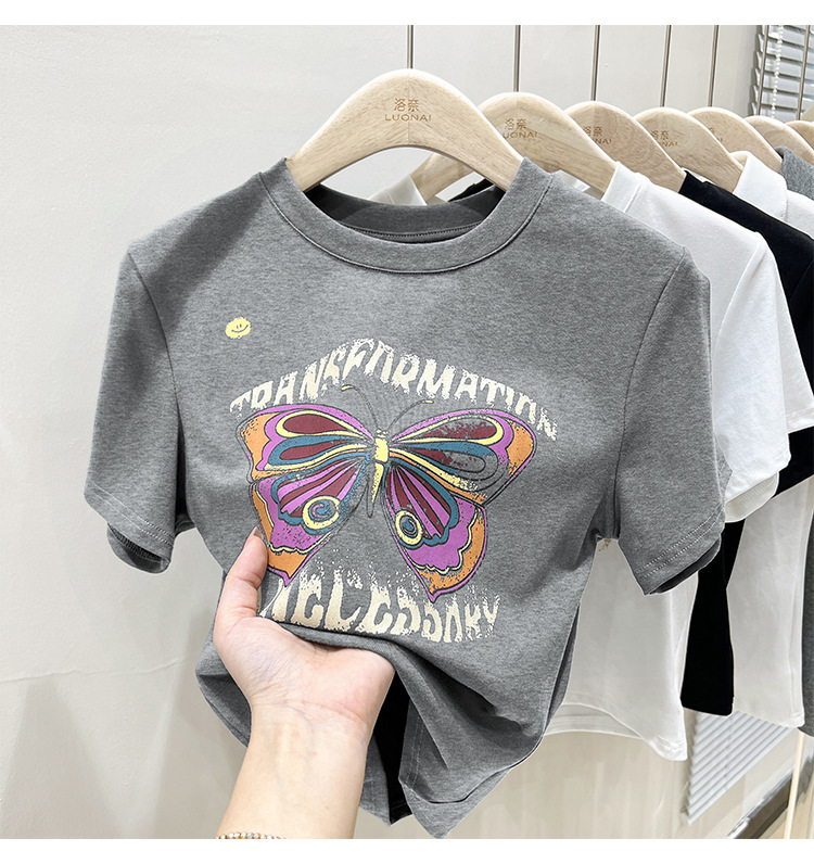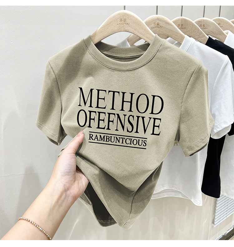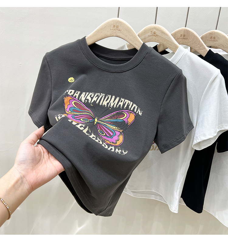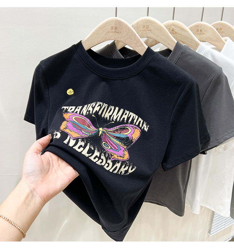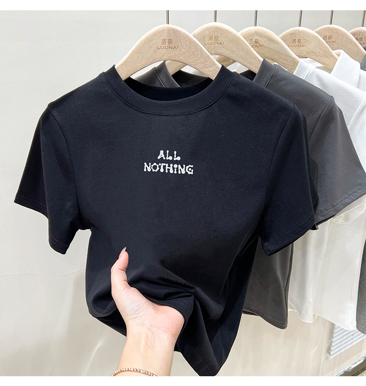 【79元2件】夏季修身圆领棉质T恤短袖 短款印花设计感短袖上衣