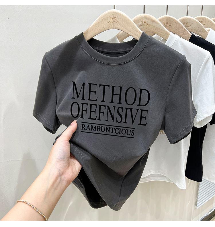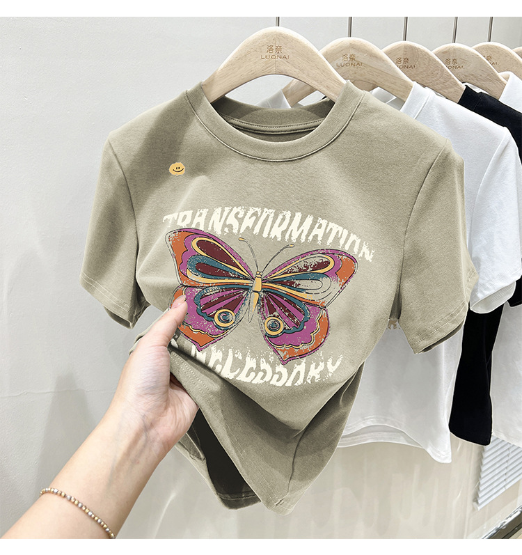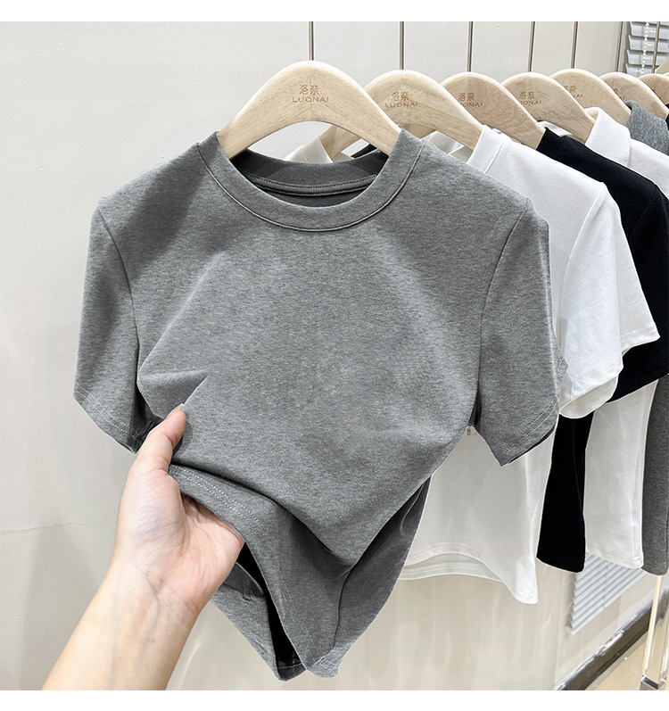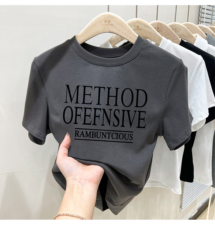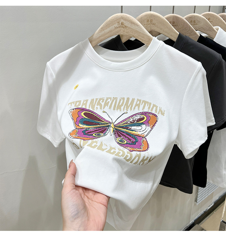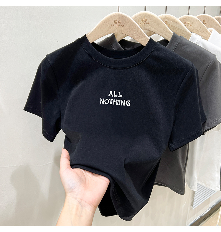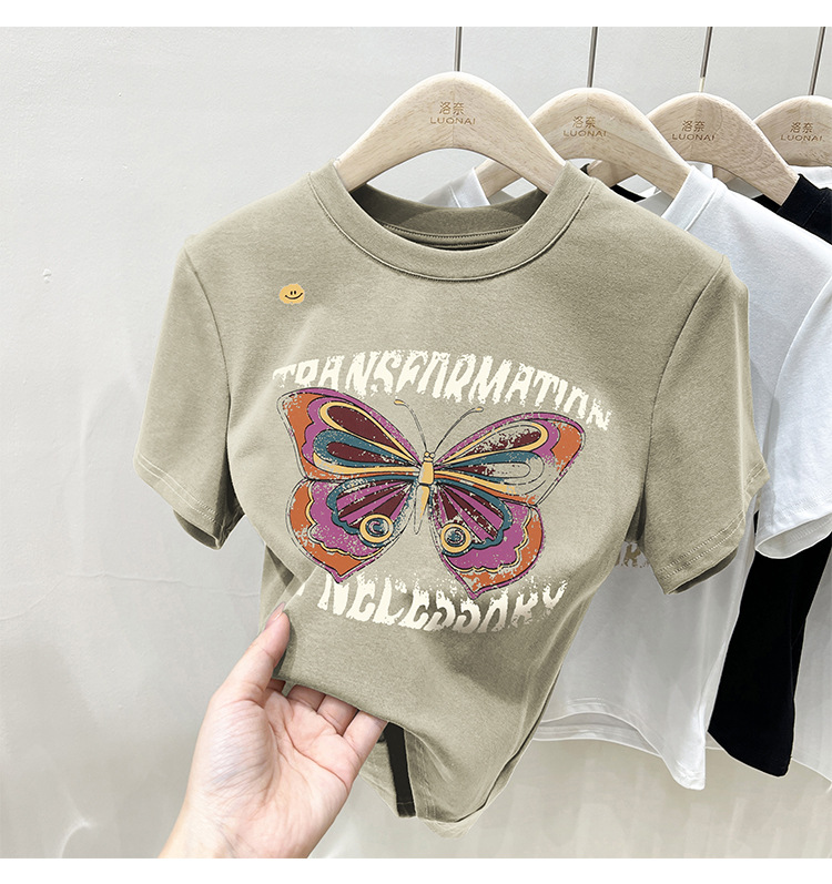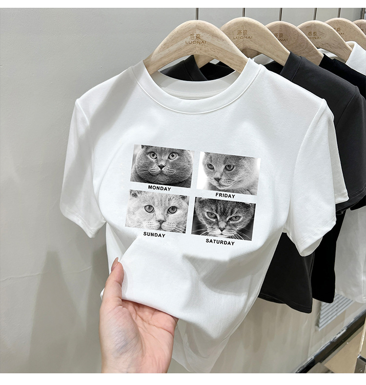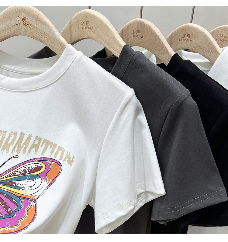 【79元2件】夏季修身圆领棉质T恤短袖 短款印花设计感短袖上衣