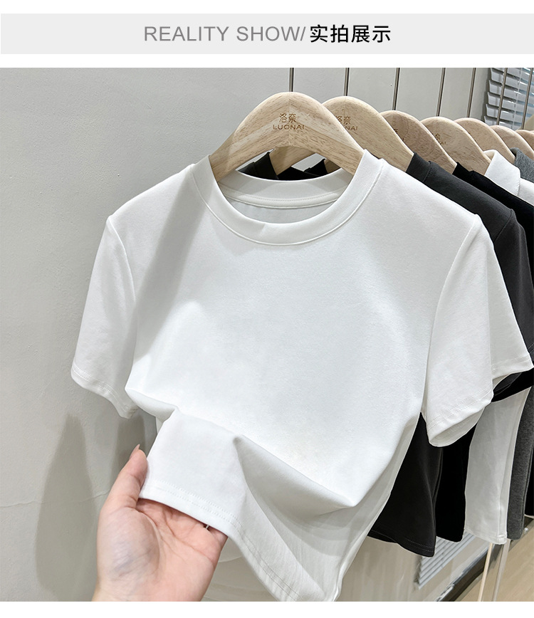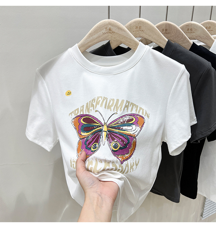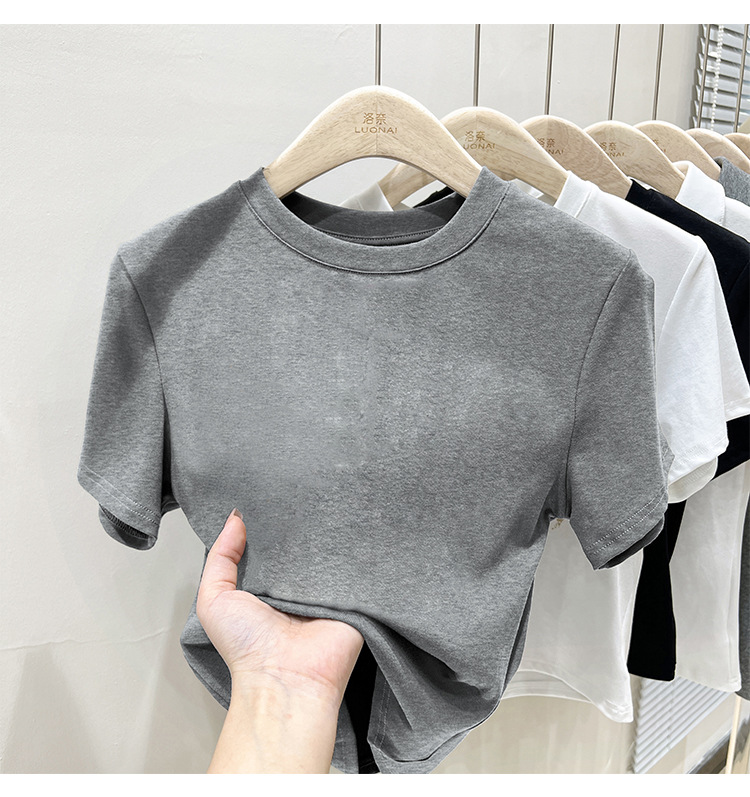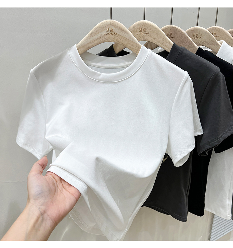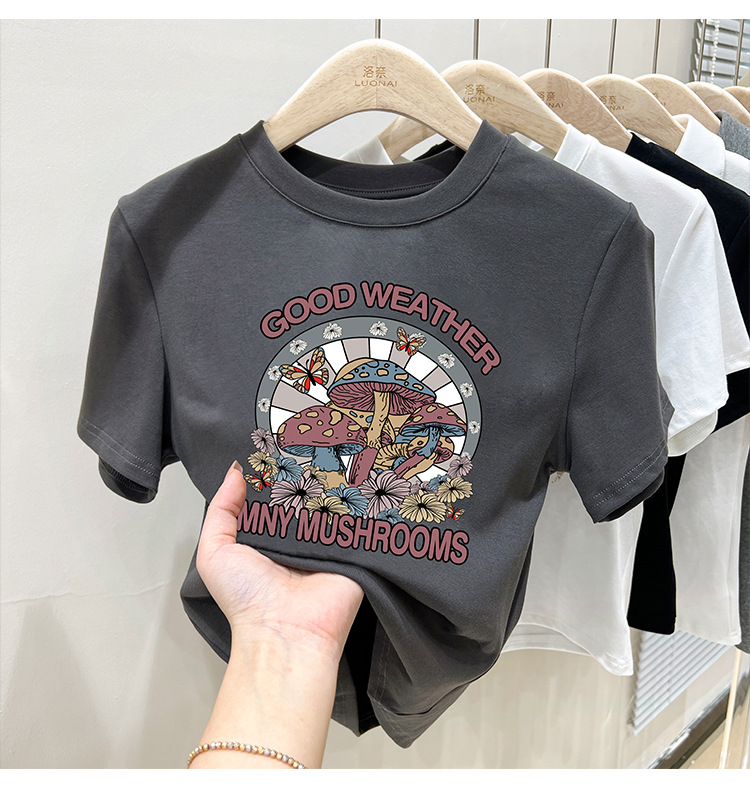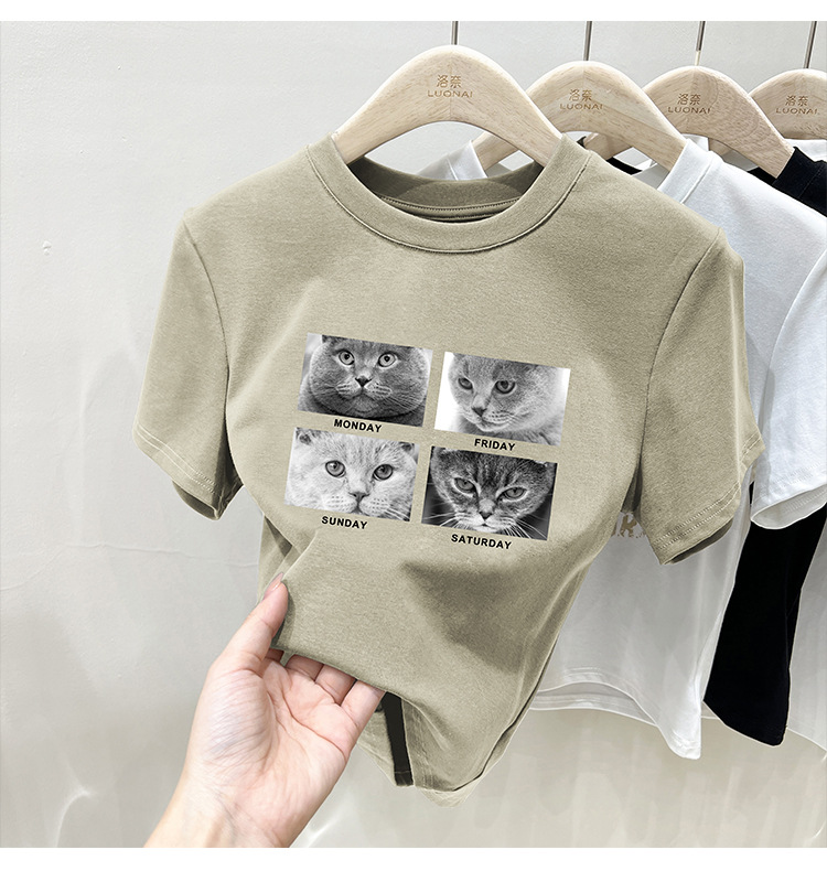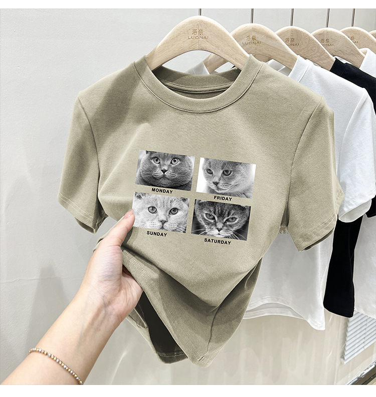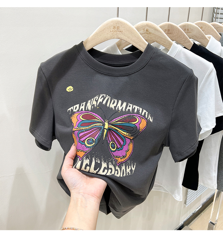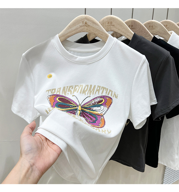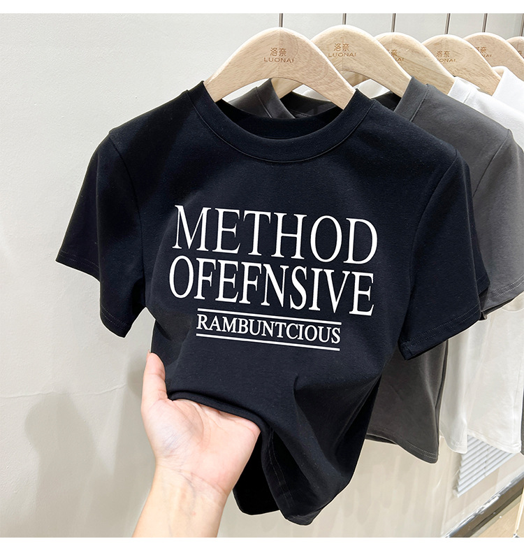 【79元2件】夏季修身圆领棉质T恤短袖 短款印花设计感短袖上衣