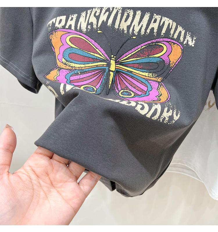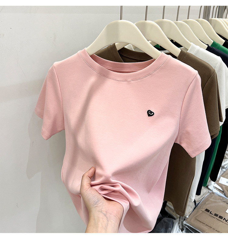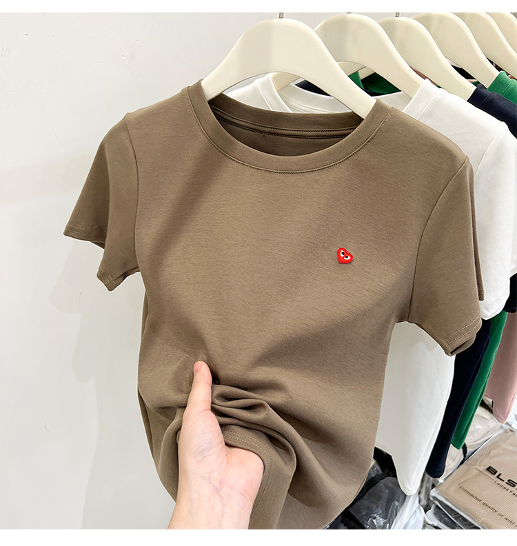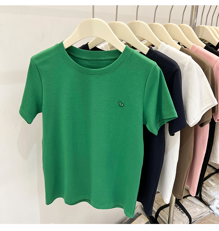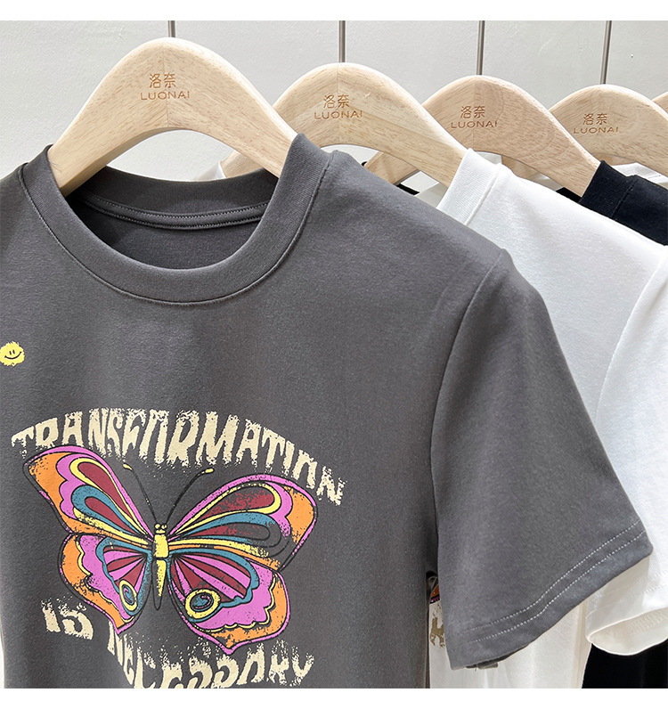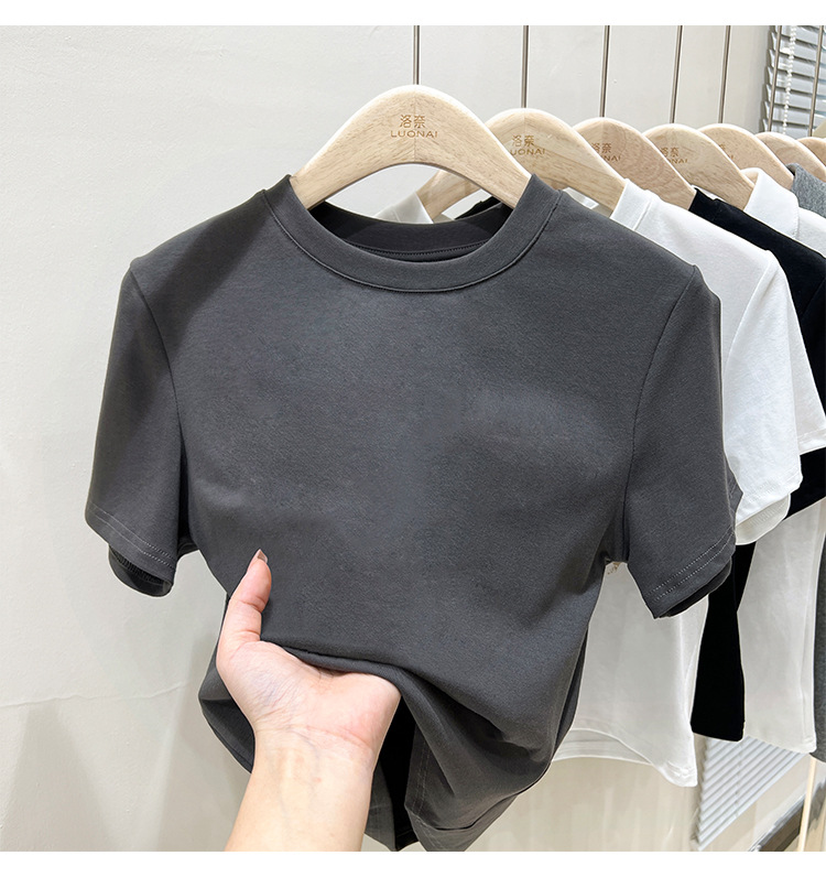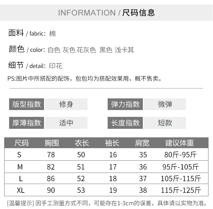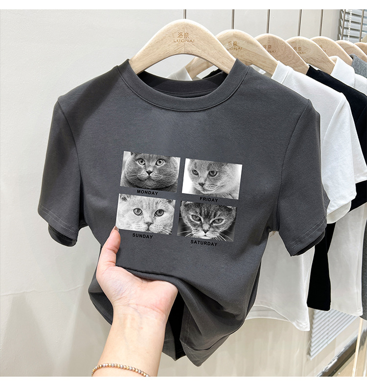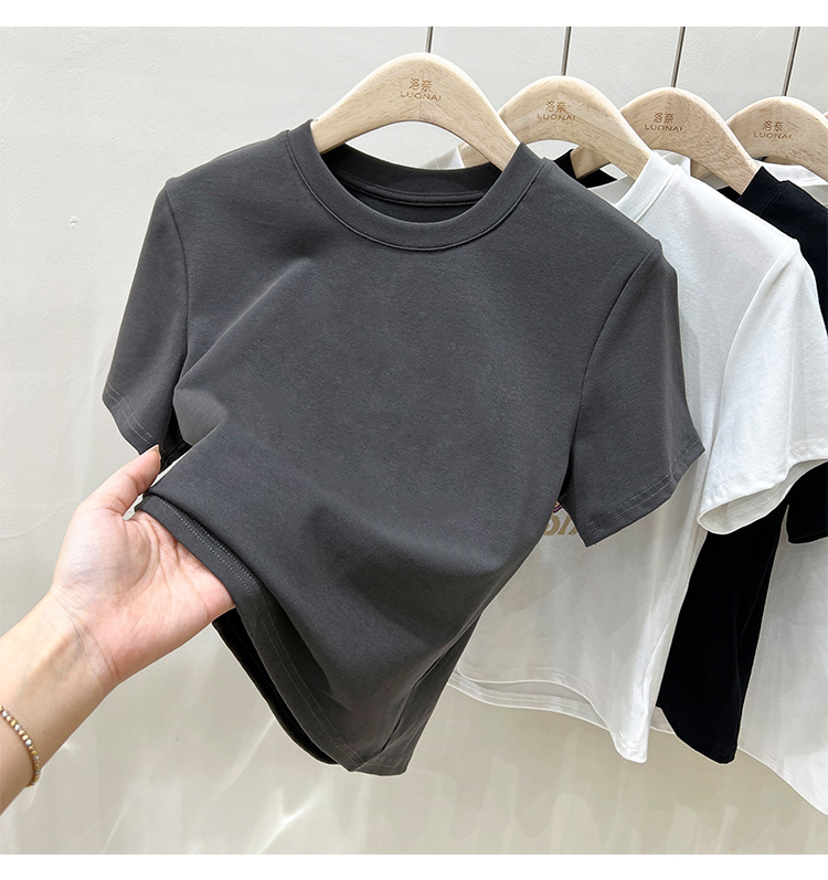 【79元2件】夏季修身圆领棉质T恤短袖 短款印花设计感短袖上衣