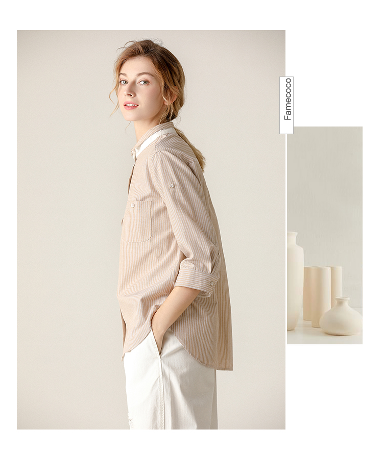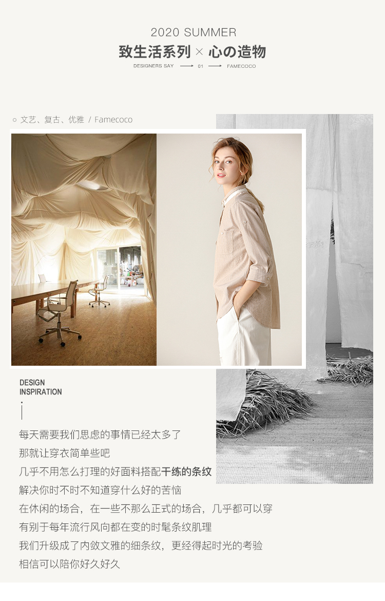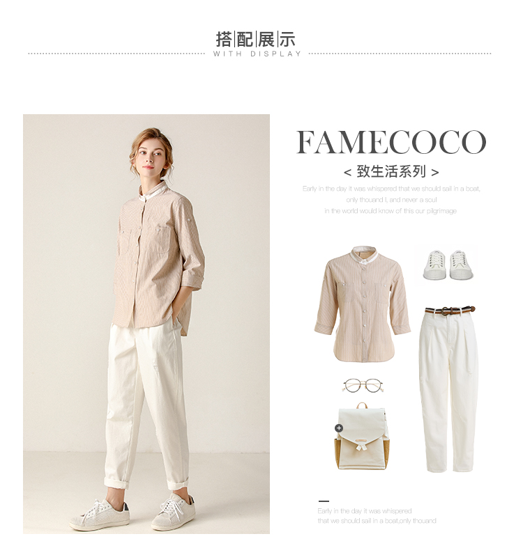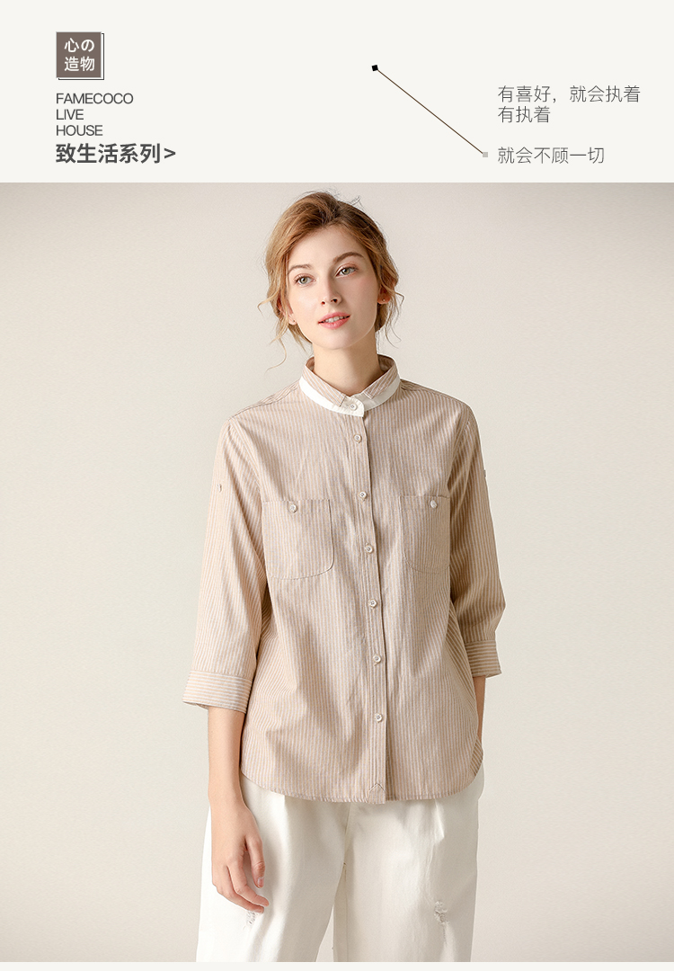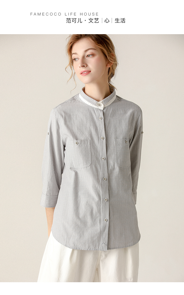 famecoco范可儿条纹衬衫女文艺半袖上衣女设计感小众