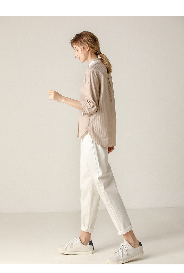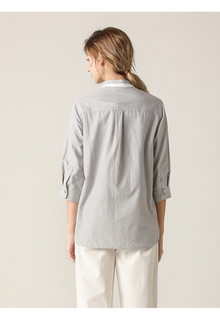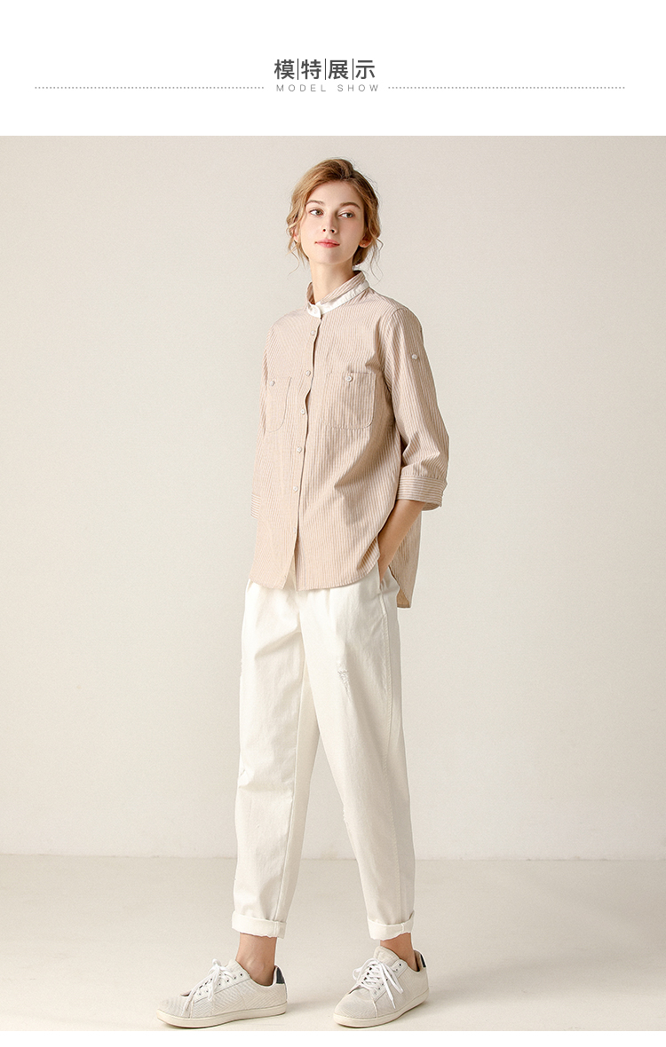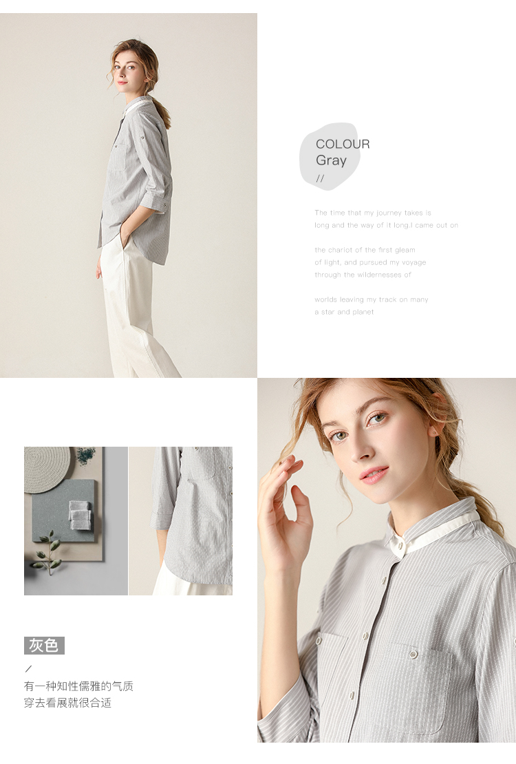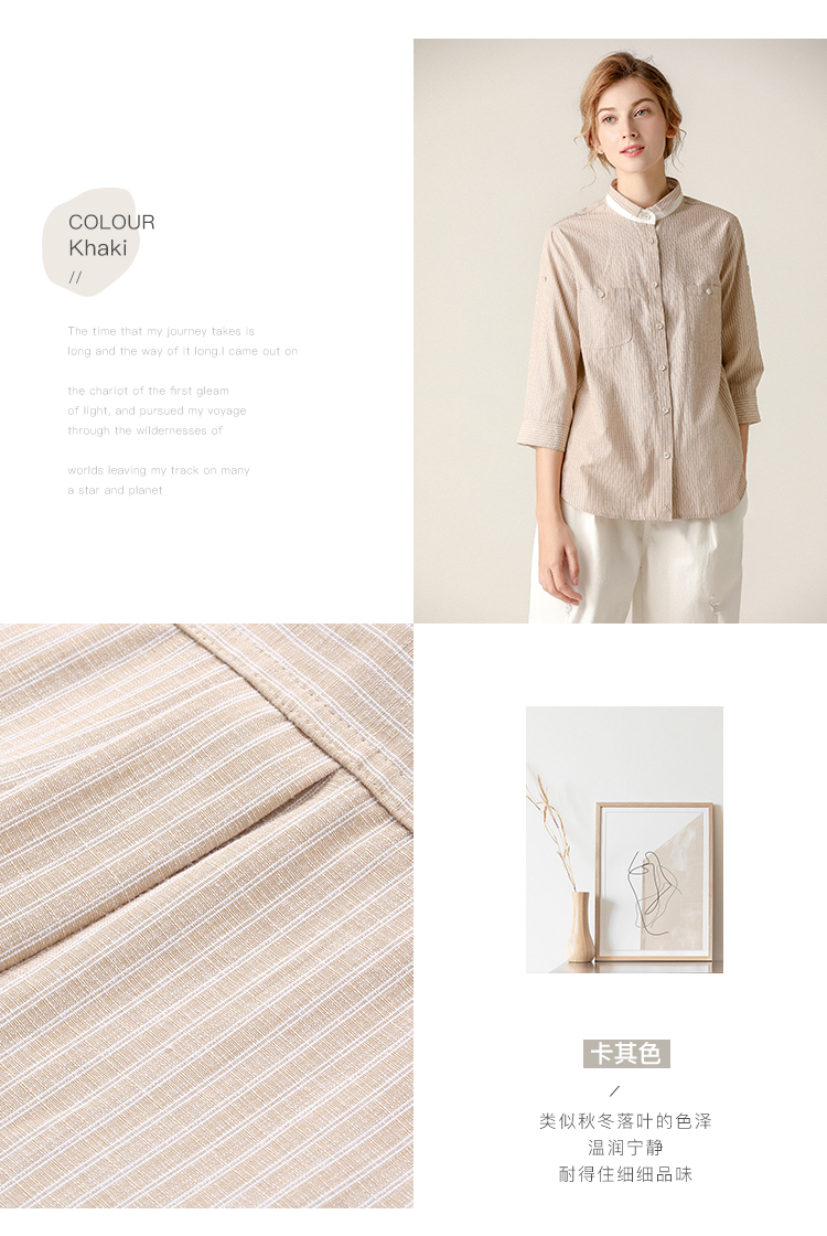 famecoco范可儿条纹衬衫女文艺半袖上衣女设计感小众