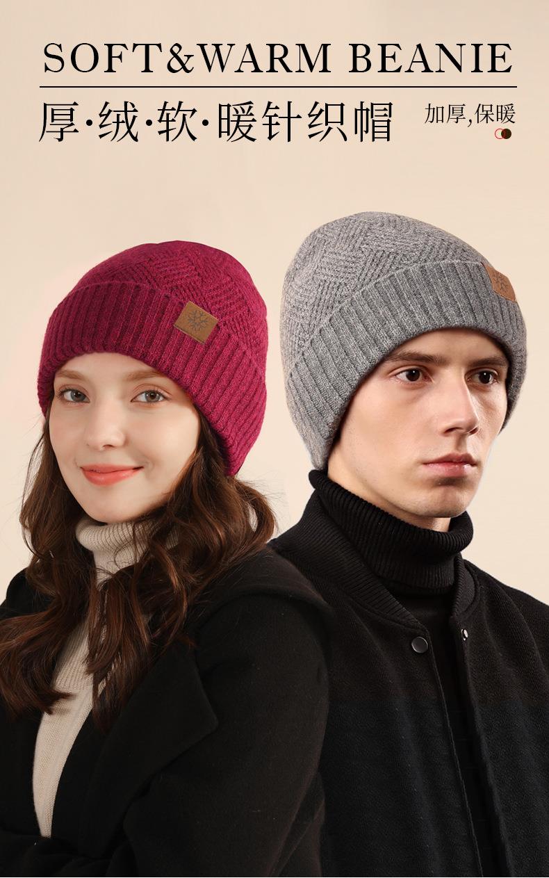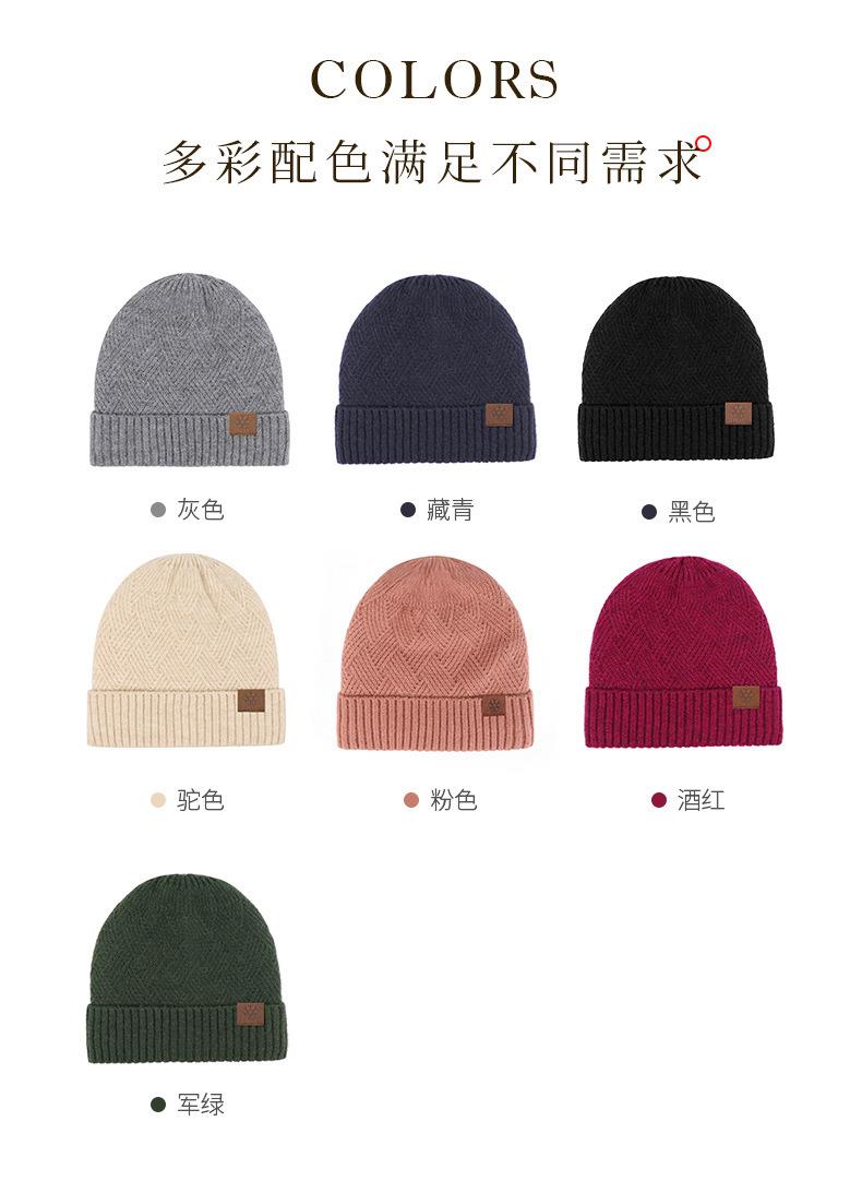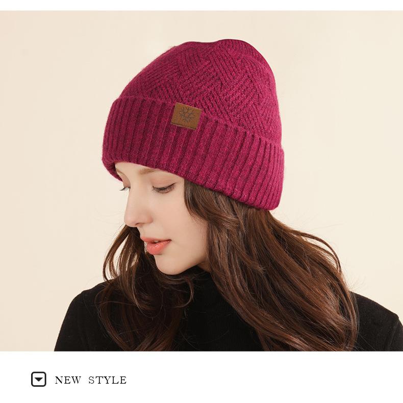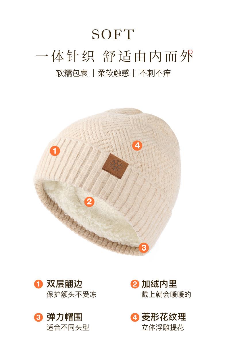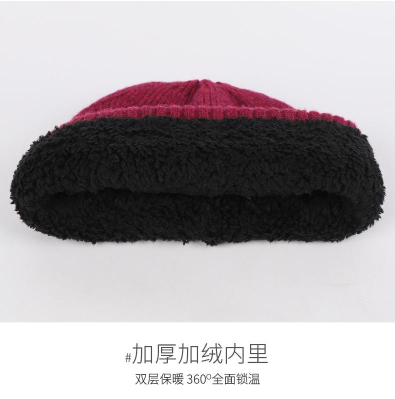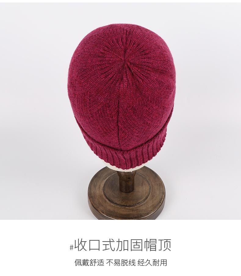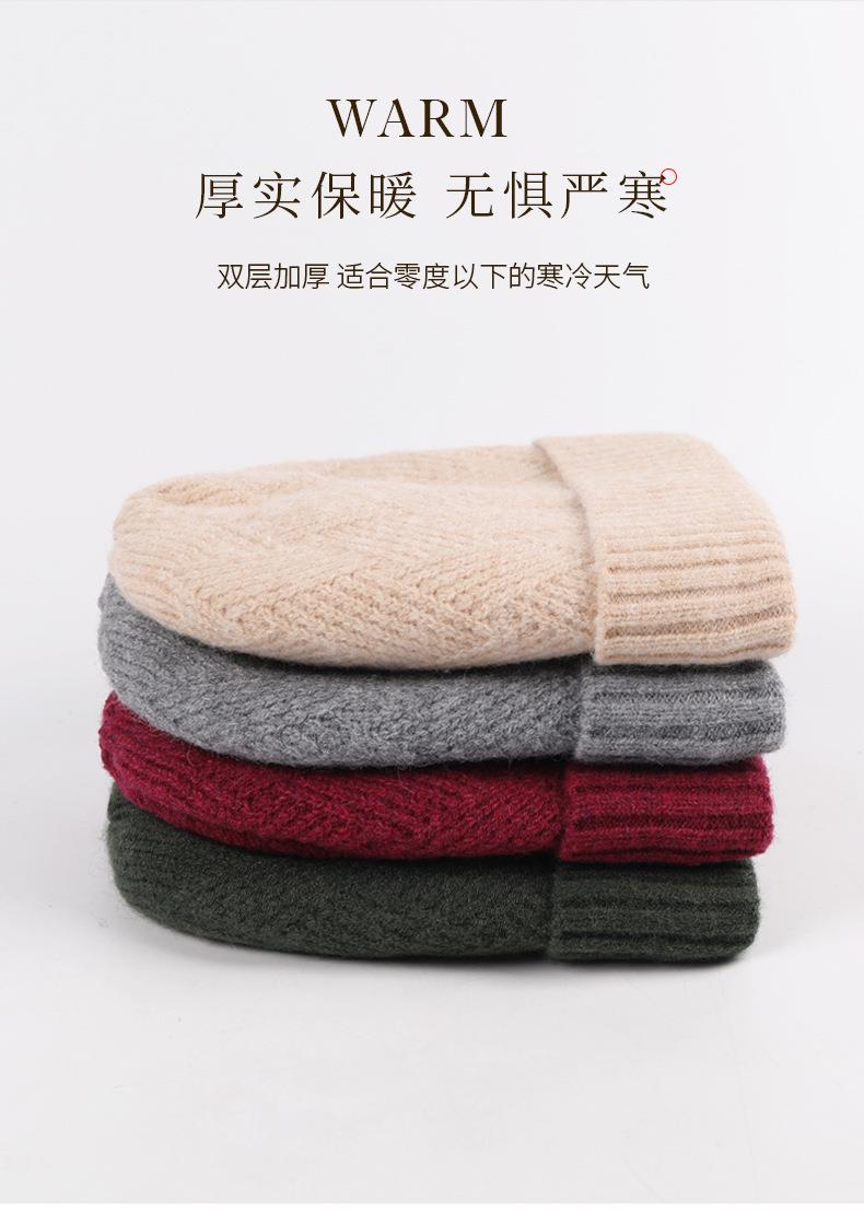 冬季双层加绒加厚针织帽子女纯色羊毛保暖防风护耳套头翻边毛线帽