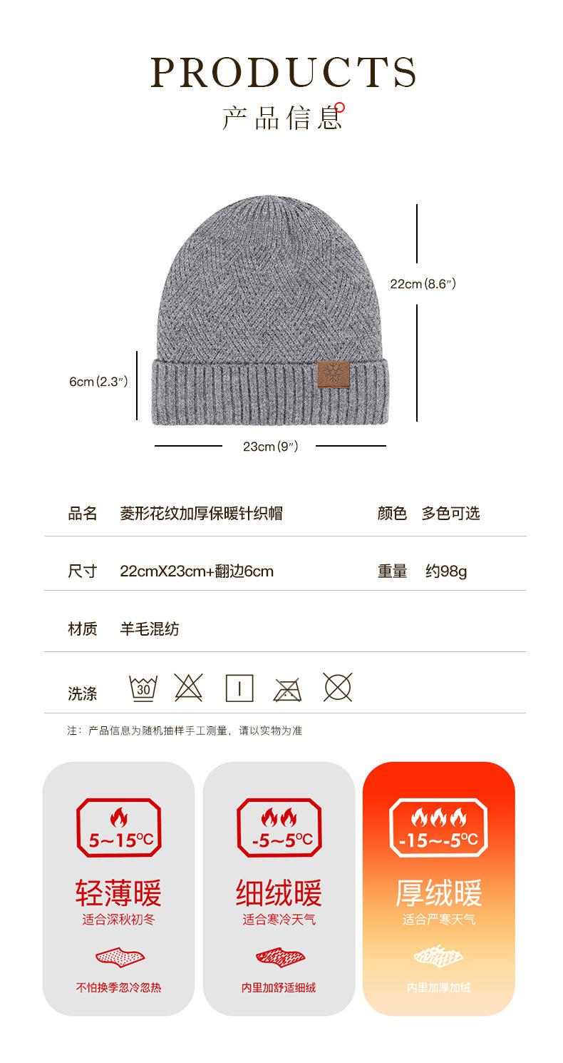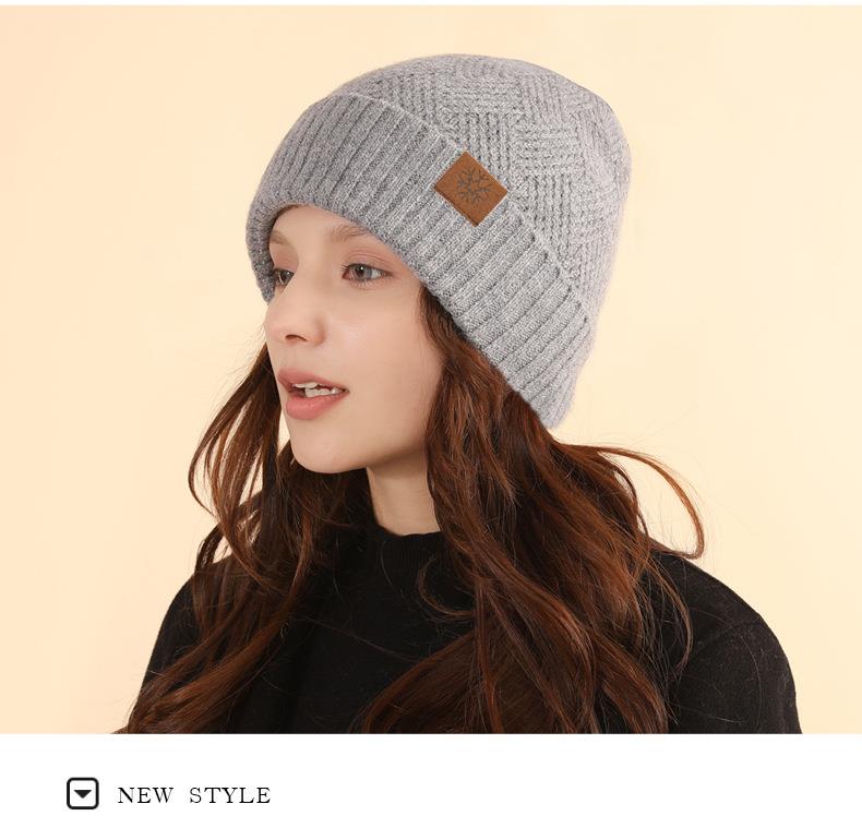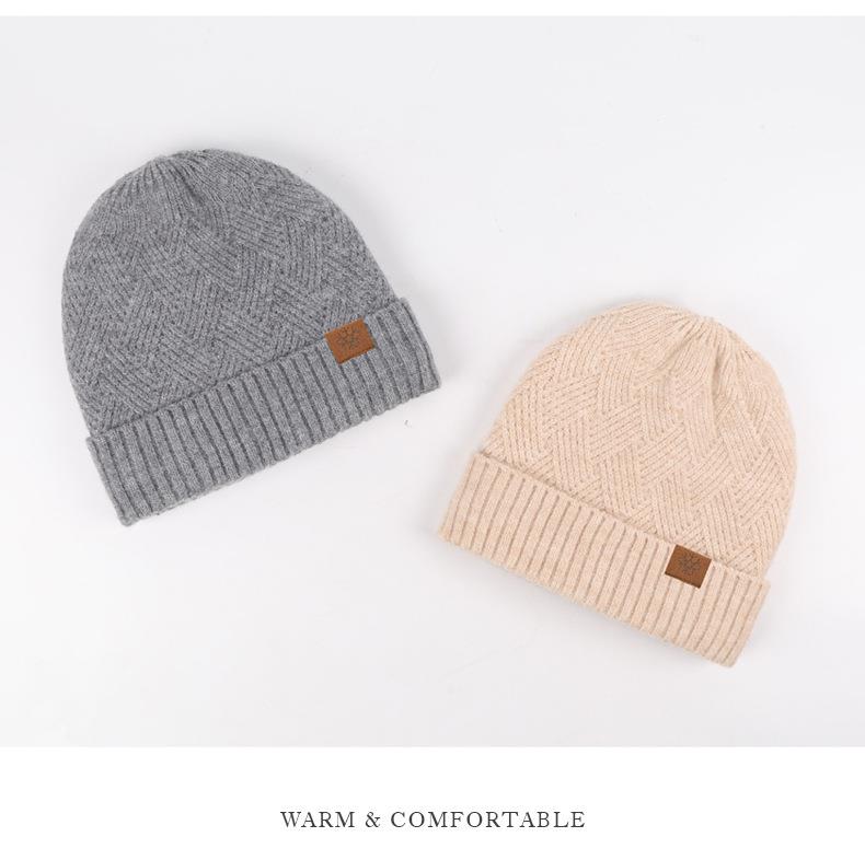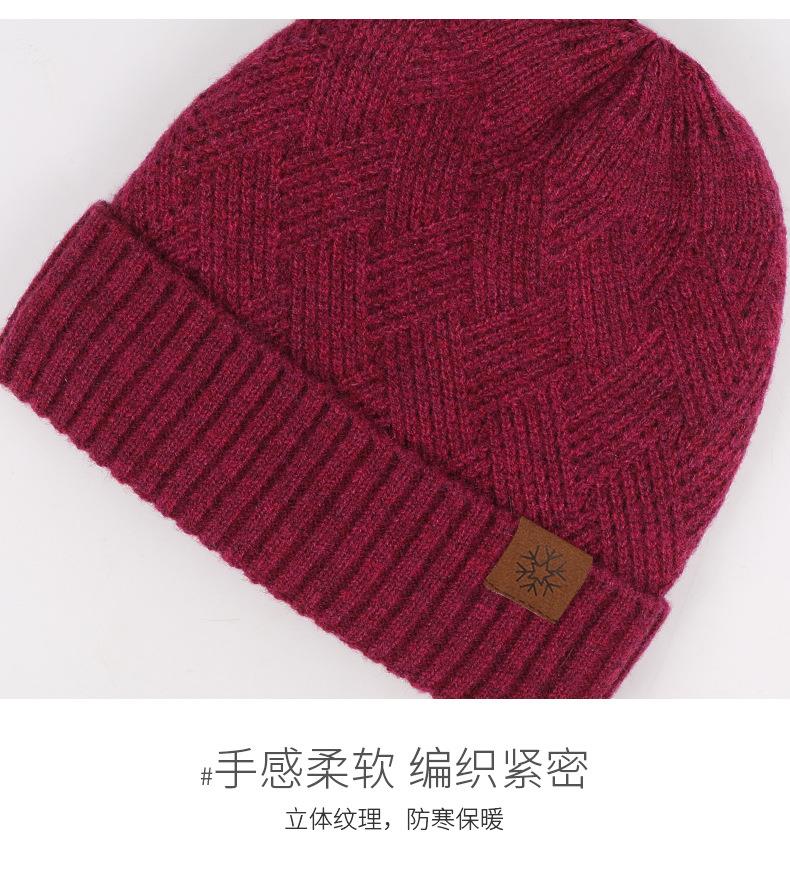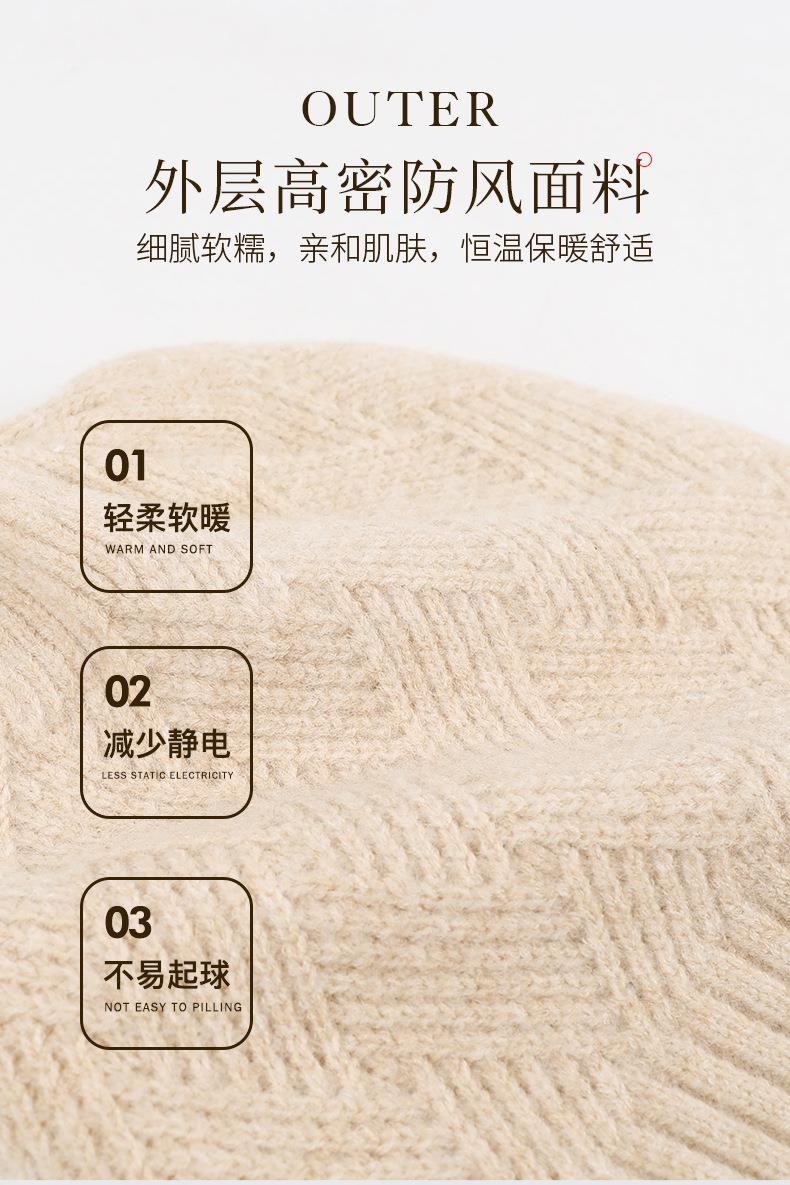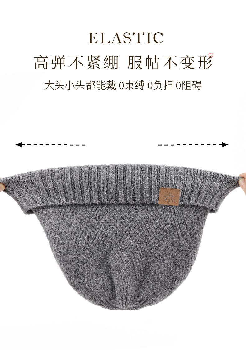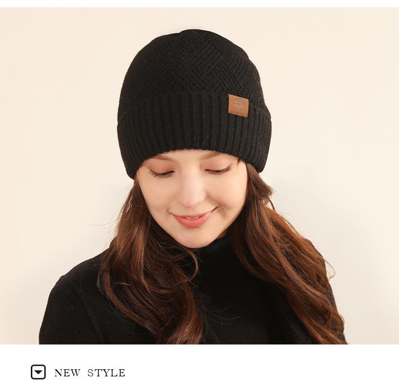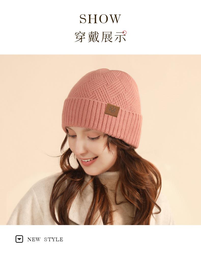 冬季双层加绒加厚针织帽子女纯色羊毛保暖防风护耳套头翻边毛线帽