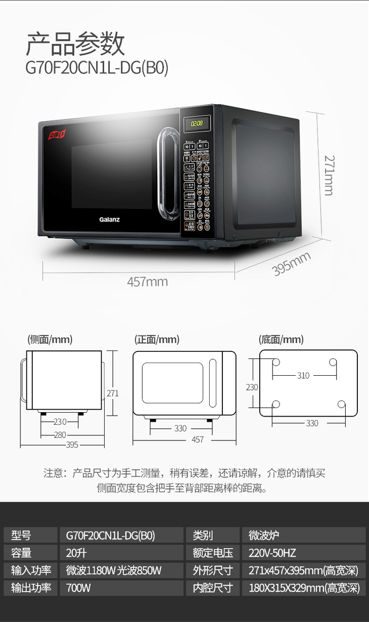 力挺国货!Galanz/格兰仕微波炉 G70F20CN1L-DG