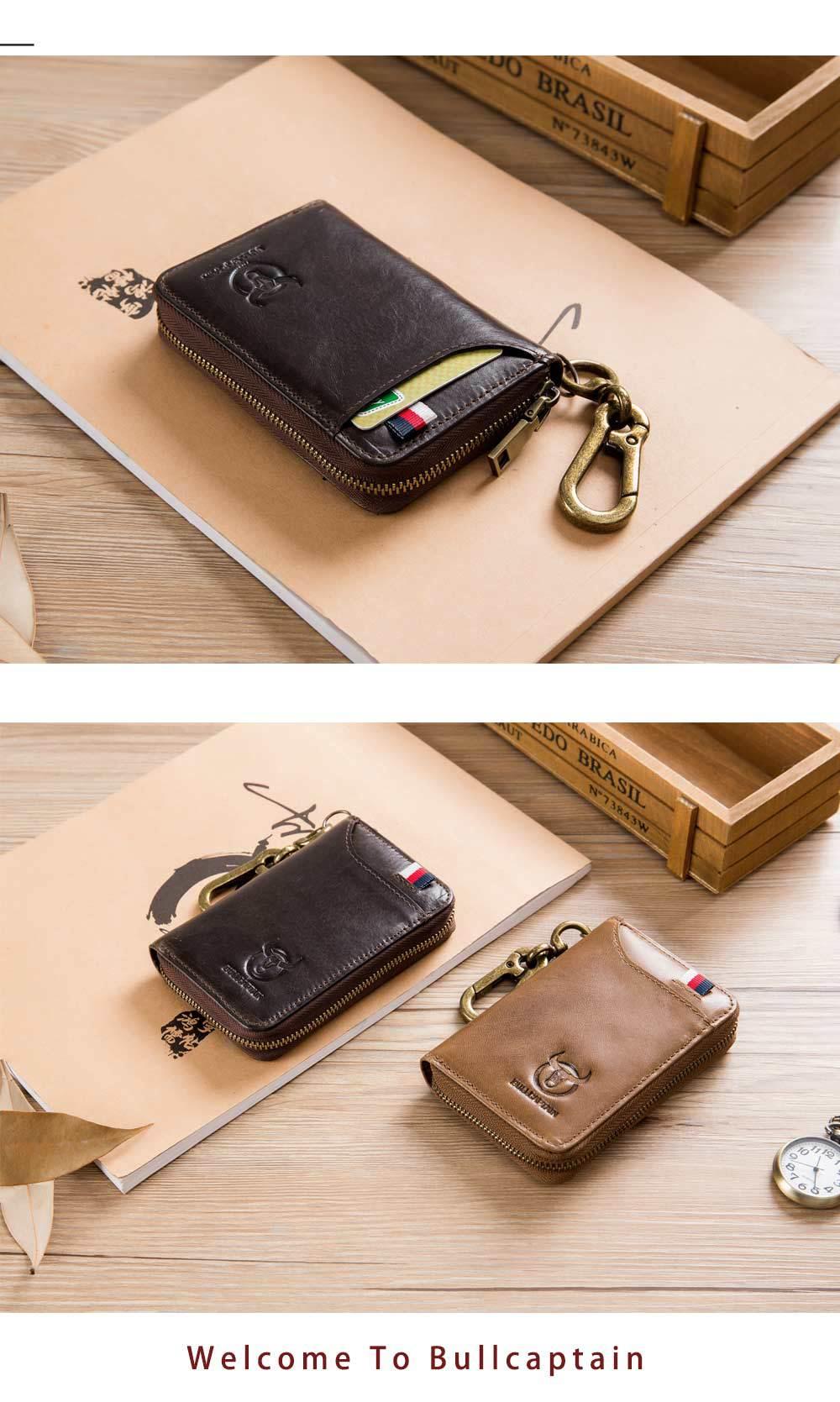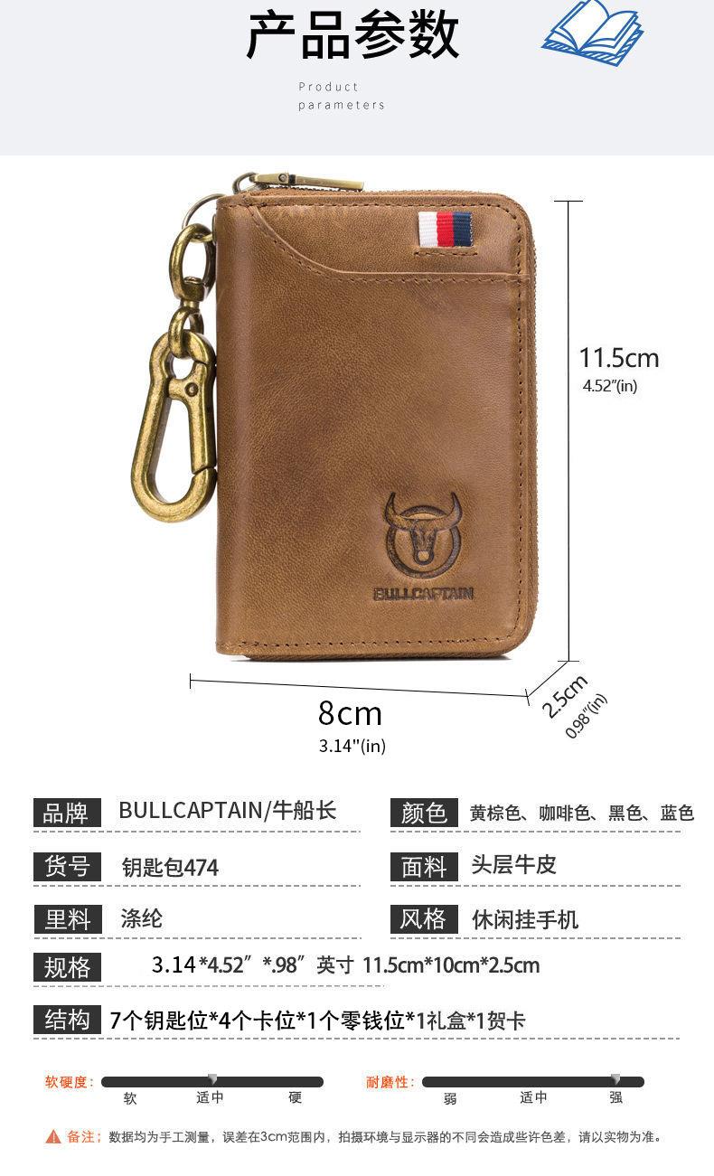 牛船长汽车钥匙包真皮男挂腰门禁防盗刷牛皮锁匙包二合一零钱包