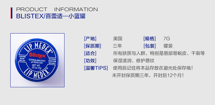 美国Blistex碧唇小蓝罐护唇膏 原价32元