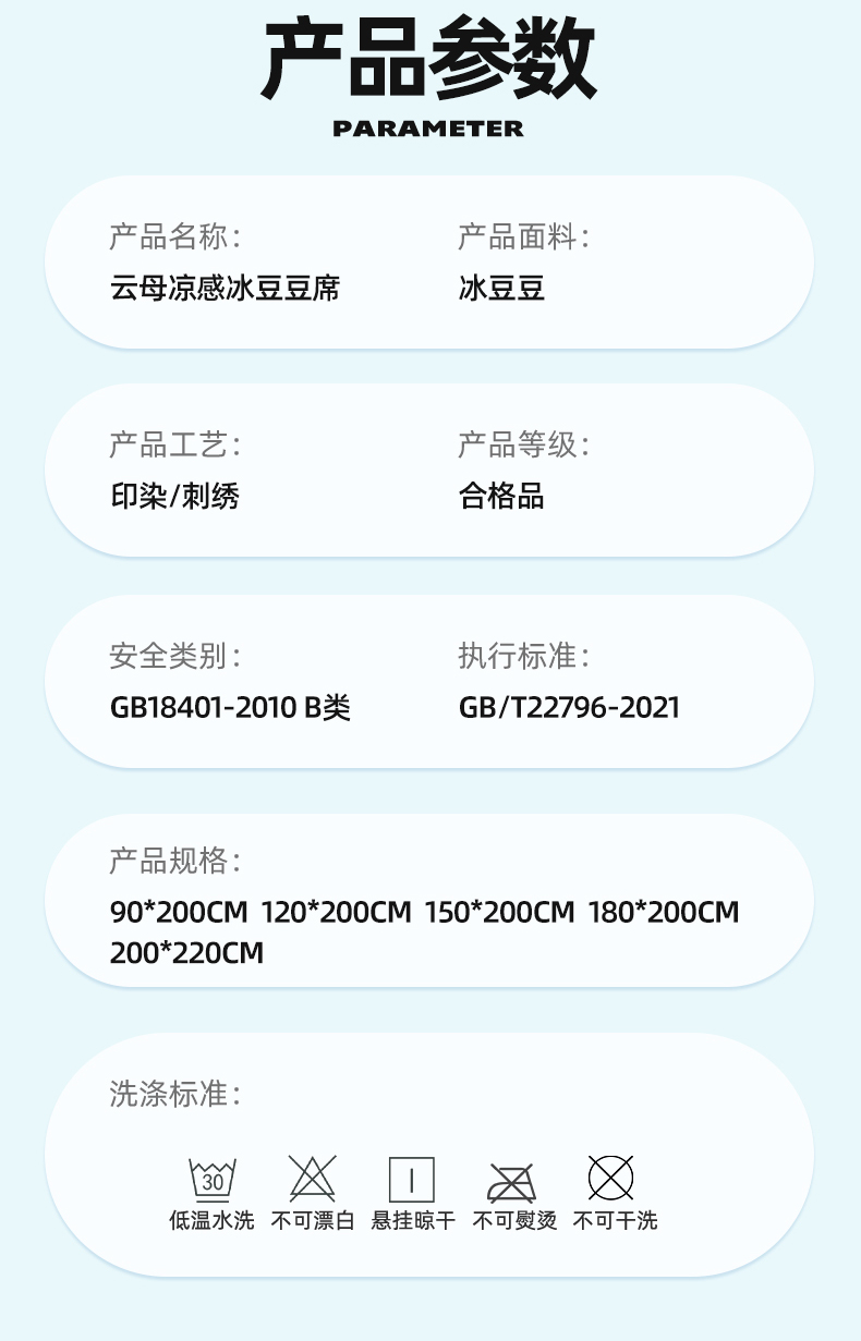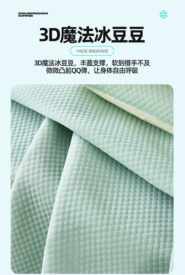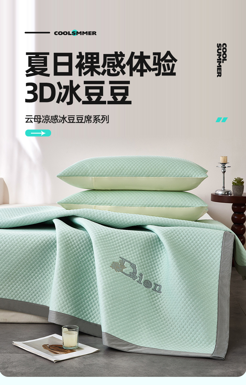 【品牌直发】加倍生活 新款云母凉感冰豆豆席床席款凉席三件套 7色可选席子