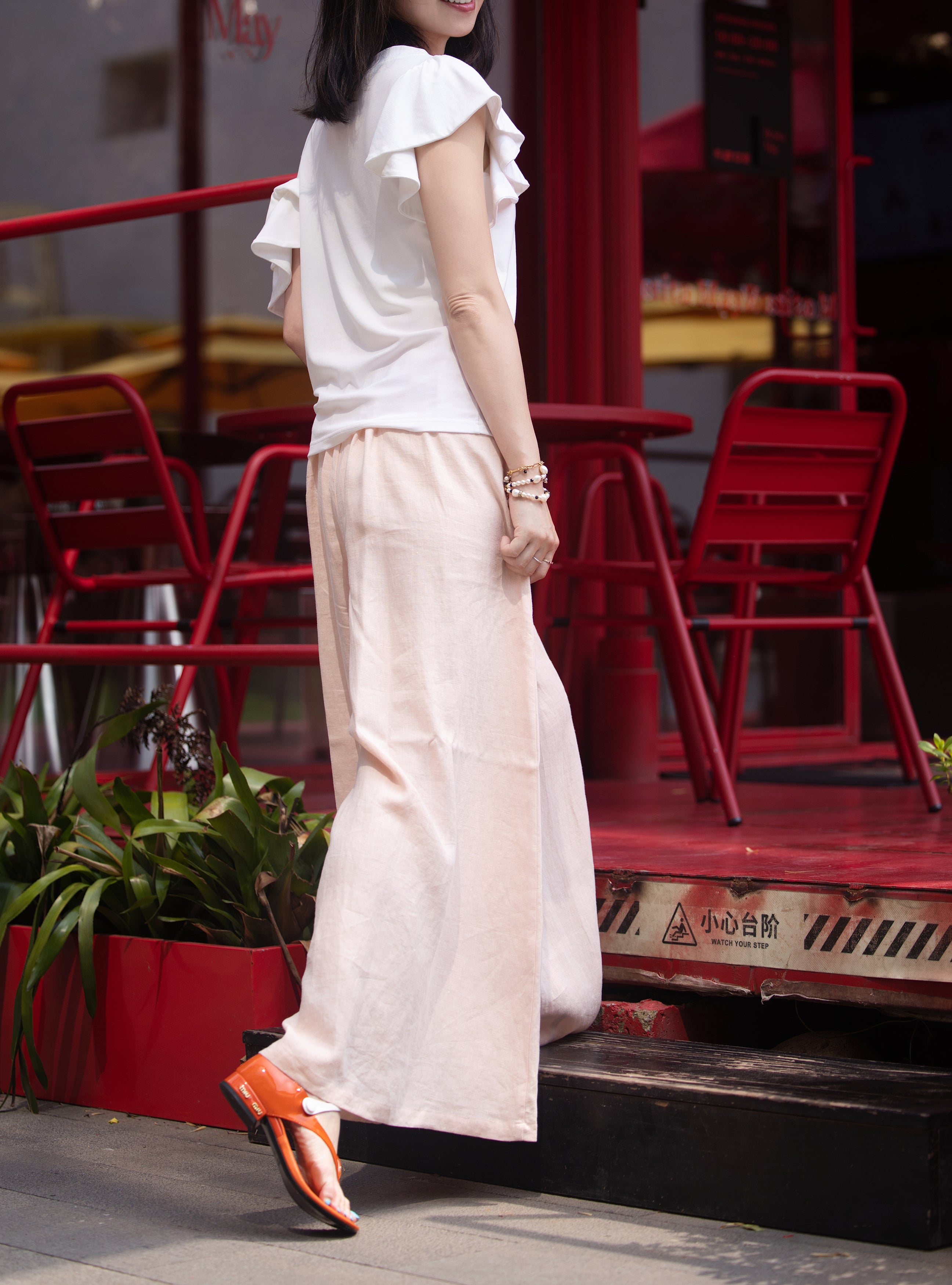 TYNVIE 拆卸蝴蝶结波浪边背心-橘粉色