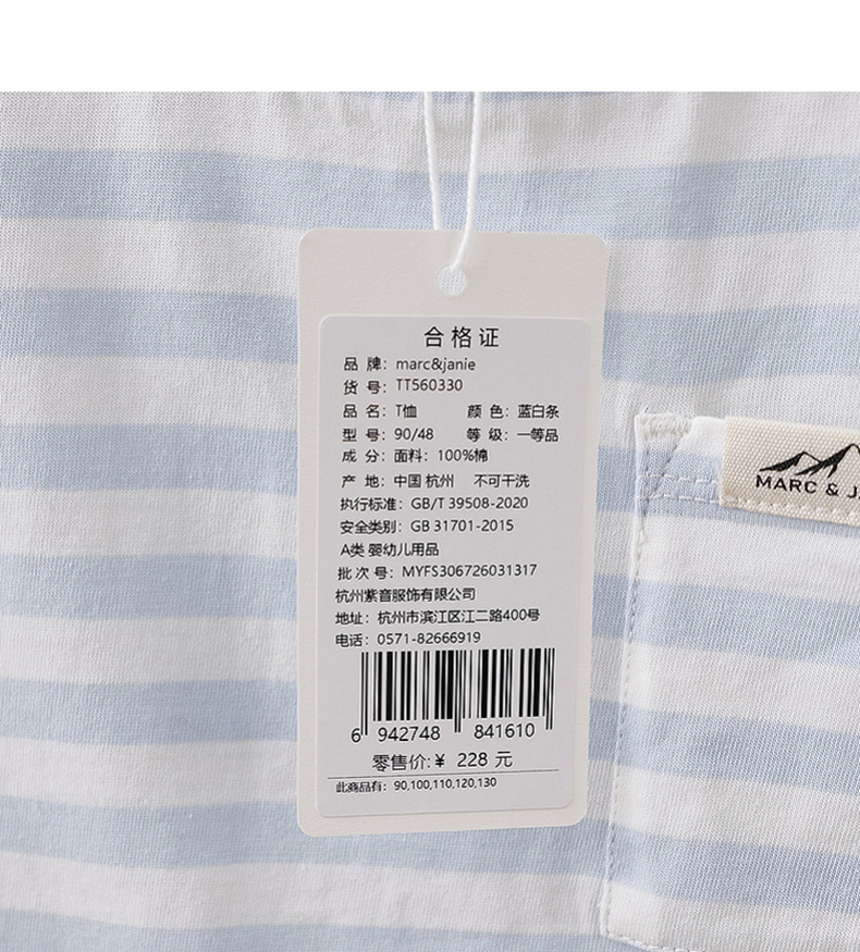 马克珍妮条纹男童纯棉云朵T2026年夏装新款560330