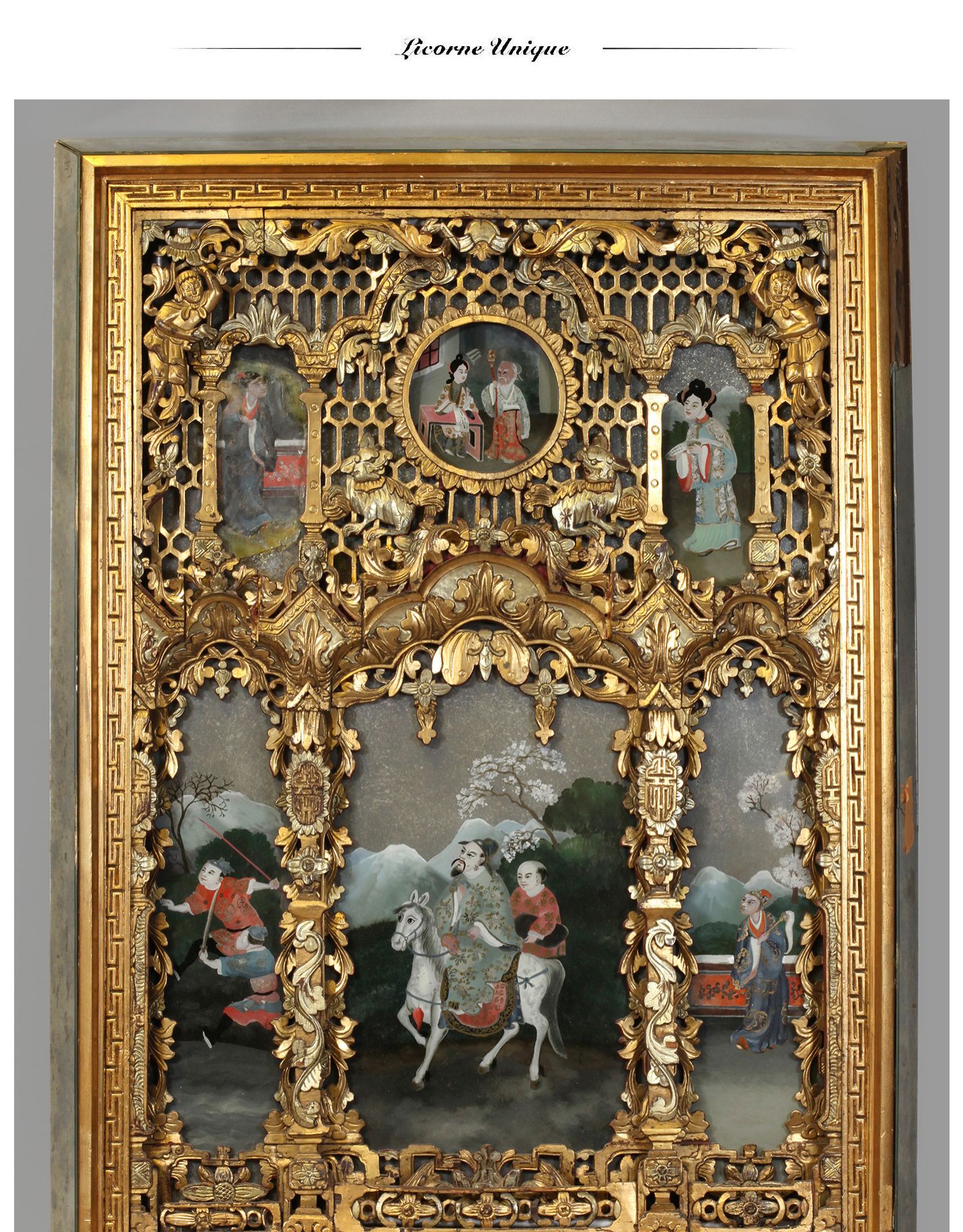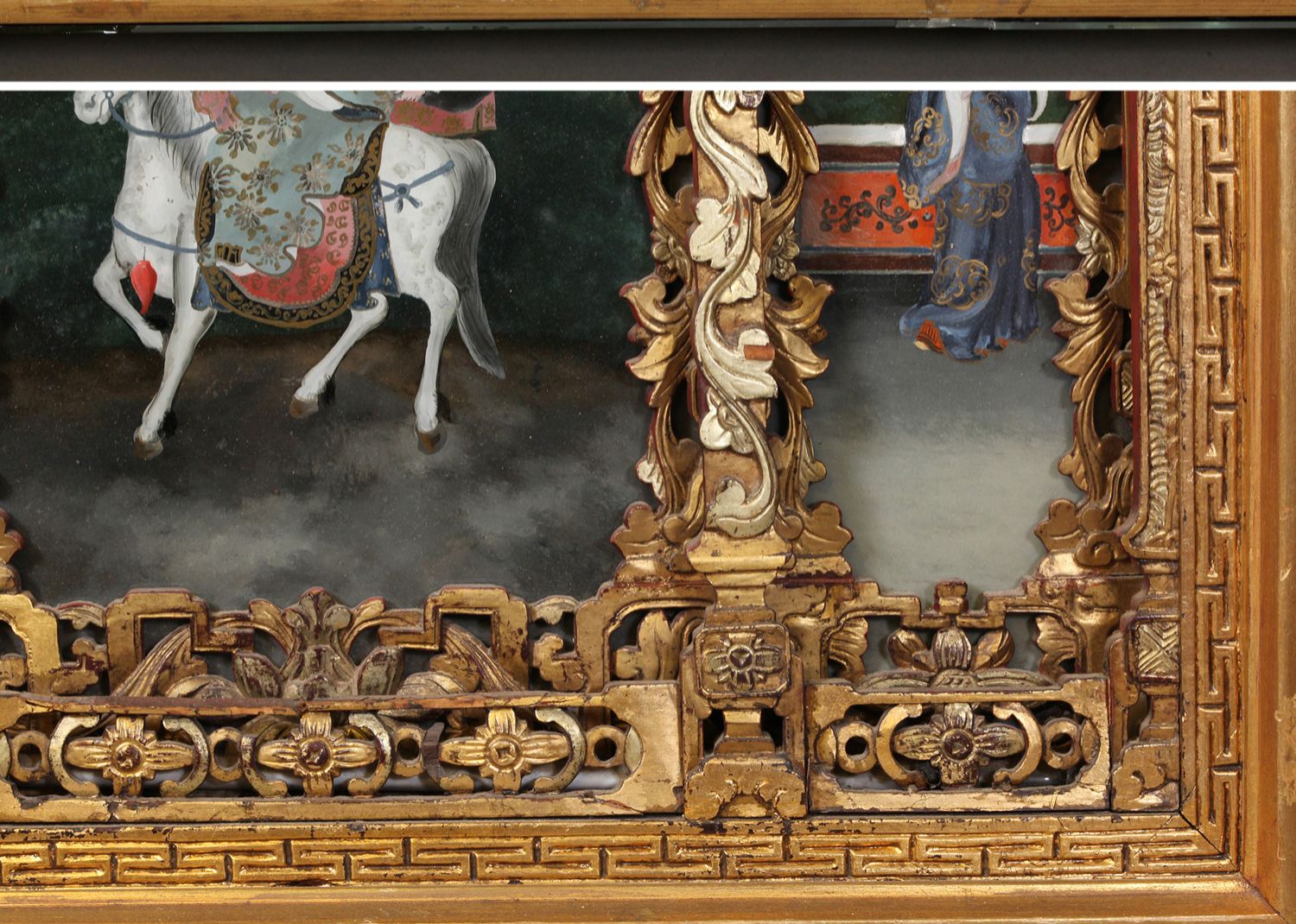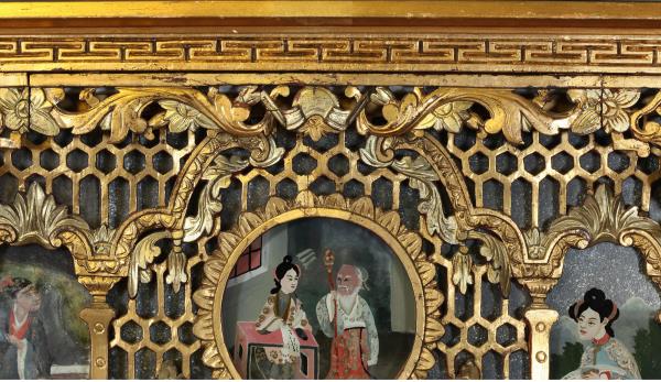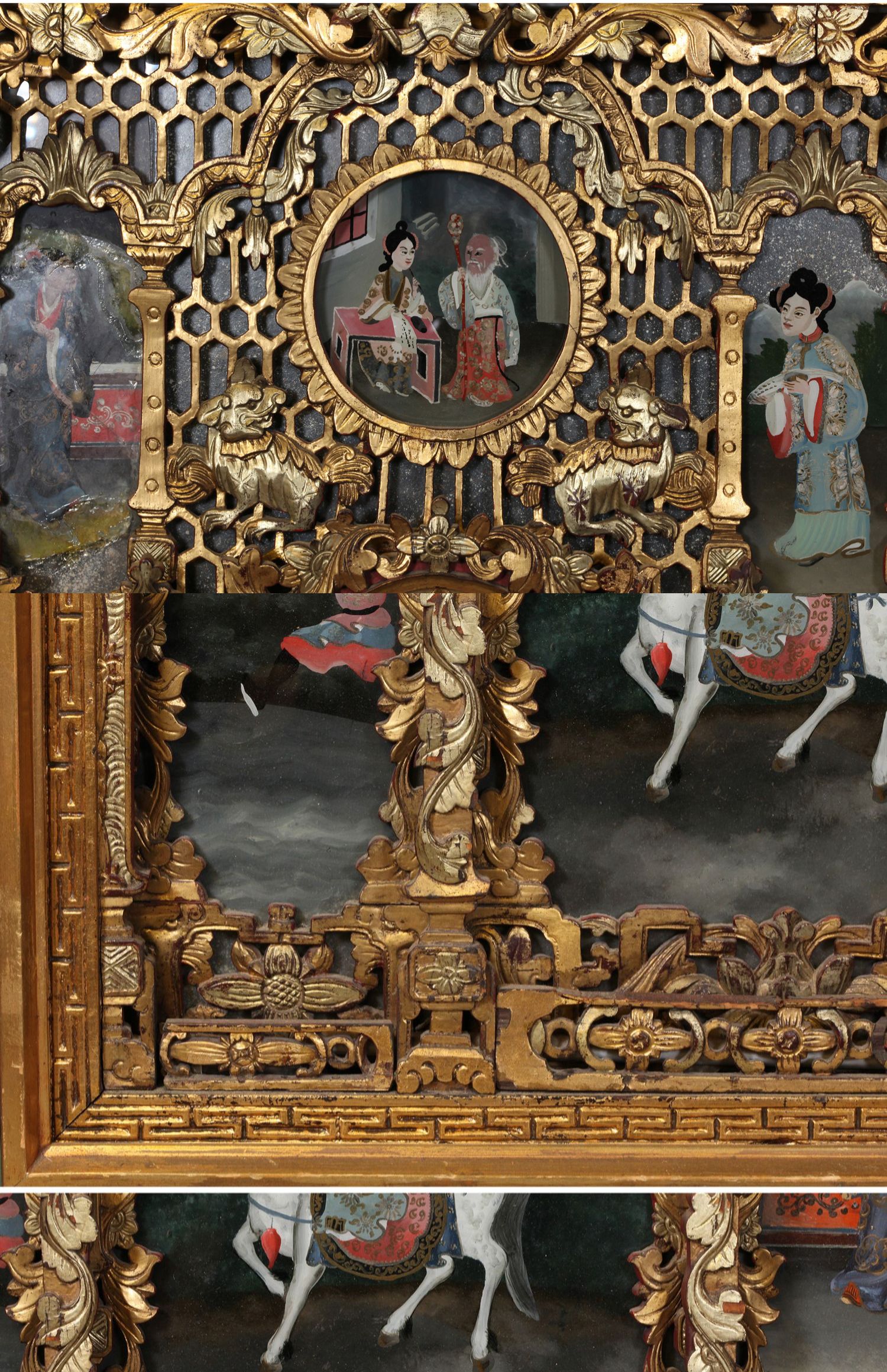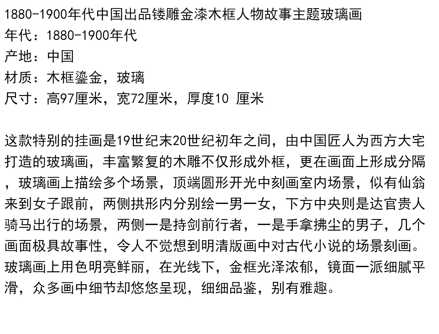 独角鹿西洋古董家居装饰墙壁挂饰中国镂雕金漆木框人物故事玻璃画