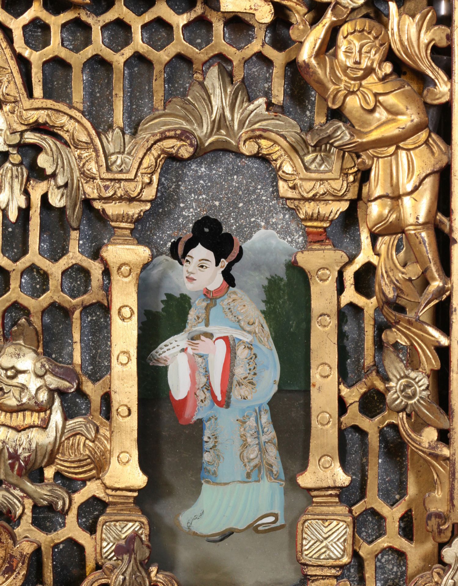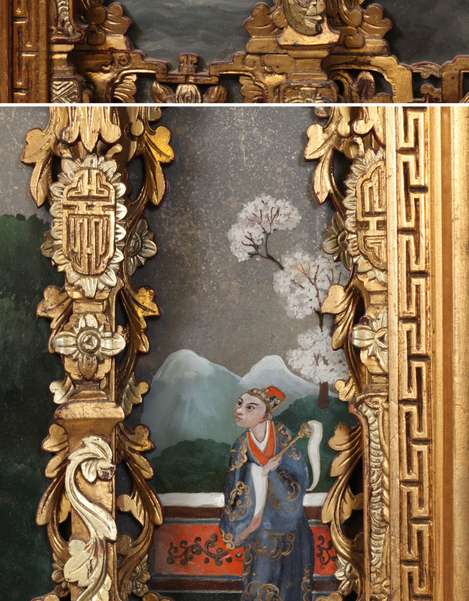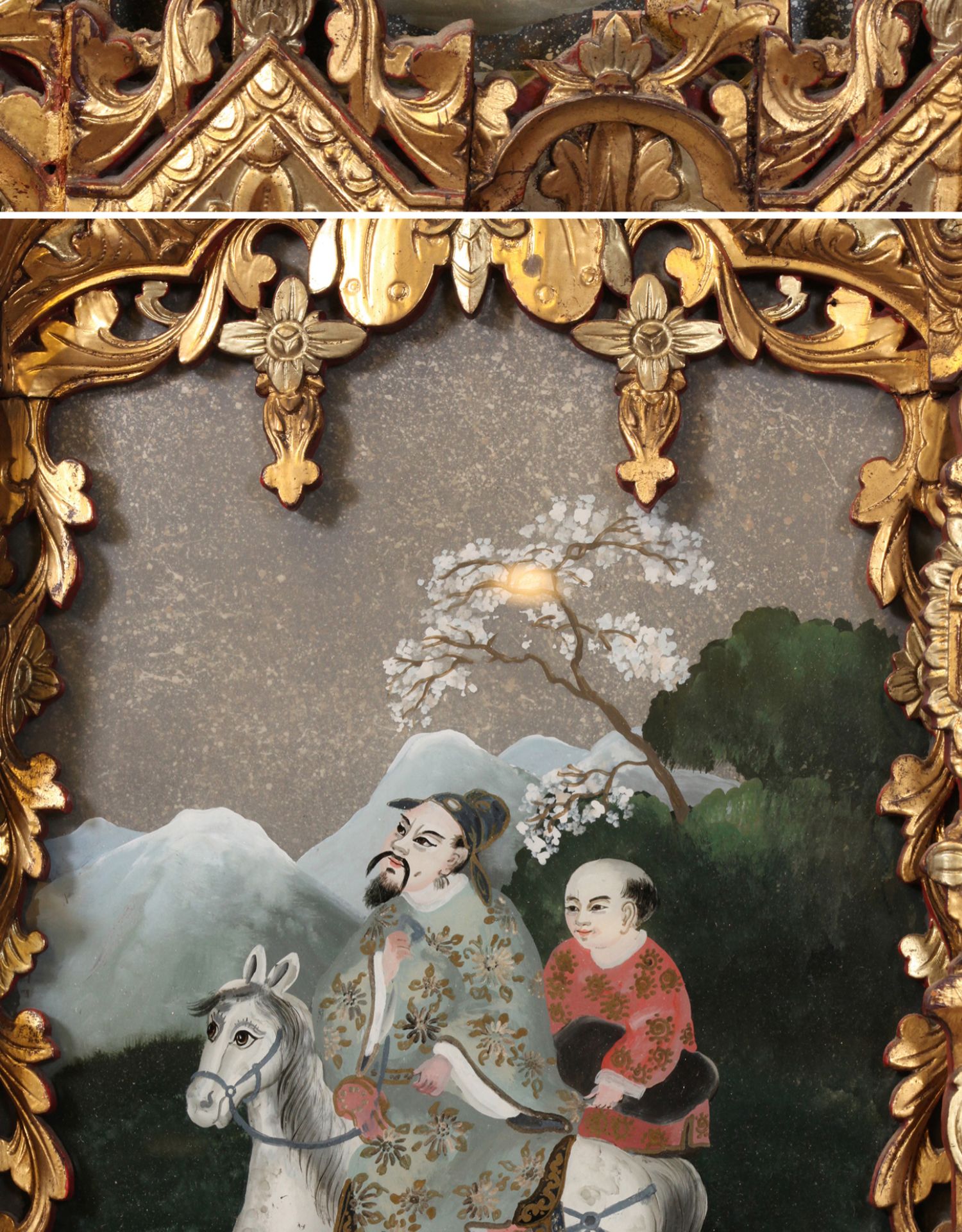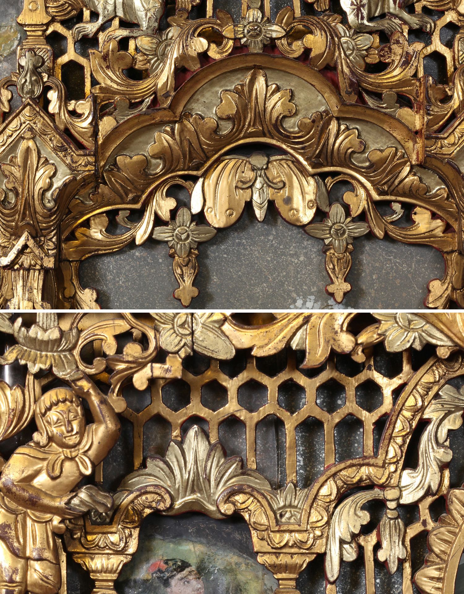 独角鹿西洋古董家居装饰墙壁挂饰中国镂雕金漆木框人物故事玻璃画