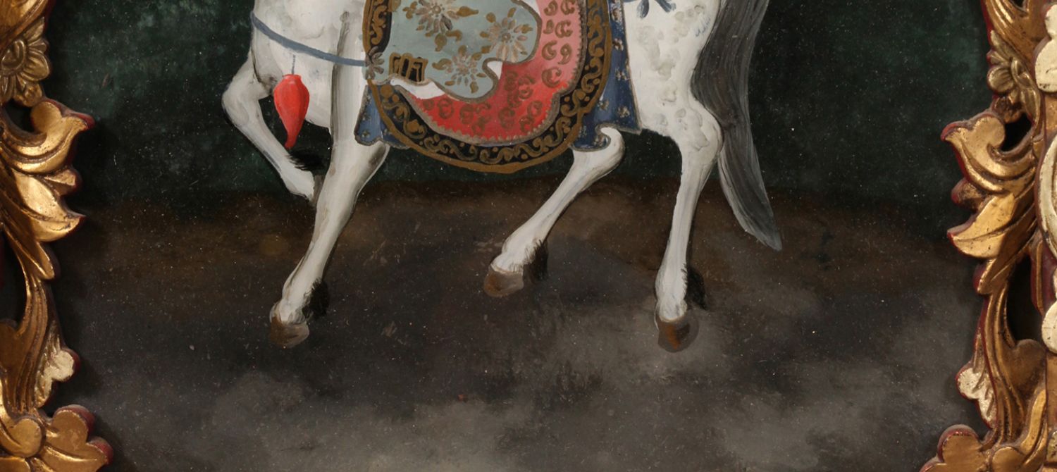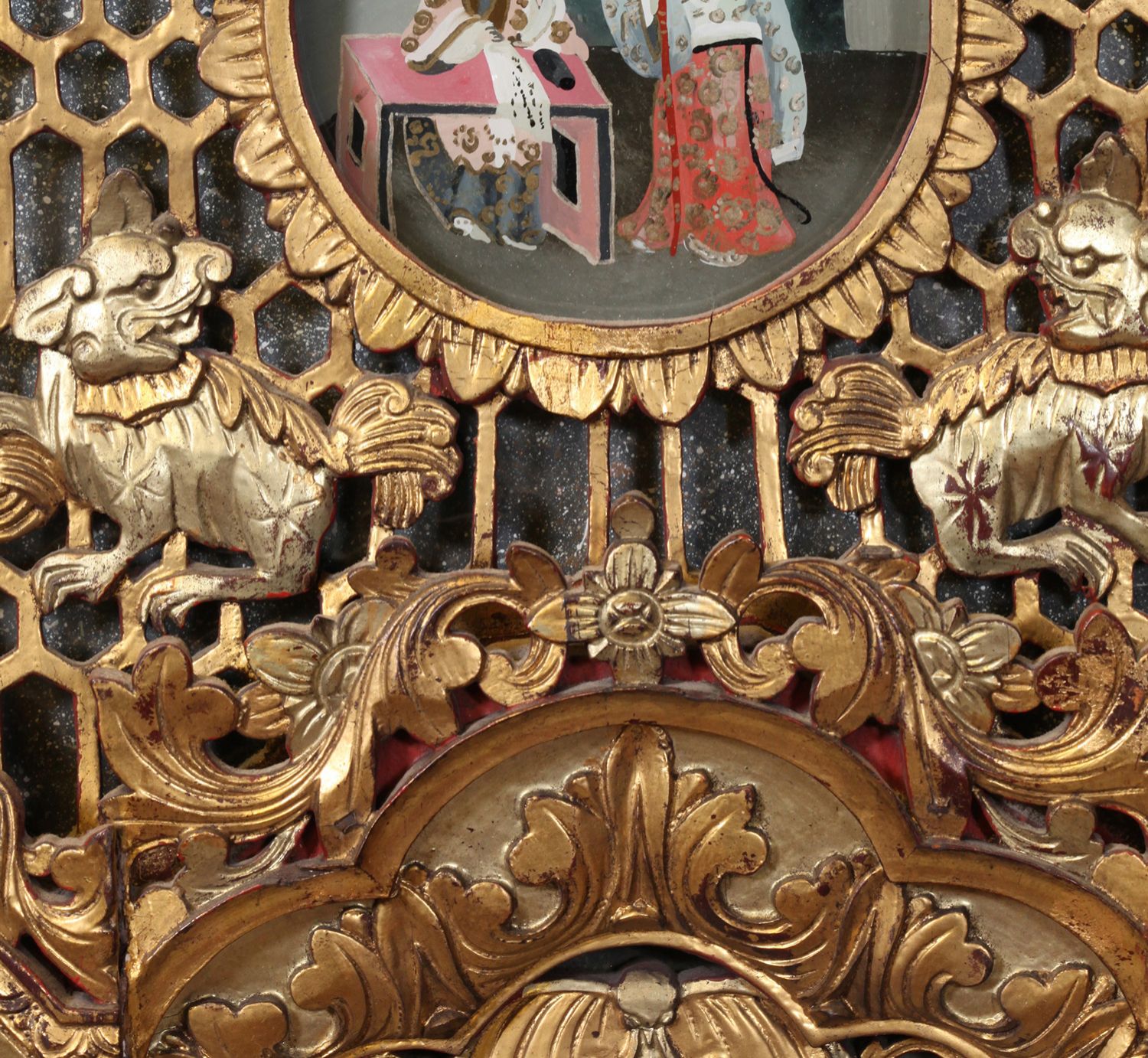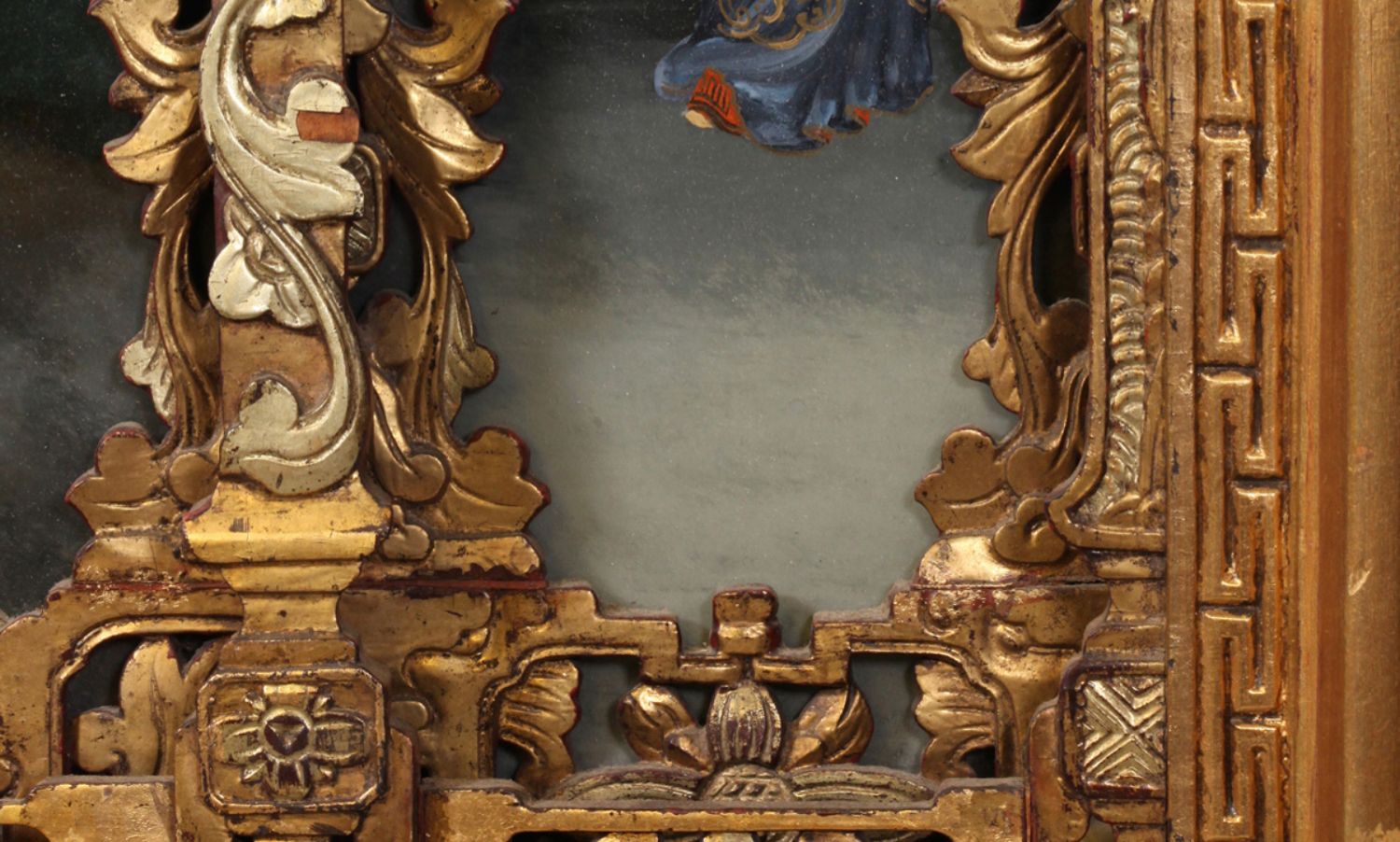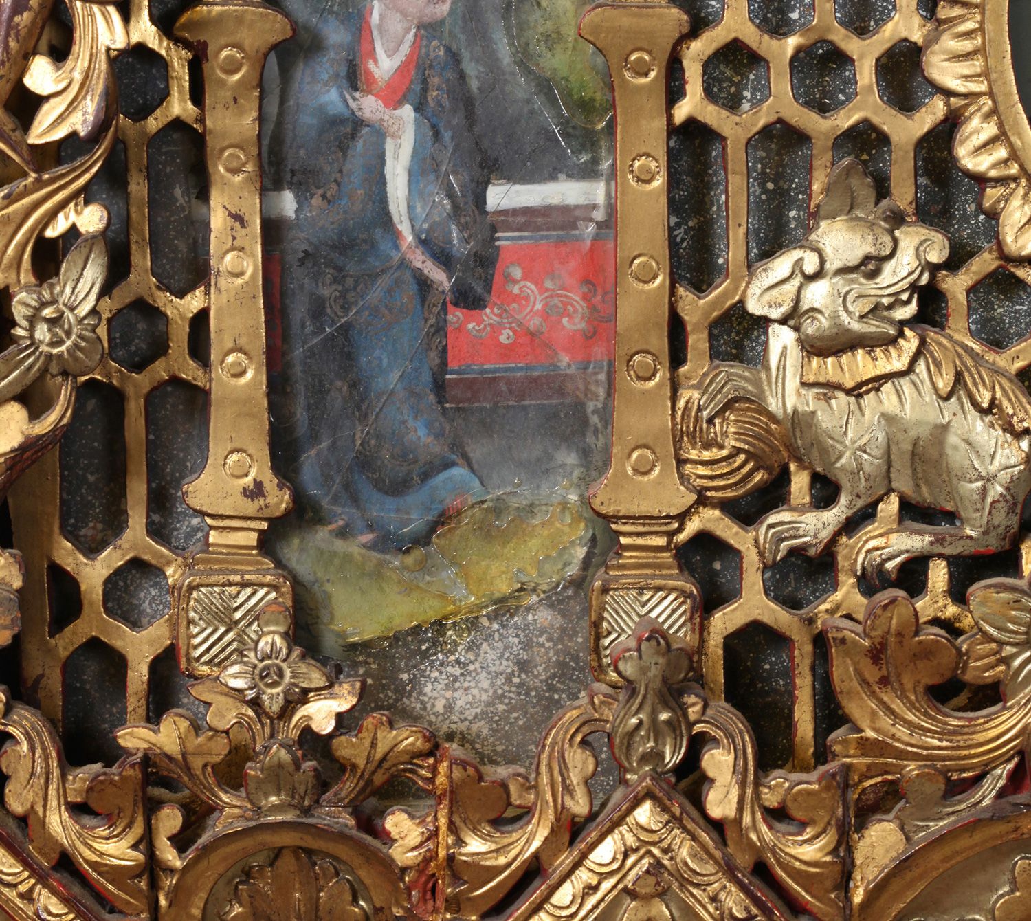 独角鹿西洋古董家居装饰墙壁挂饰中国镂雕金漆木框人物故事玻璃画