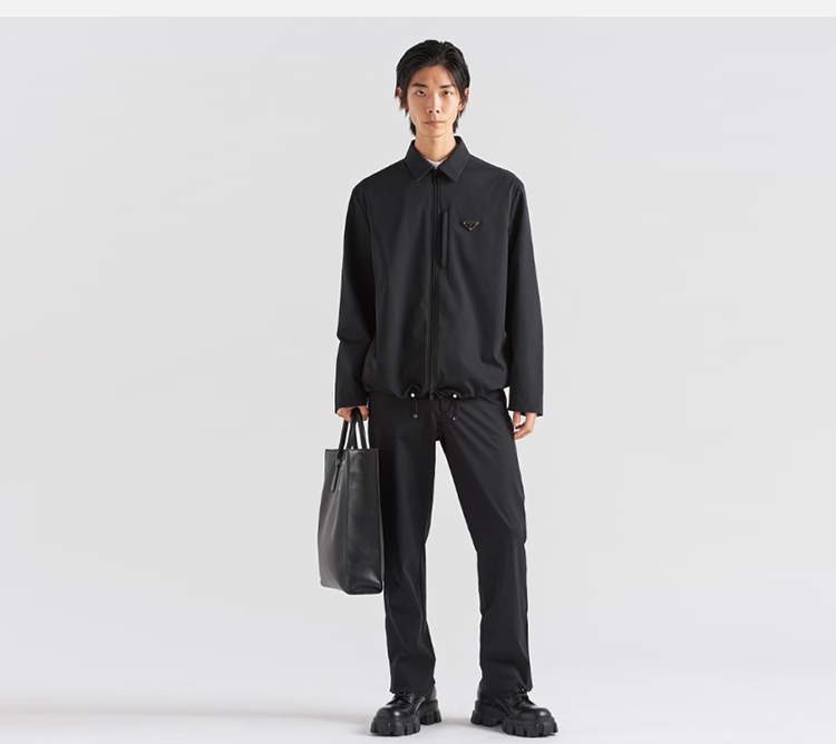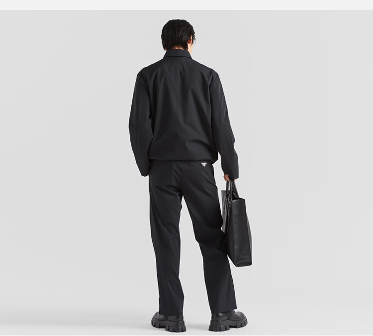 PRADA 普拉达 男士弹力科技面料珐琅金属三角形徽标休闲裤 黑色 SPH252 11QL F0002