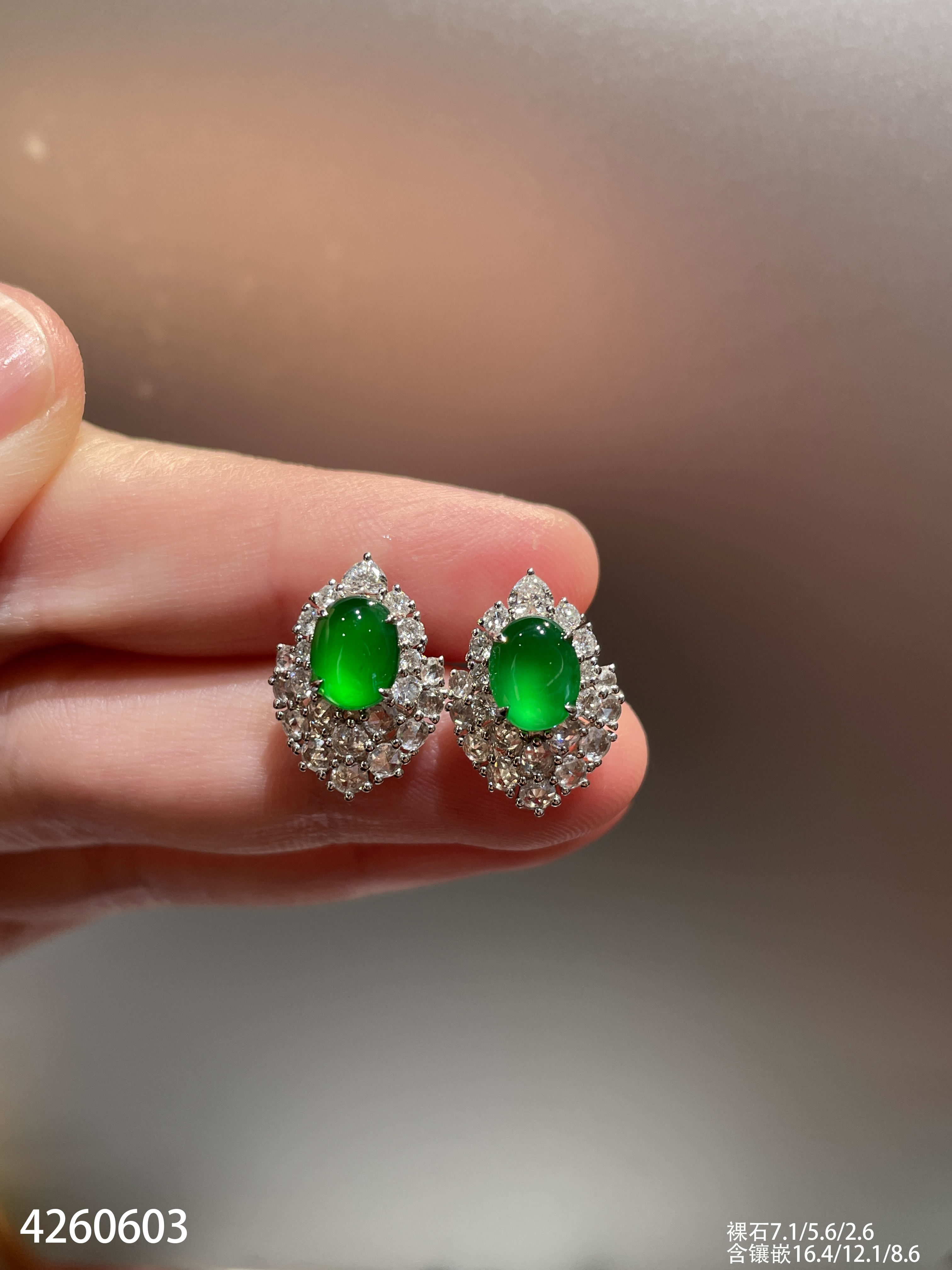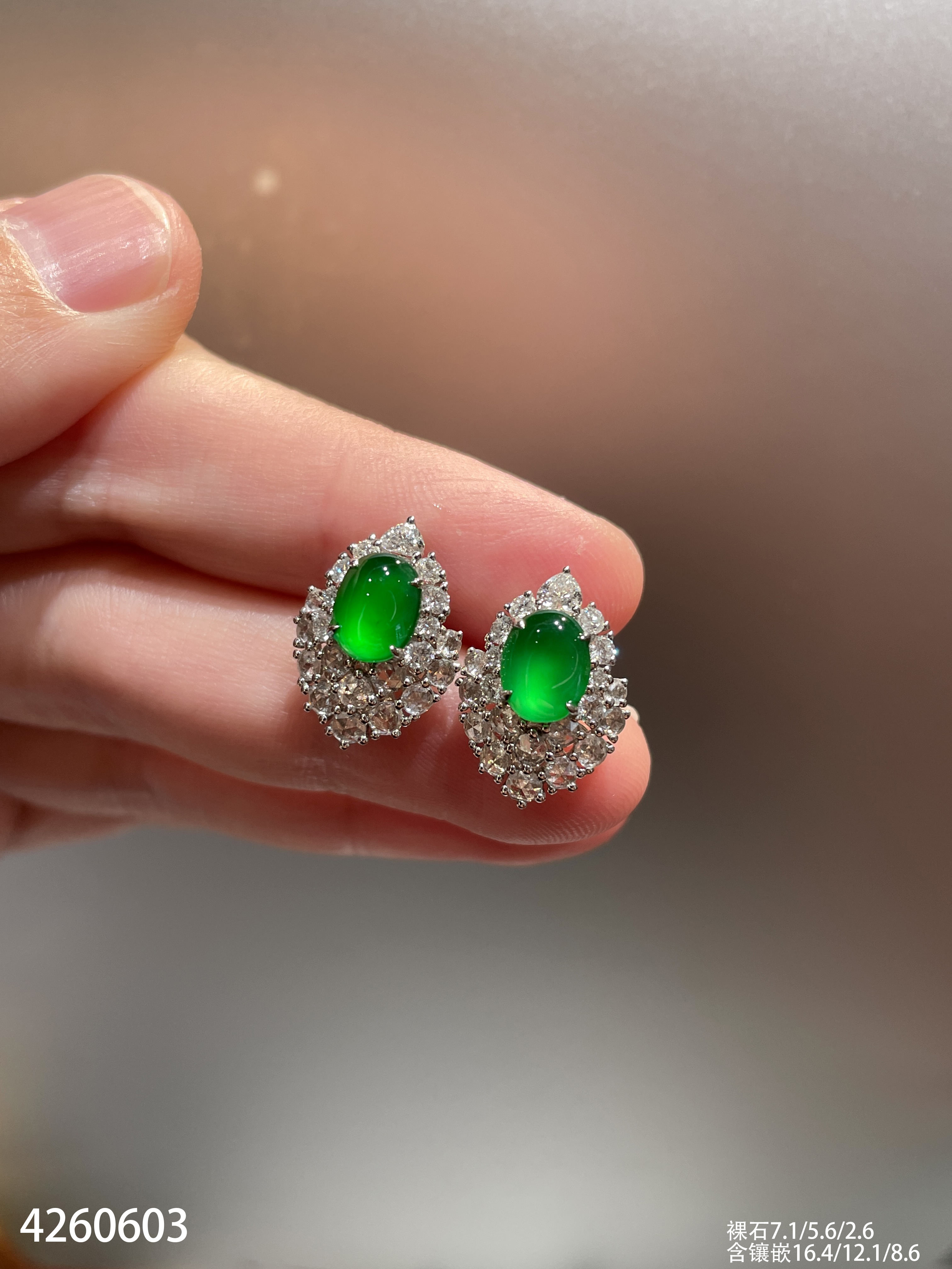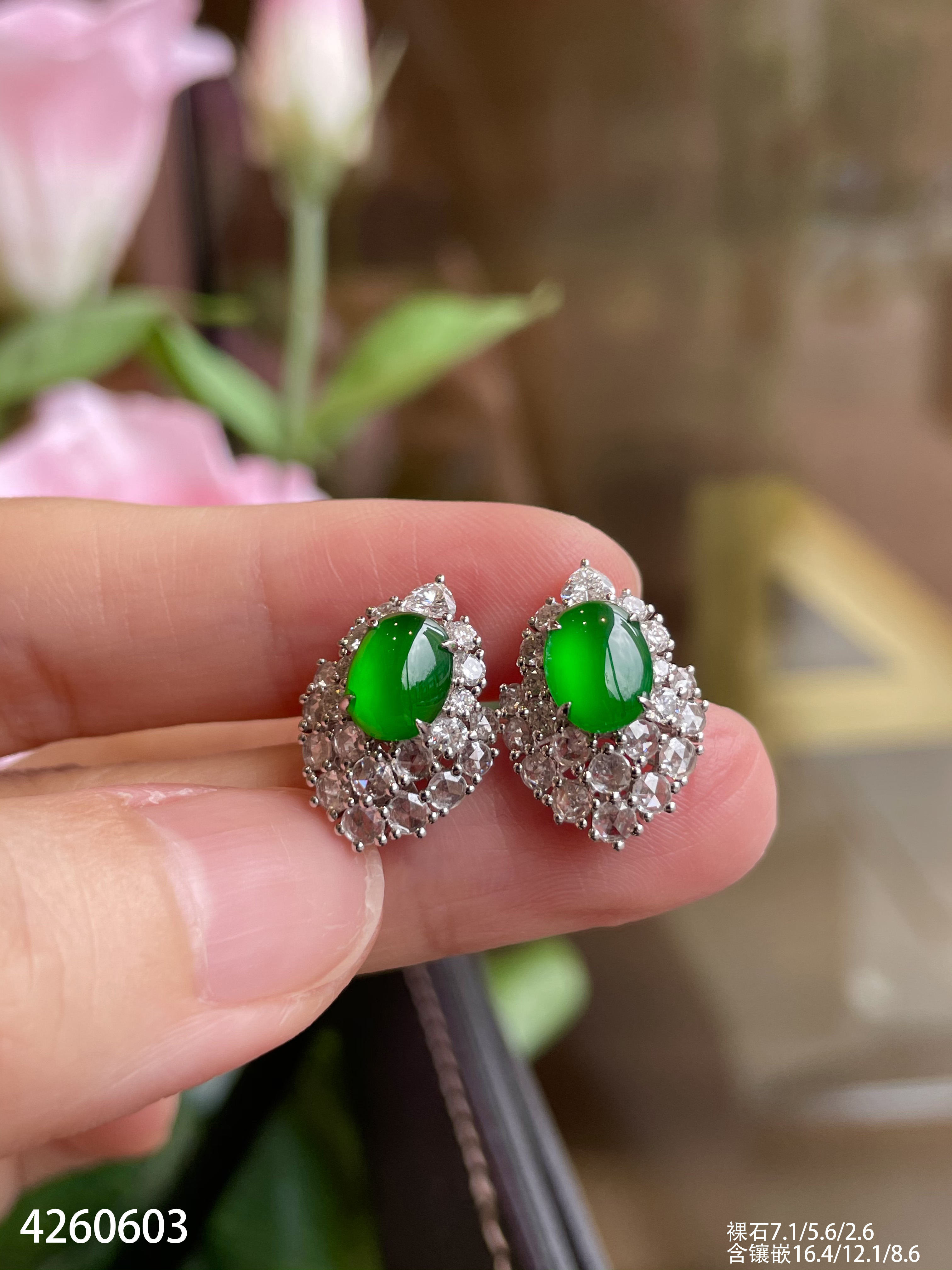 4260603,老坑玻璃帝王绿蛋面耳钉。具体价格微信咨询