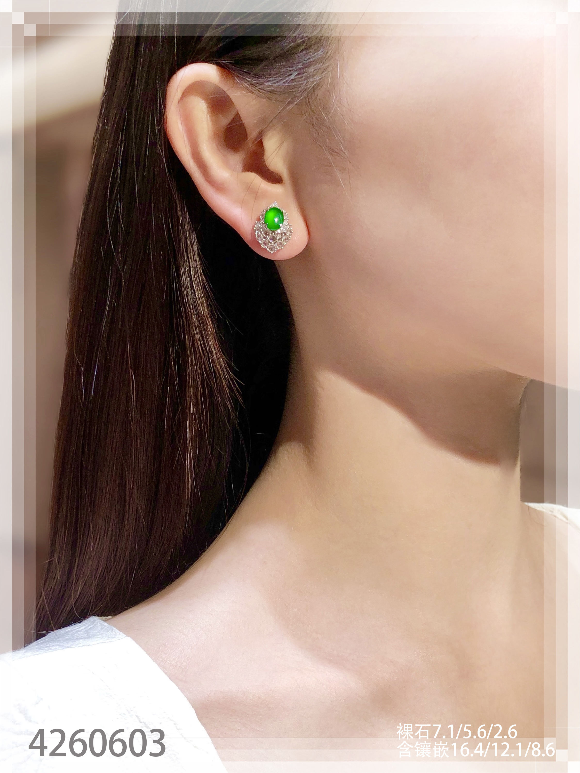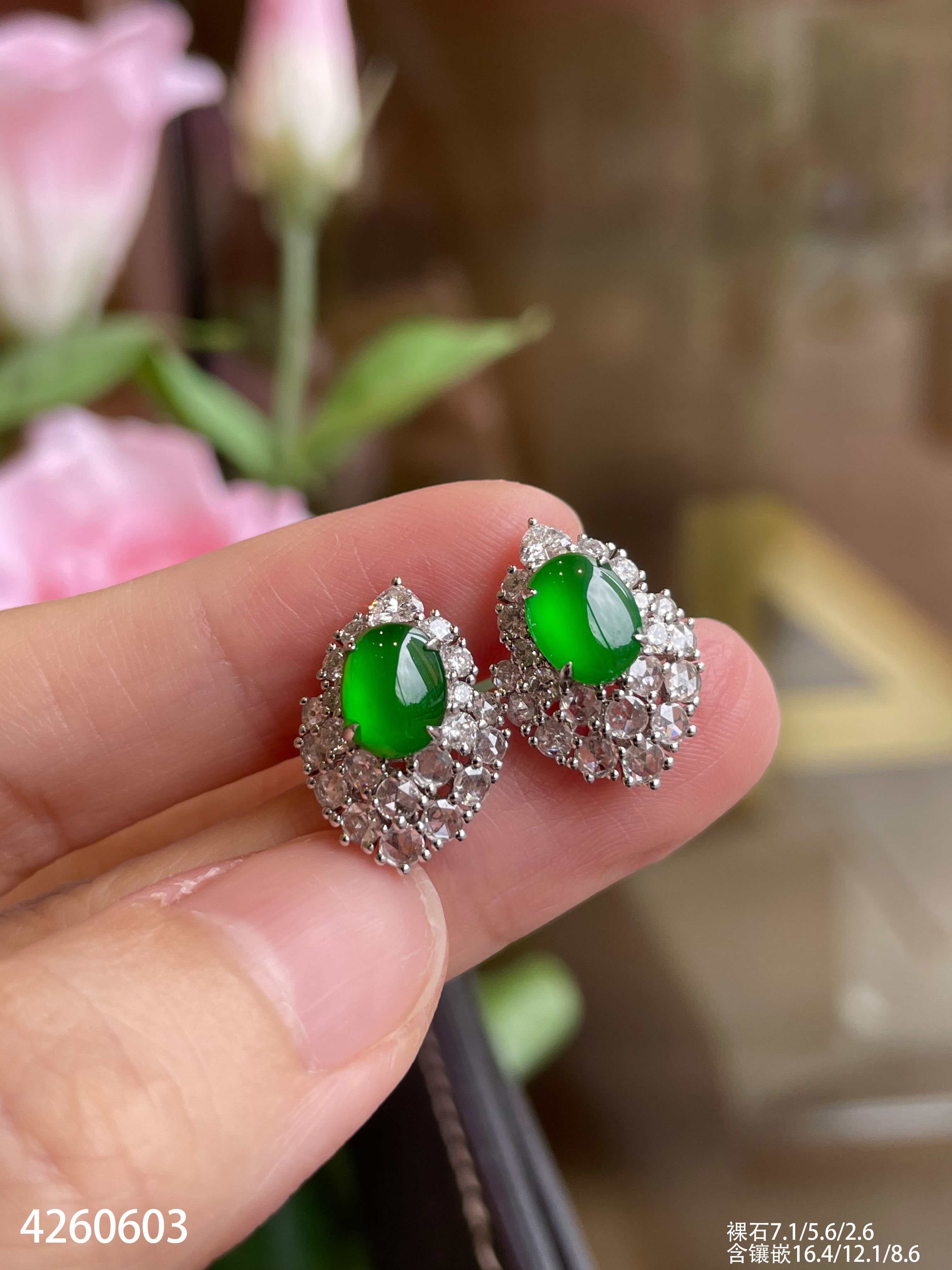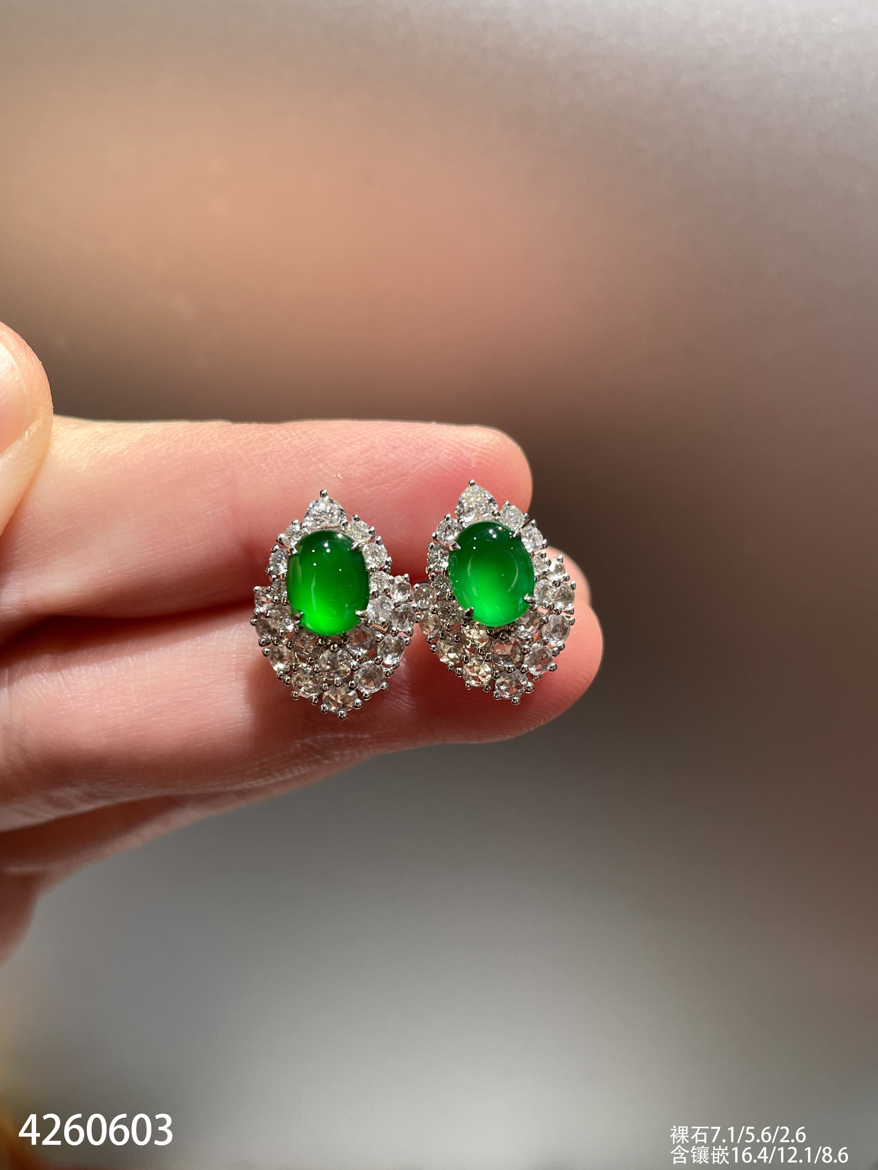 4260603,老坑玻璃帝王绿蛋面耳钉。具体价格微信咨询