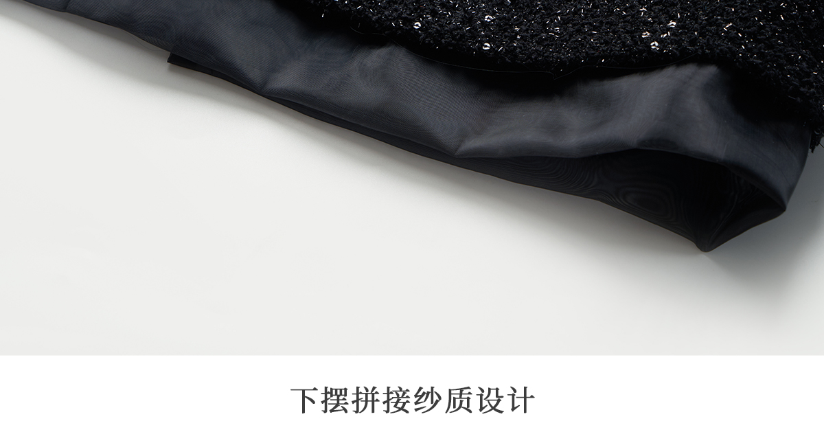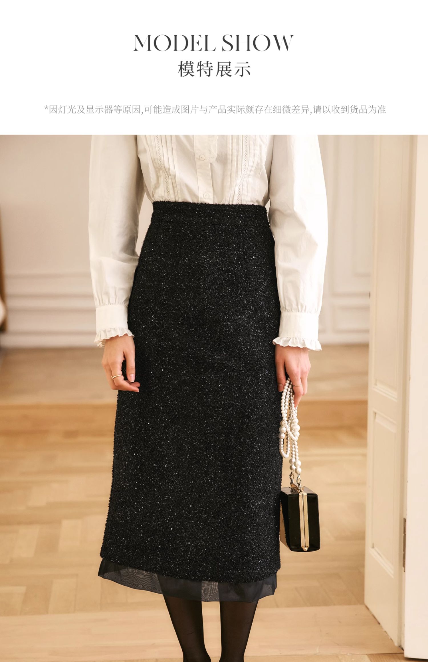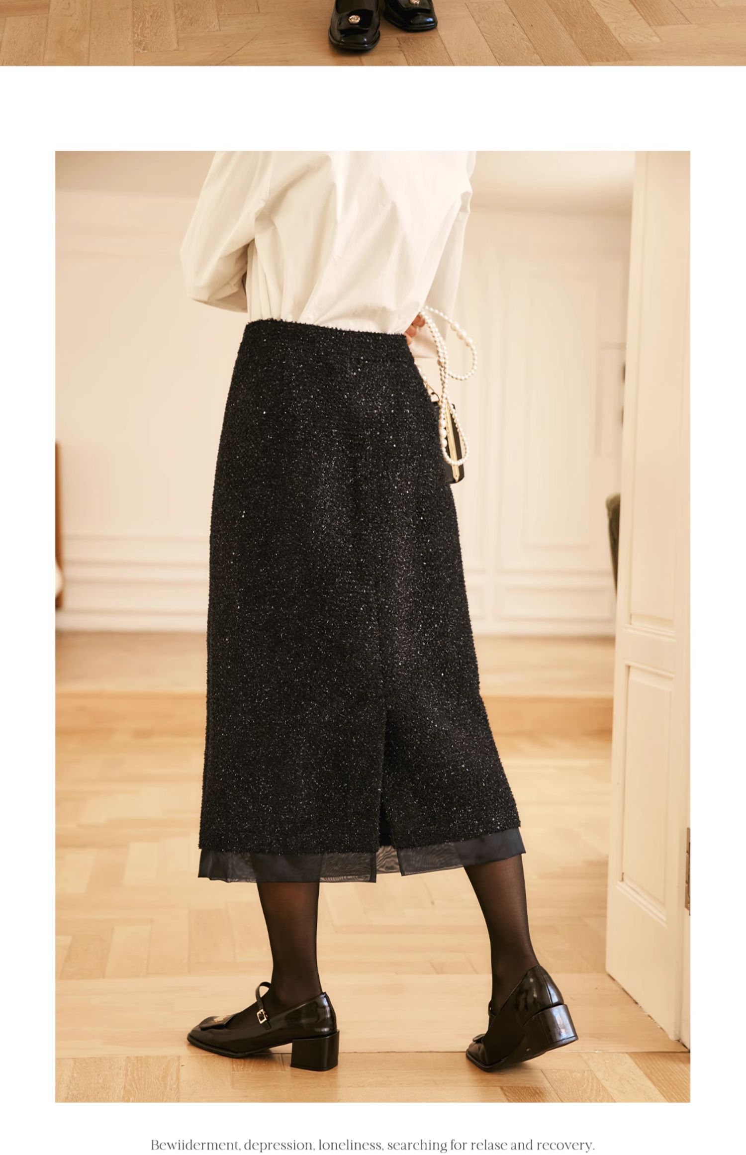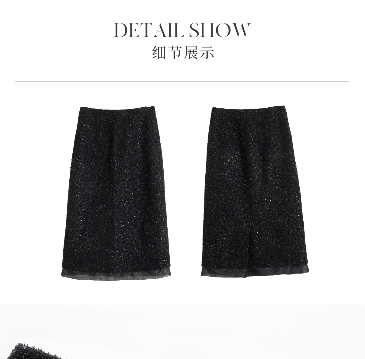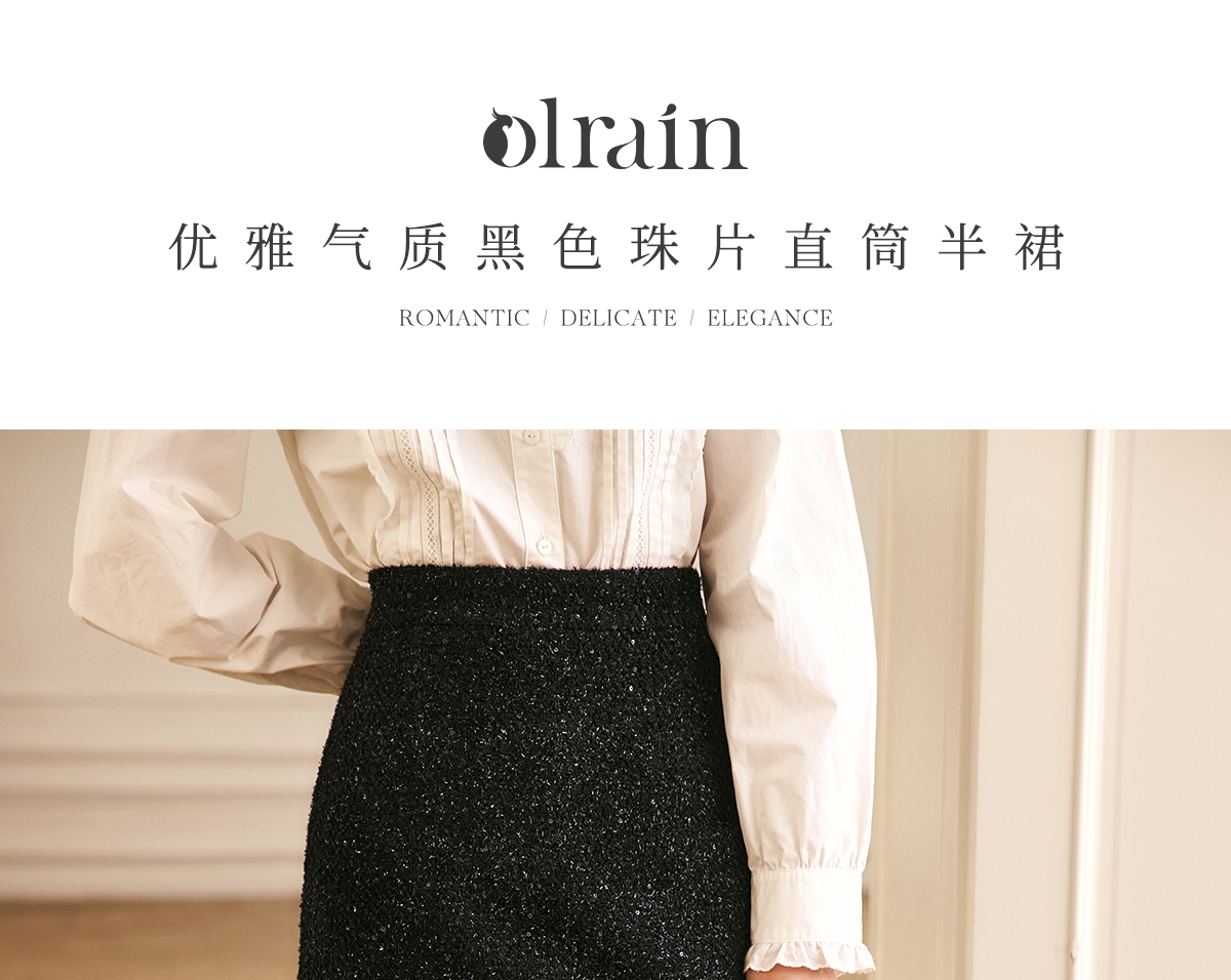 OLrain欧芮儿法式黑色半身裙女冬季2024年新款气质珠片开叉直筒裙