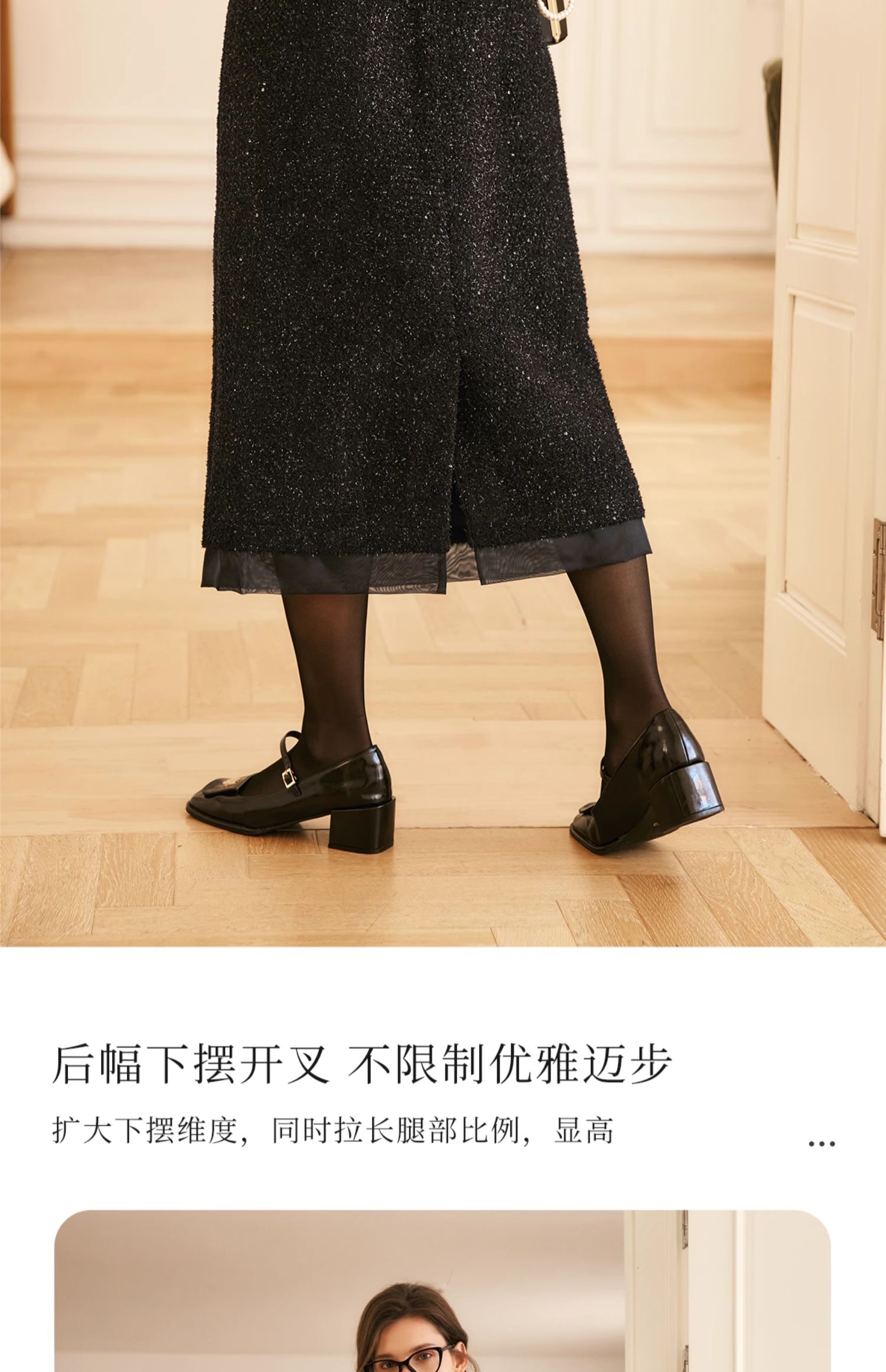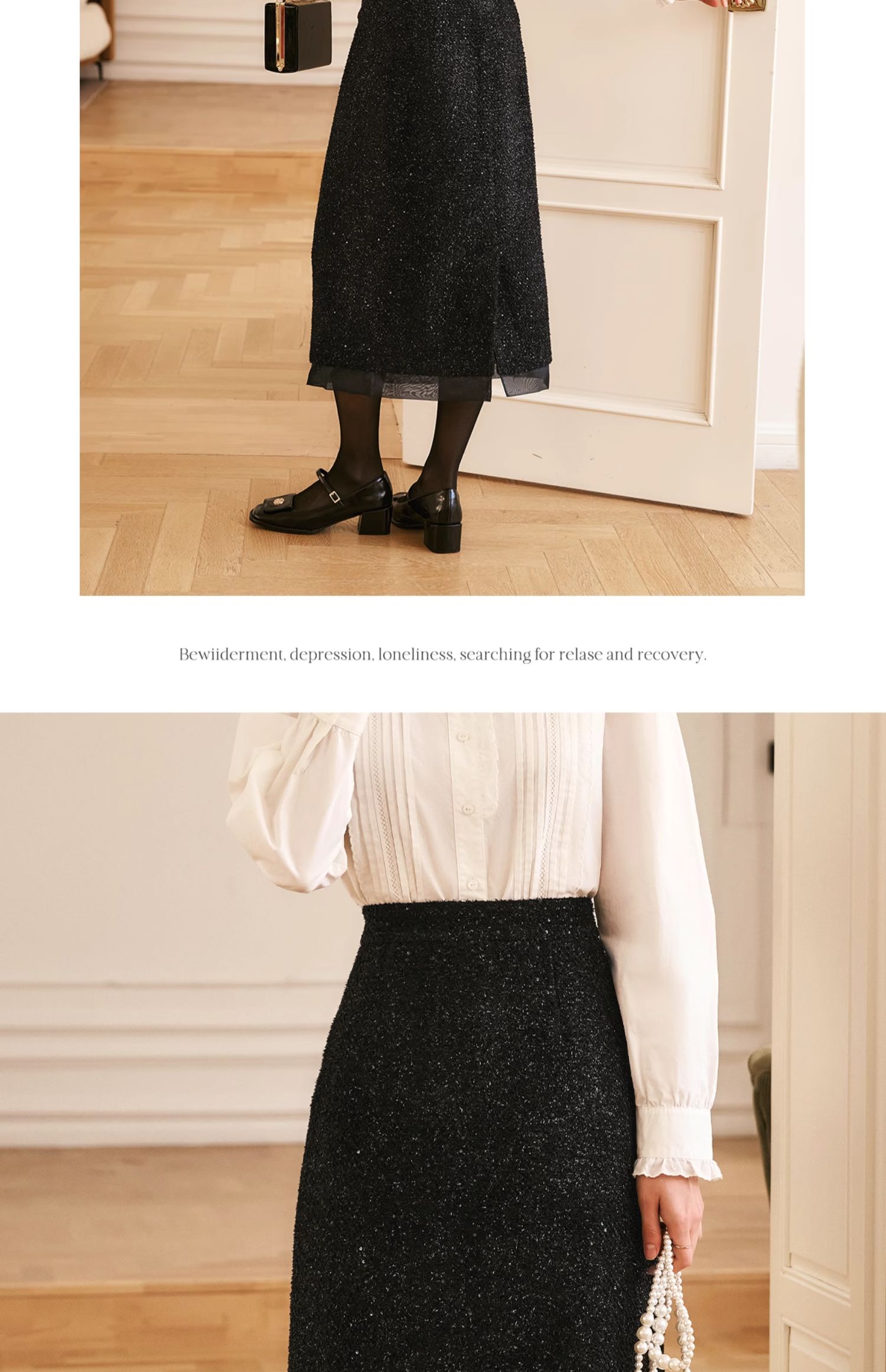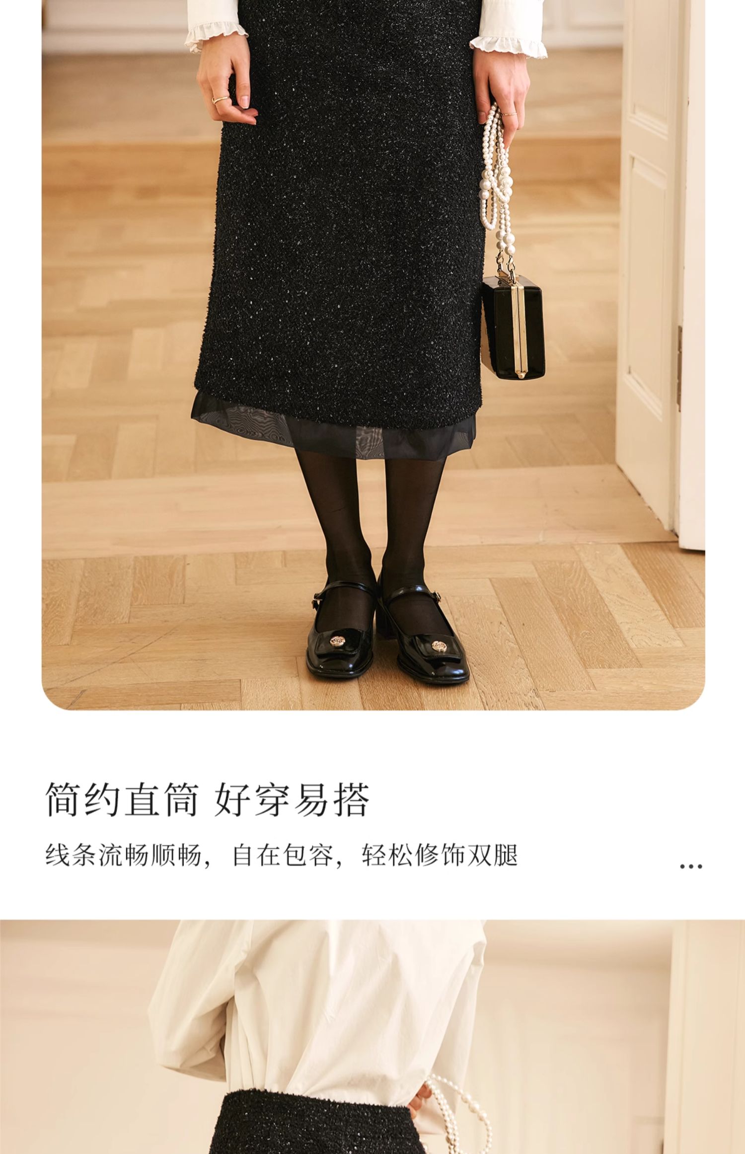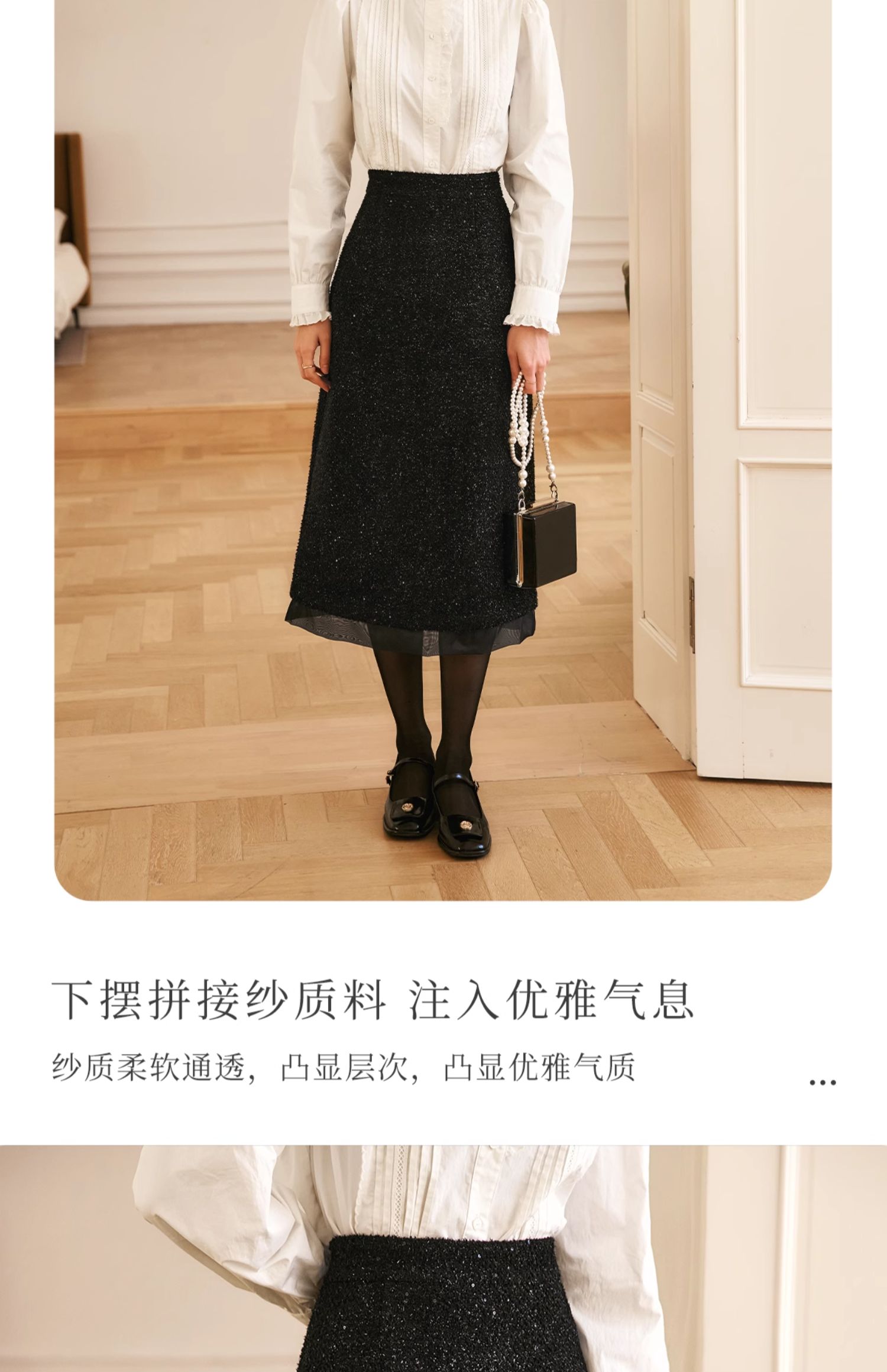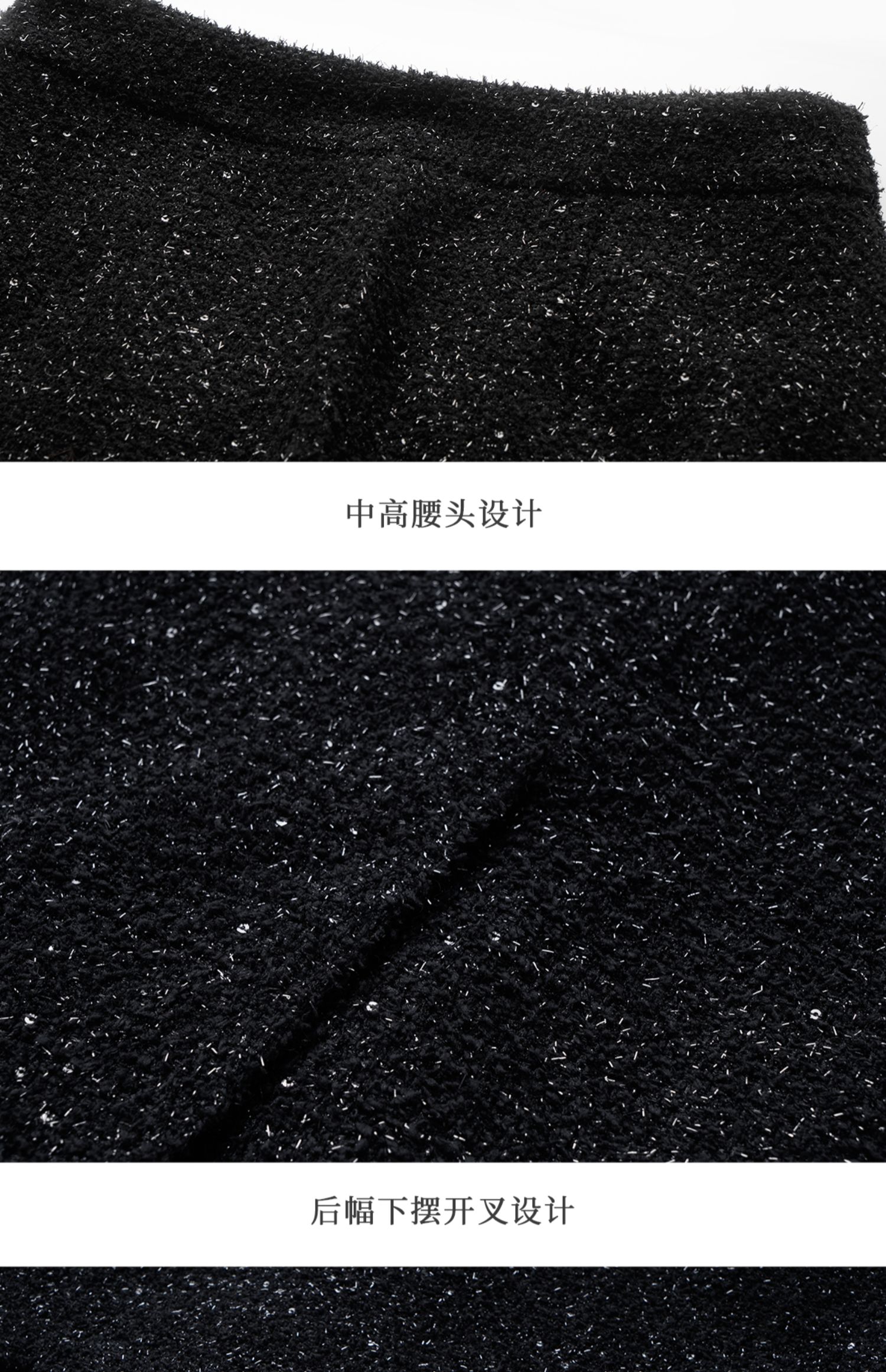 OLrain欧芮儿法式黑色半身裙女冬季2024年新款气质珠片开叉直筒裙