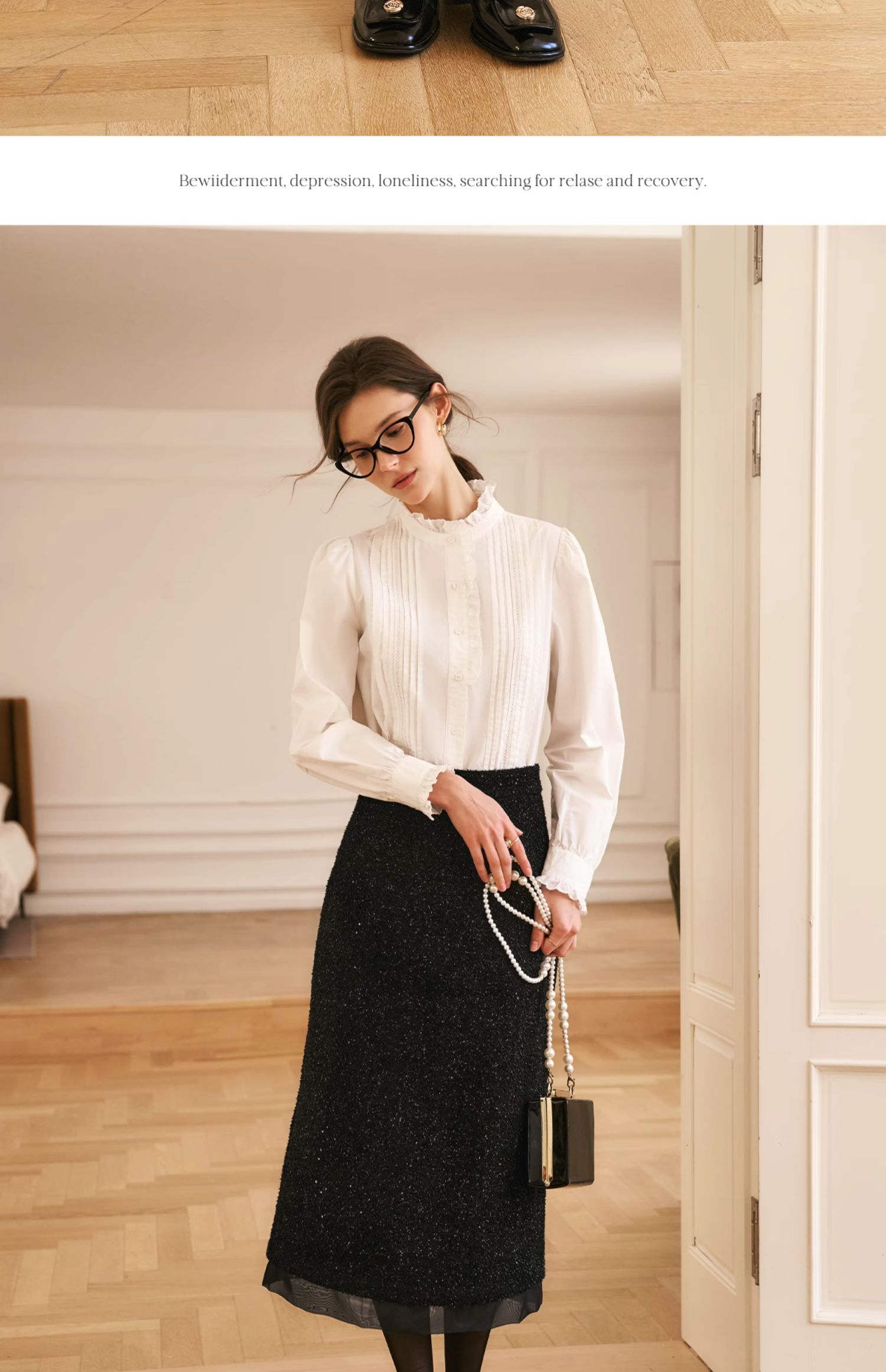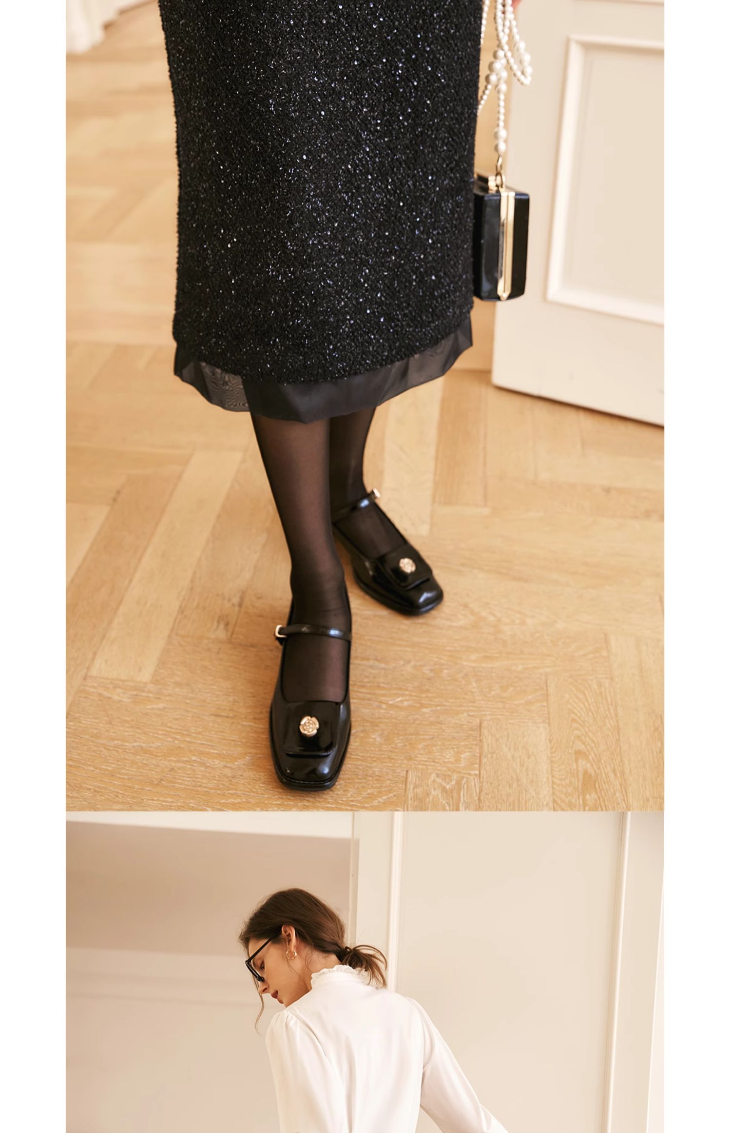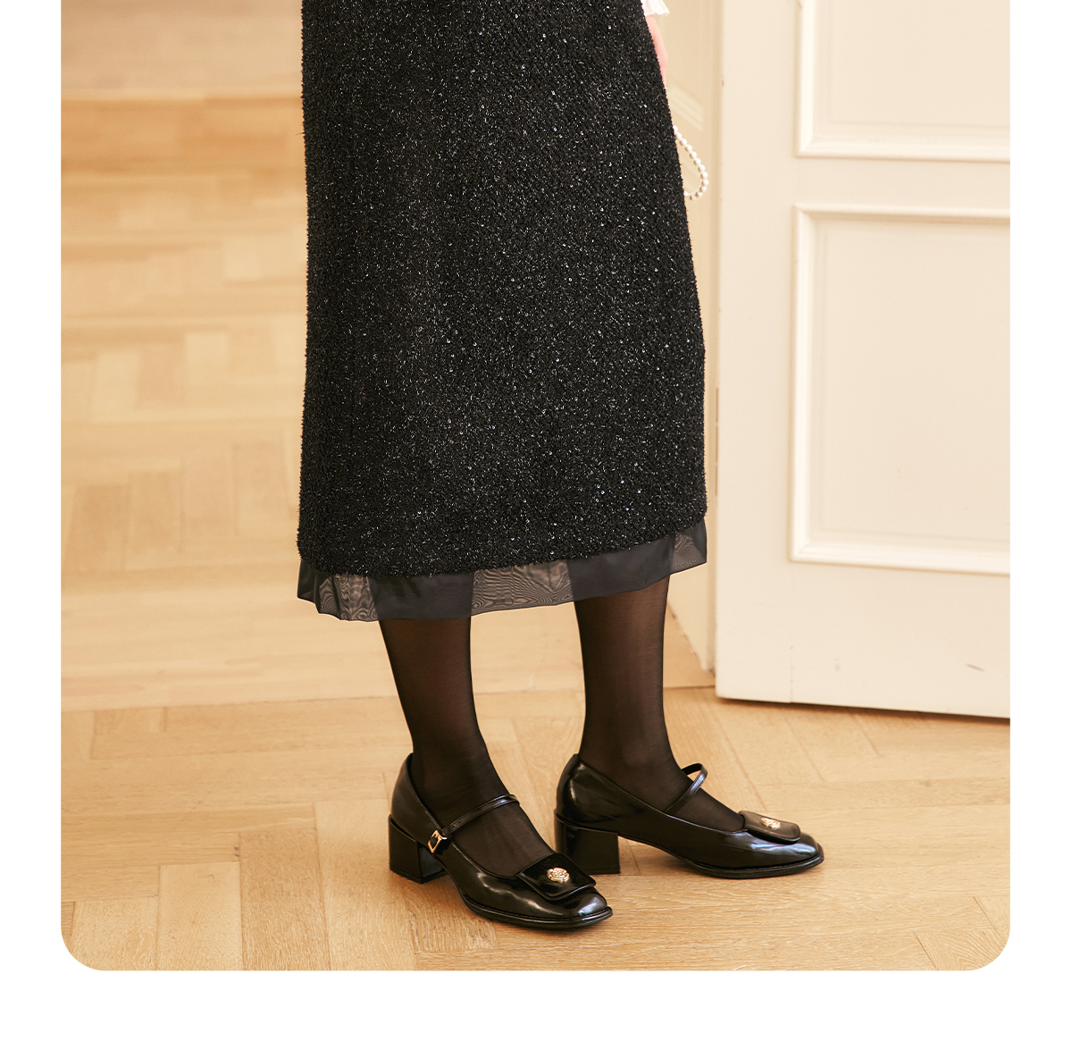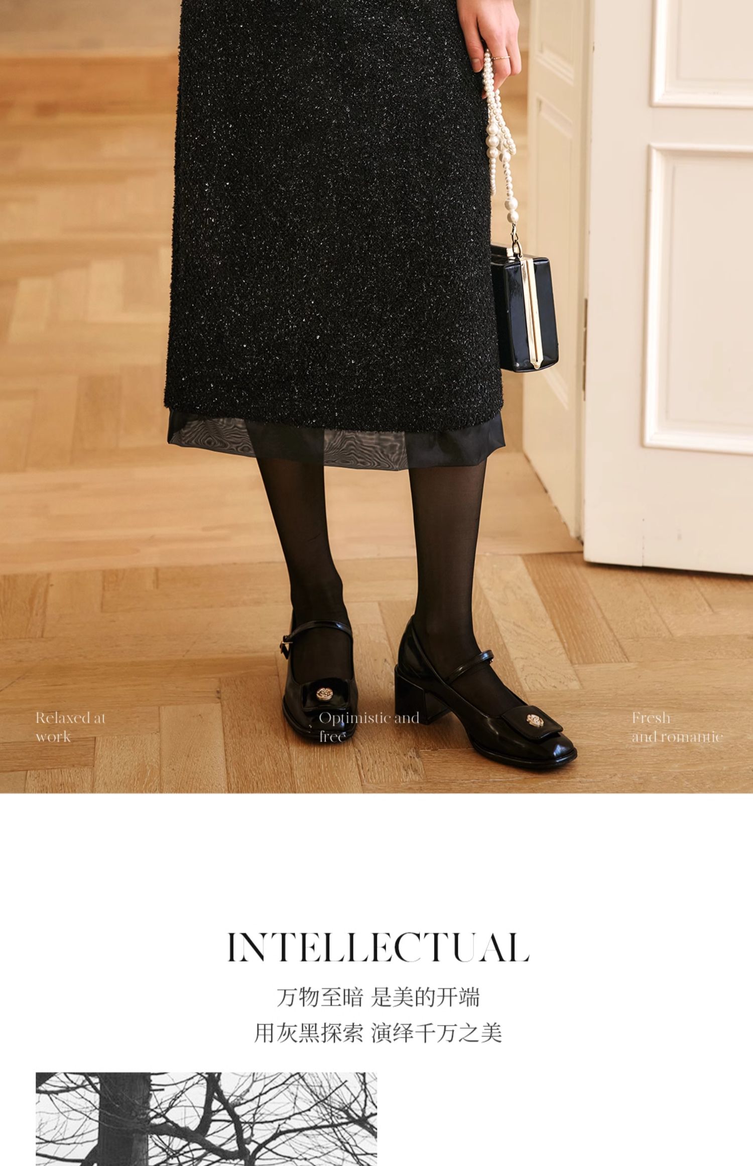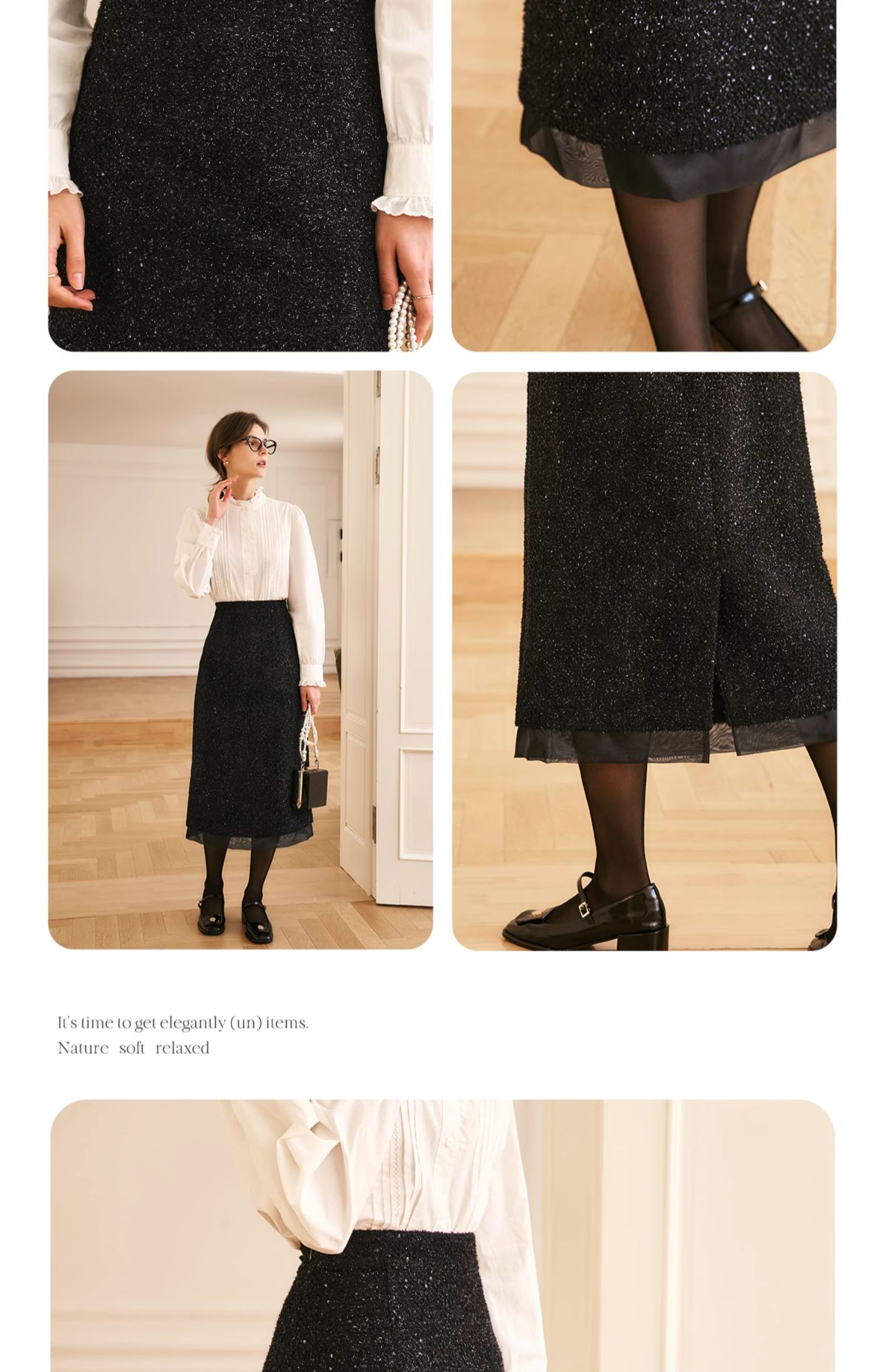 OLrain欧芮儿法式黑色半身裙女冬季2024年新款气质珠片开叉直筒裙