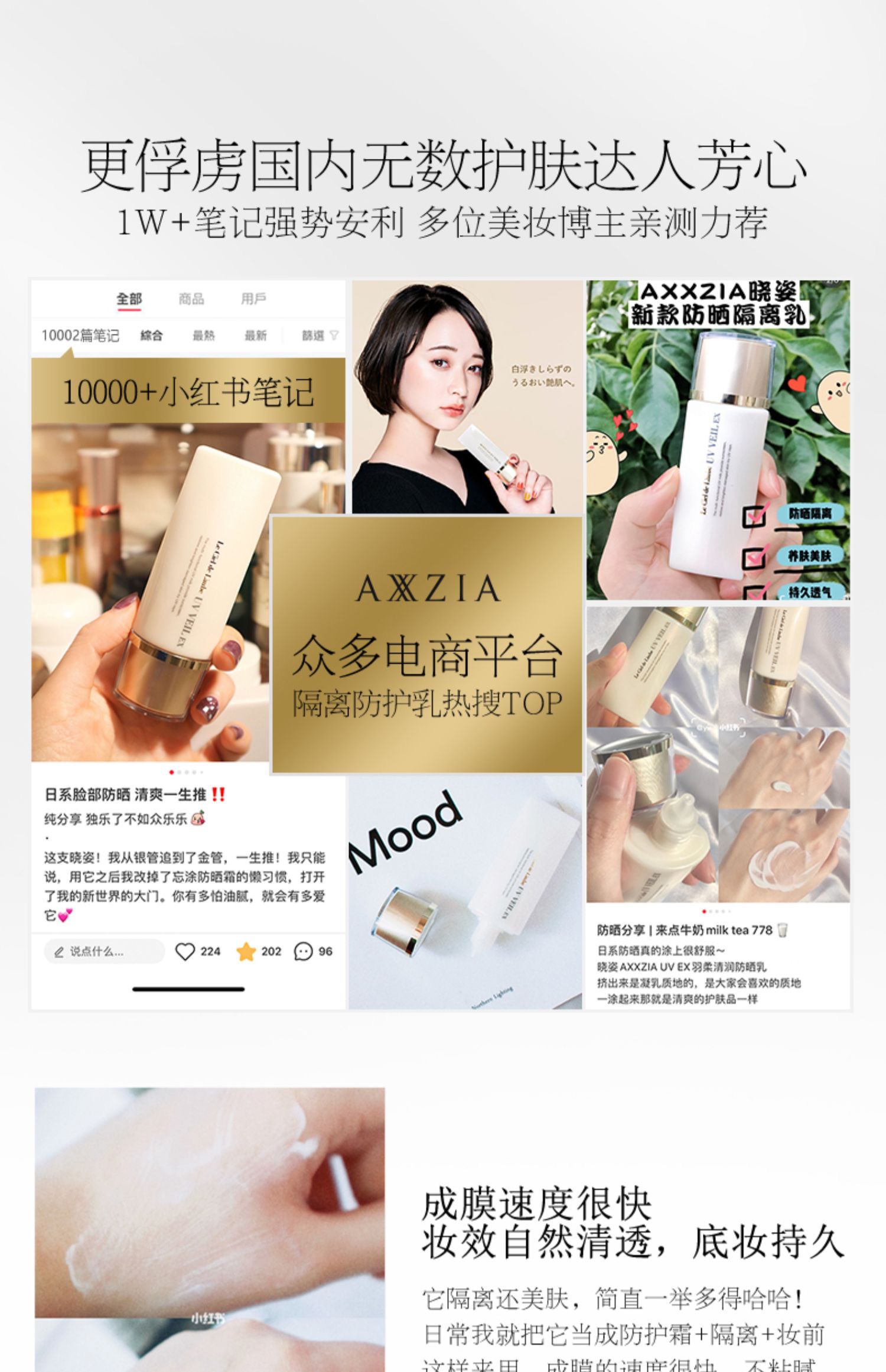 日本AXXZIA晓姿防晒霜40g 妆前隔离防护乳二合一防护霜SPF50+ 清爽控油敏感肌