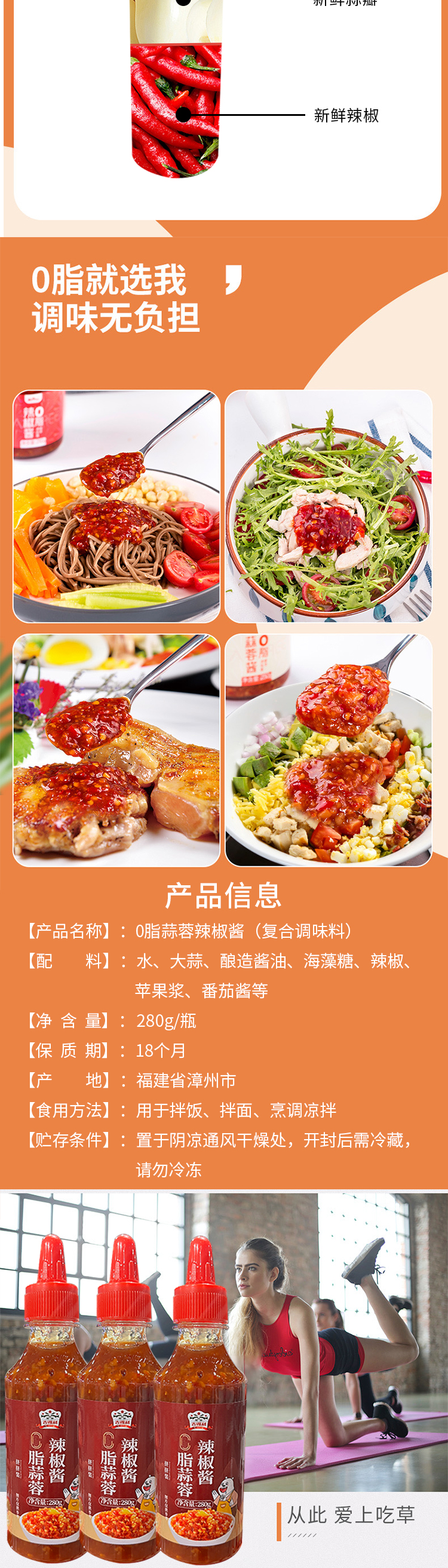 吉得利0脂蒜蓉辣椒酱280g 【复合调味料】