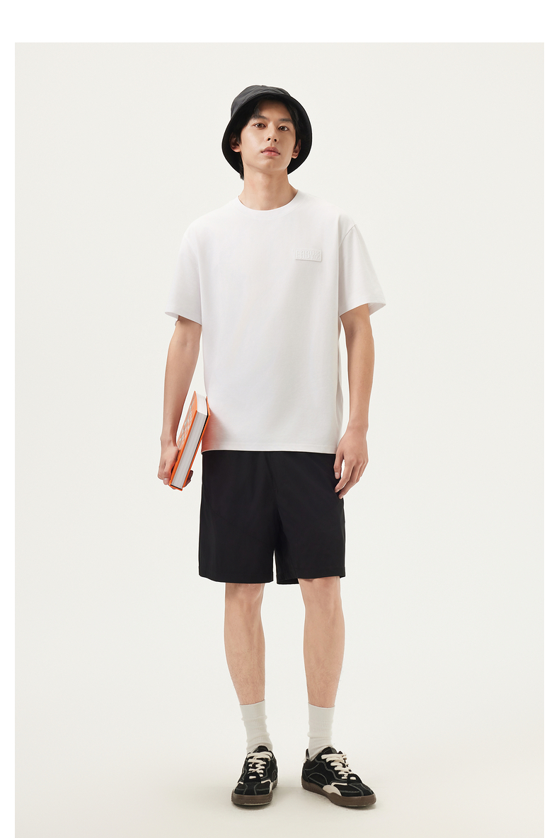 GXG男装 白色简约圆领短袖T恤满身植绒 夏季新品