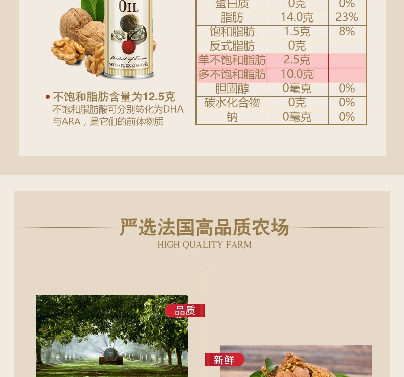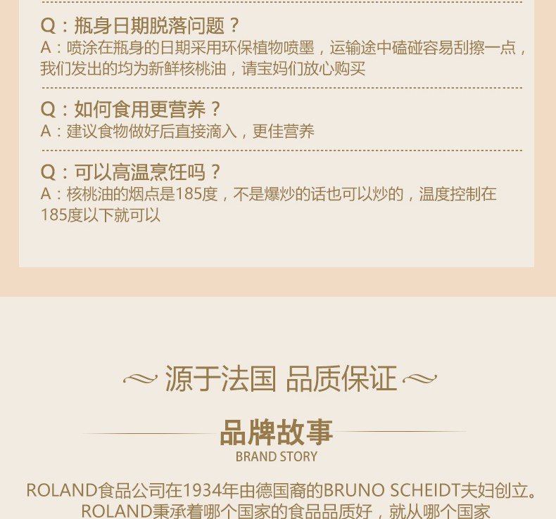ROLAND/罗朗德 核桃油500MLJPY带授权招加盟代理