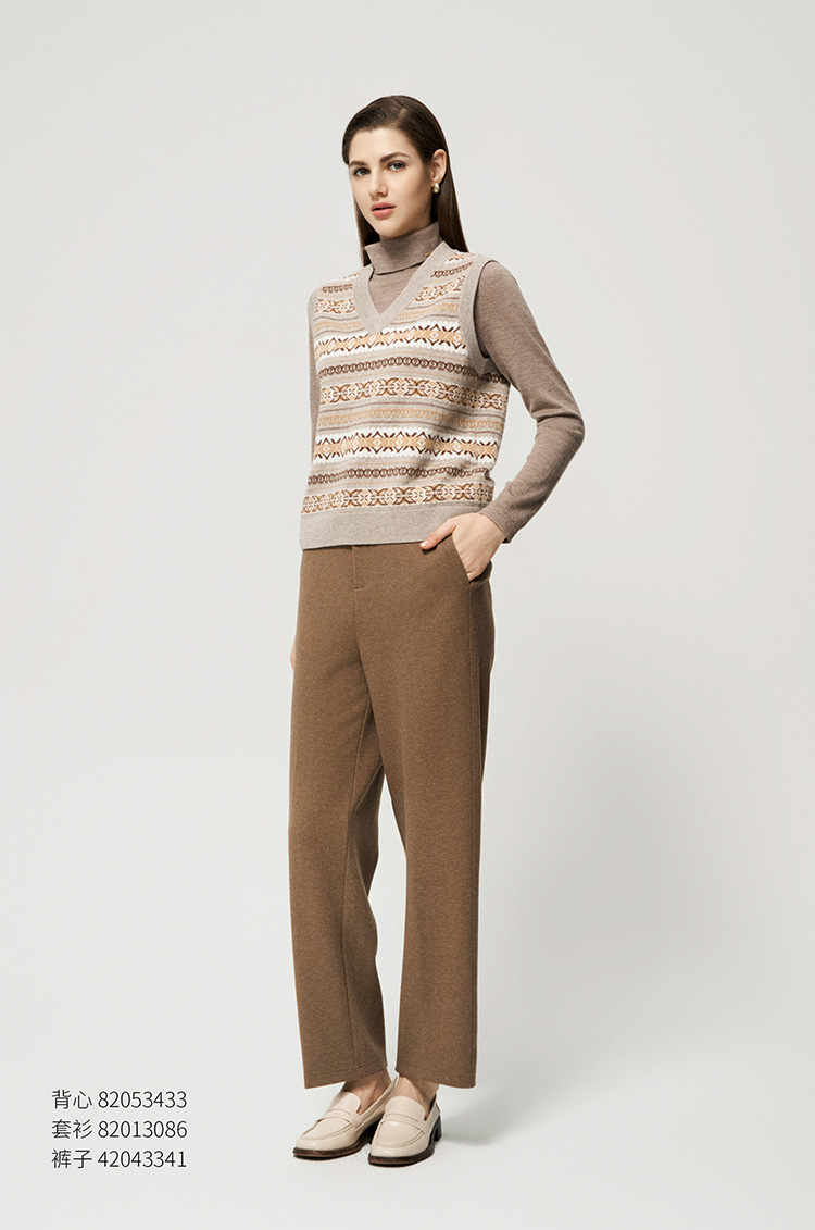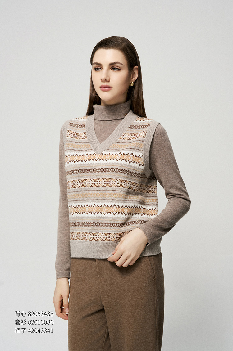 【V领无袖羊绒套衫】羊绒世家秋冬新品100%山羊绒条纹提花针织背心