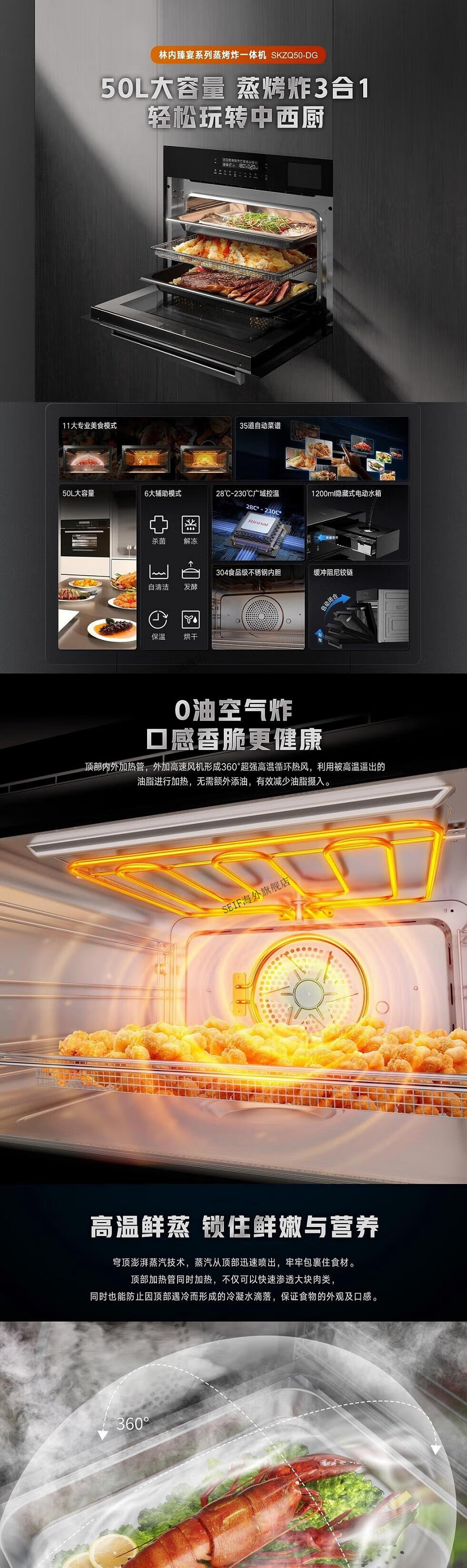 林内(Rinnai)/林内电烤箱/SKZQ50-DG 蒸烤炸一体机 黑色