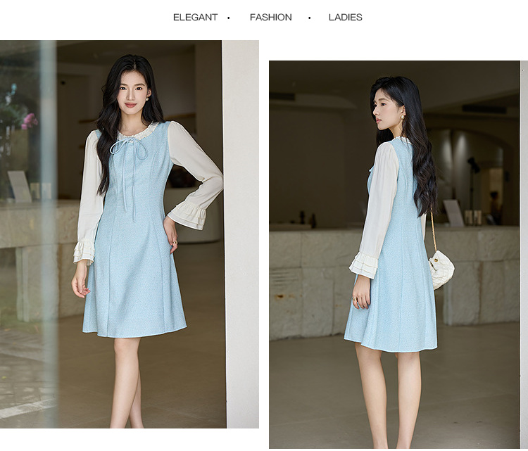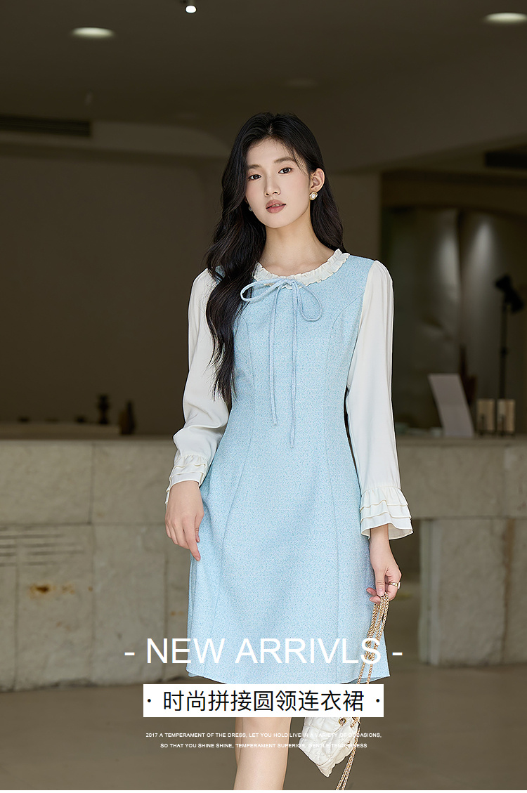 奢姿大码女装2025秋季时尚钻饰薄纱袖连衣裙胖妹妹气质优雅小黑裙9953835194