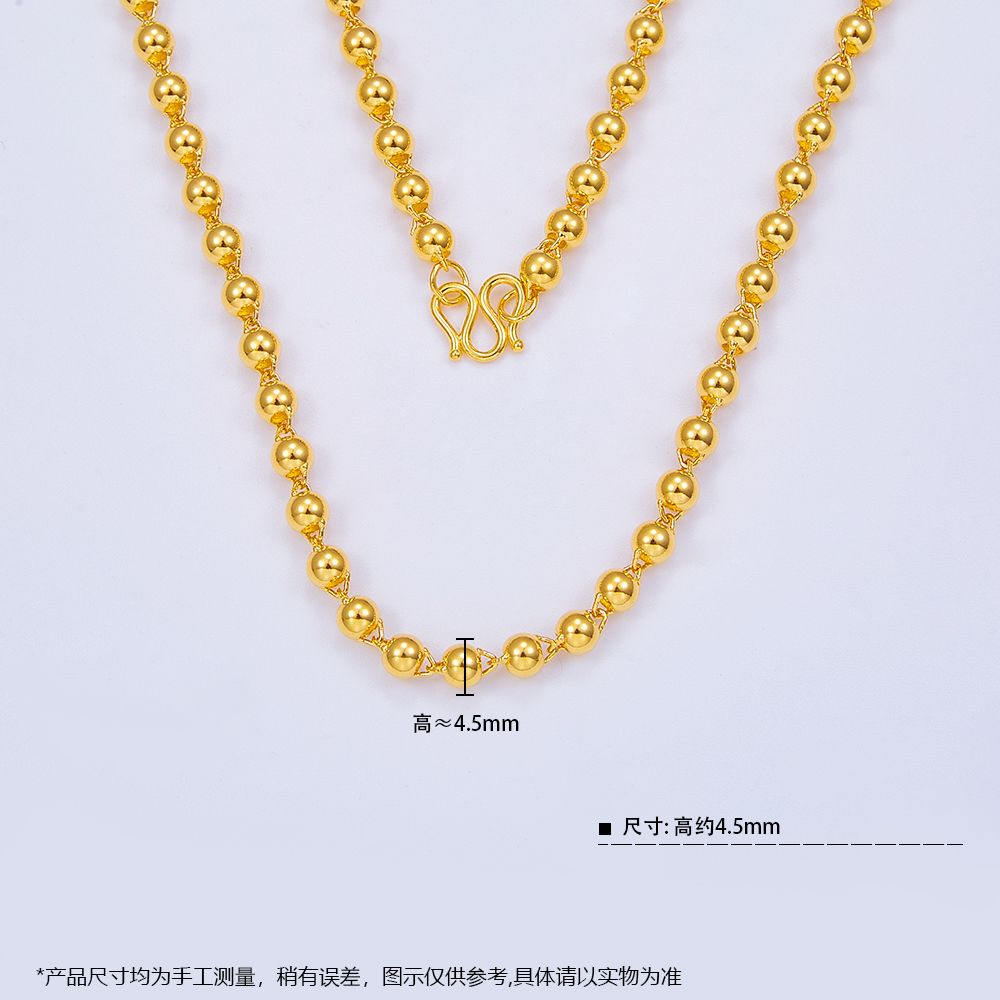 【限时克减150元】足金999.9 光珠链纯光珠(约4.1-4.5mm)纯圆珠项链佛珠项链(XL00003-03)预售产品下单后不退款不退货不换货不补差价