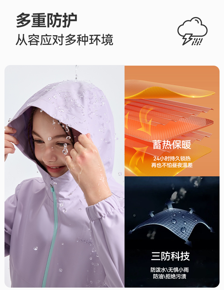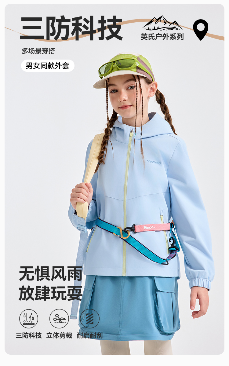 【英氏】【三防】【110-175】防水耐磨男女童休闲连帽外套